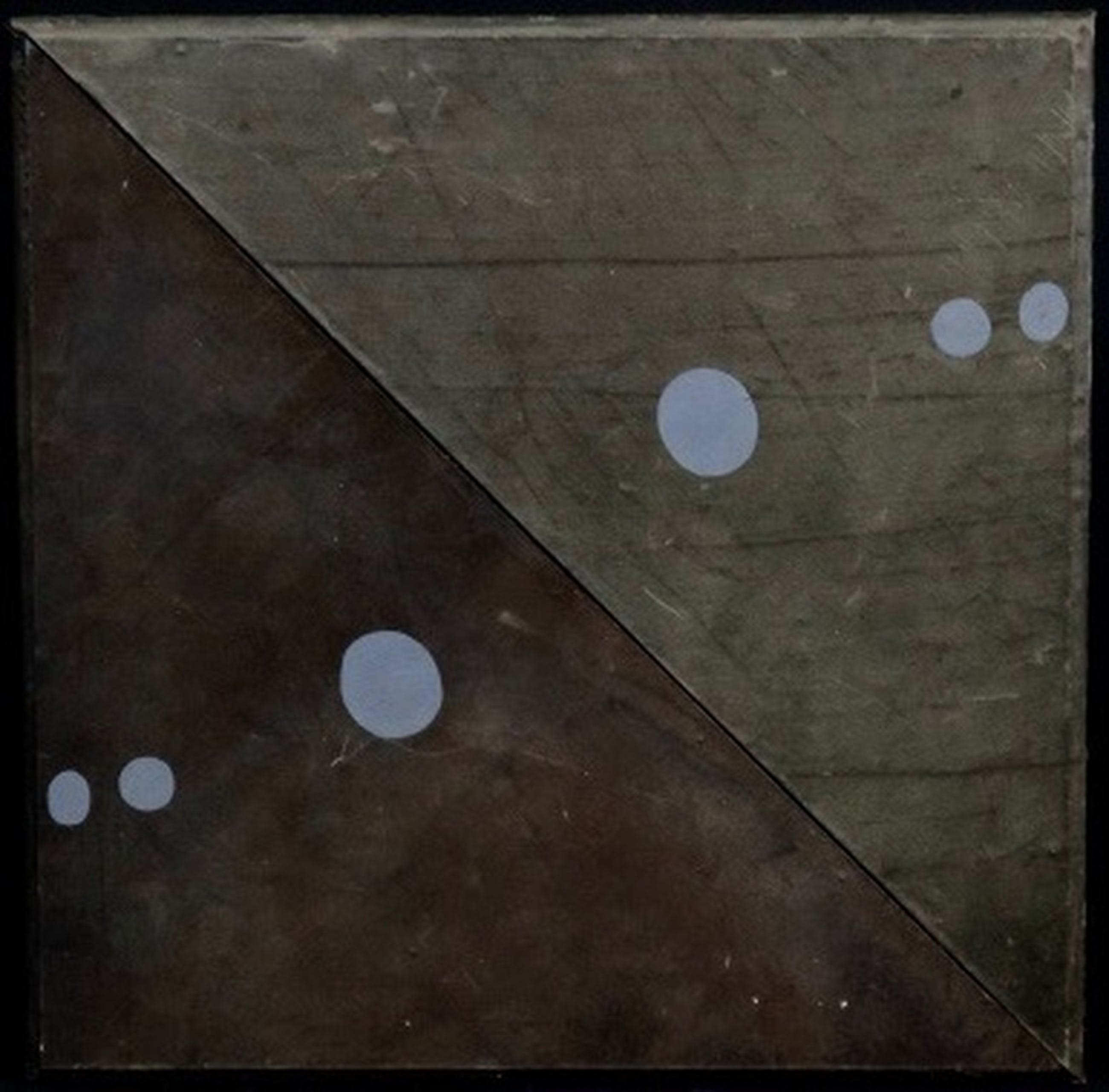 Materiaal: Olieverfstippen op handgekleurd textiel op board bevestigd.