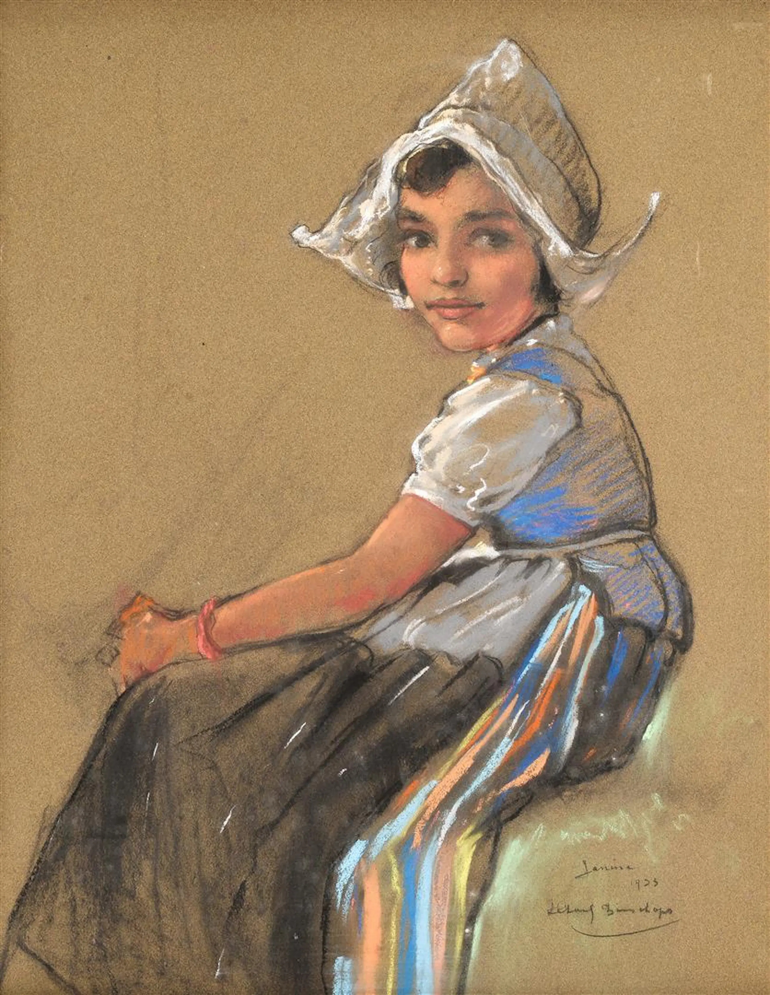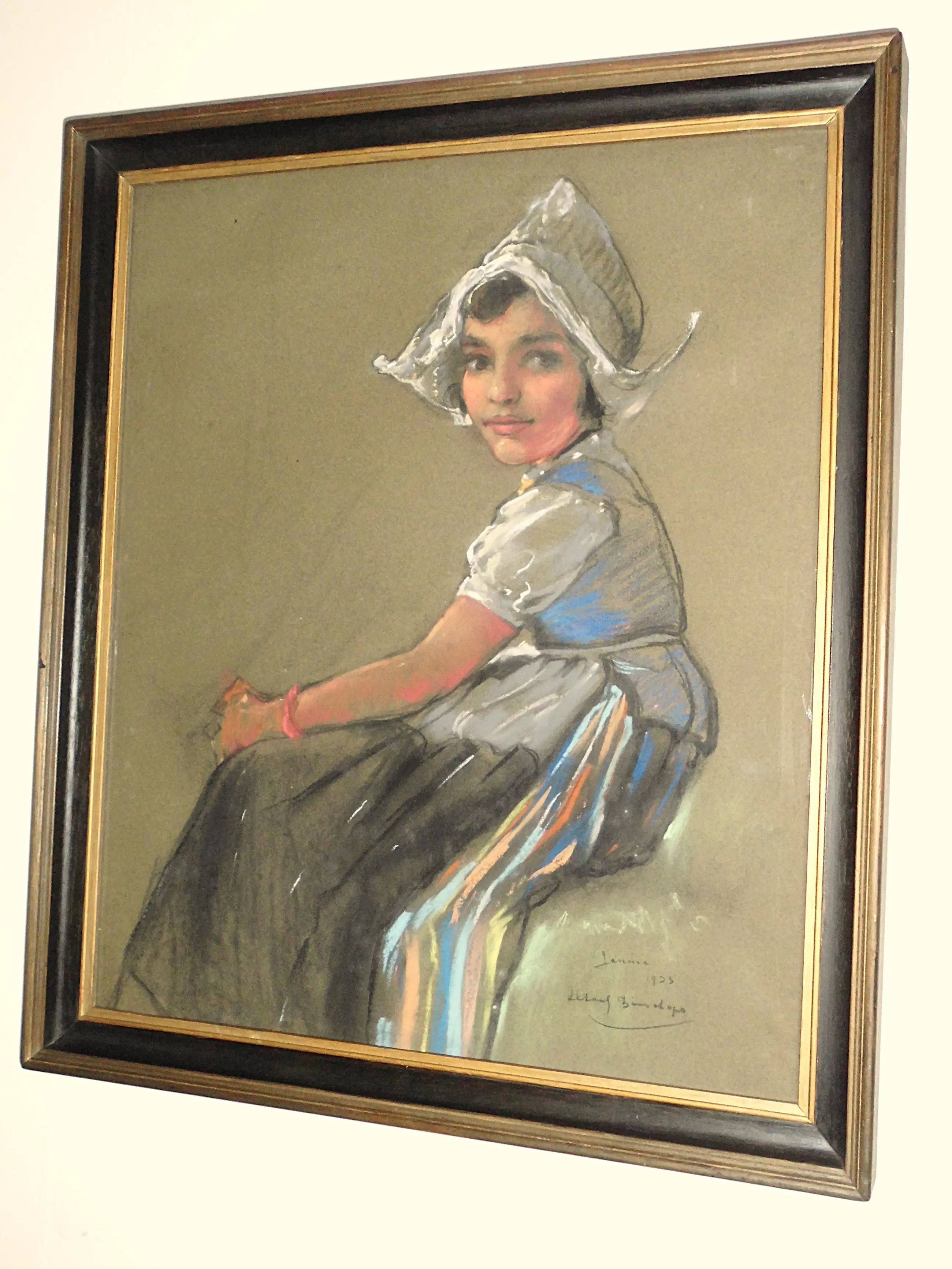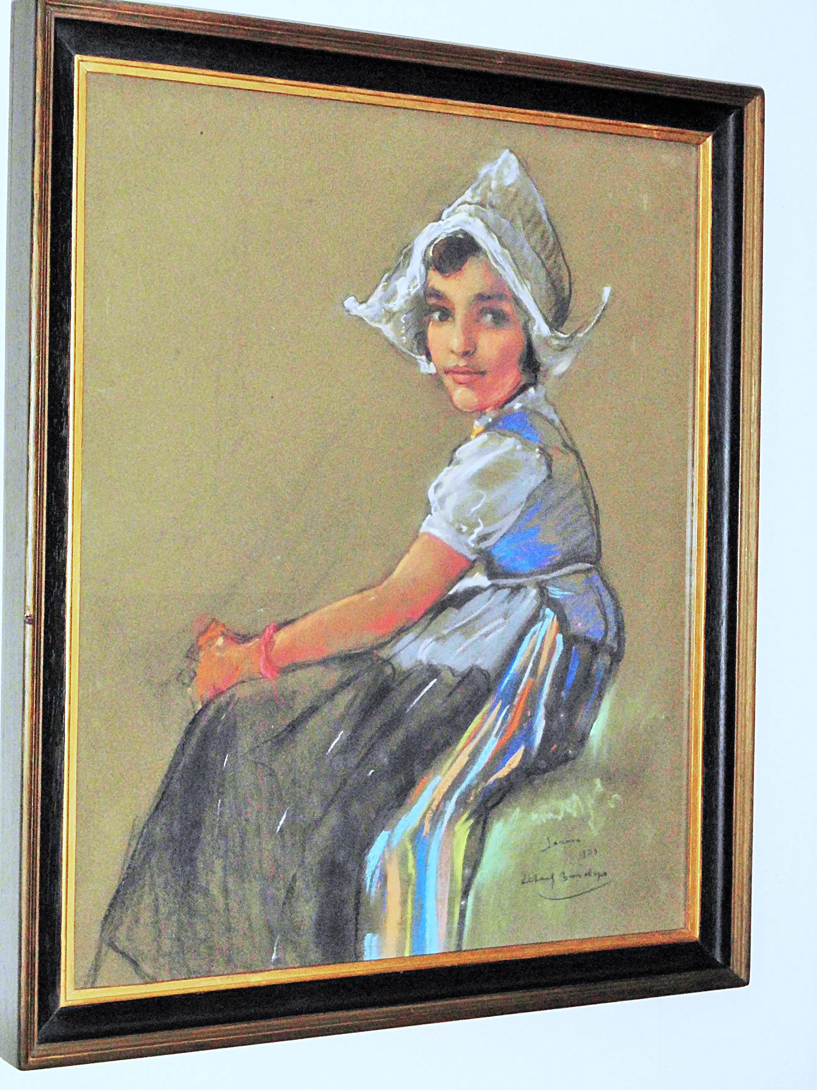Zeer Mooi Oud Werk Schilderij "Portret van Janine"