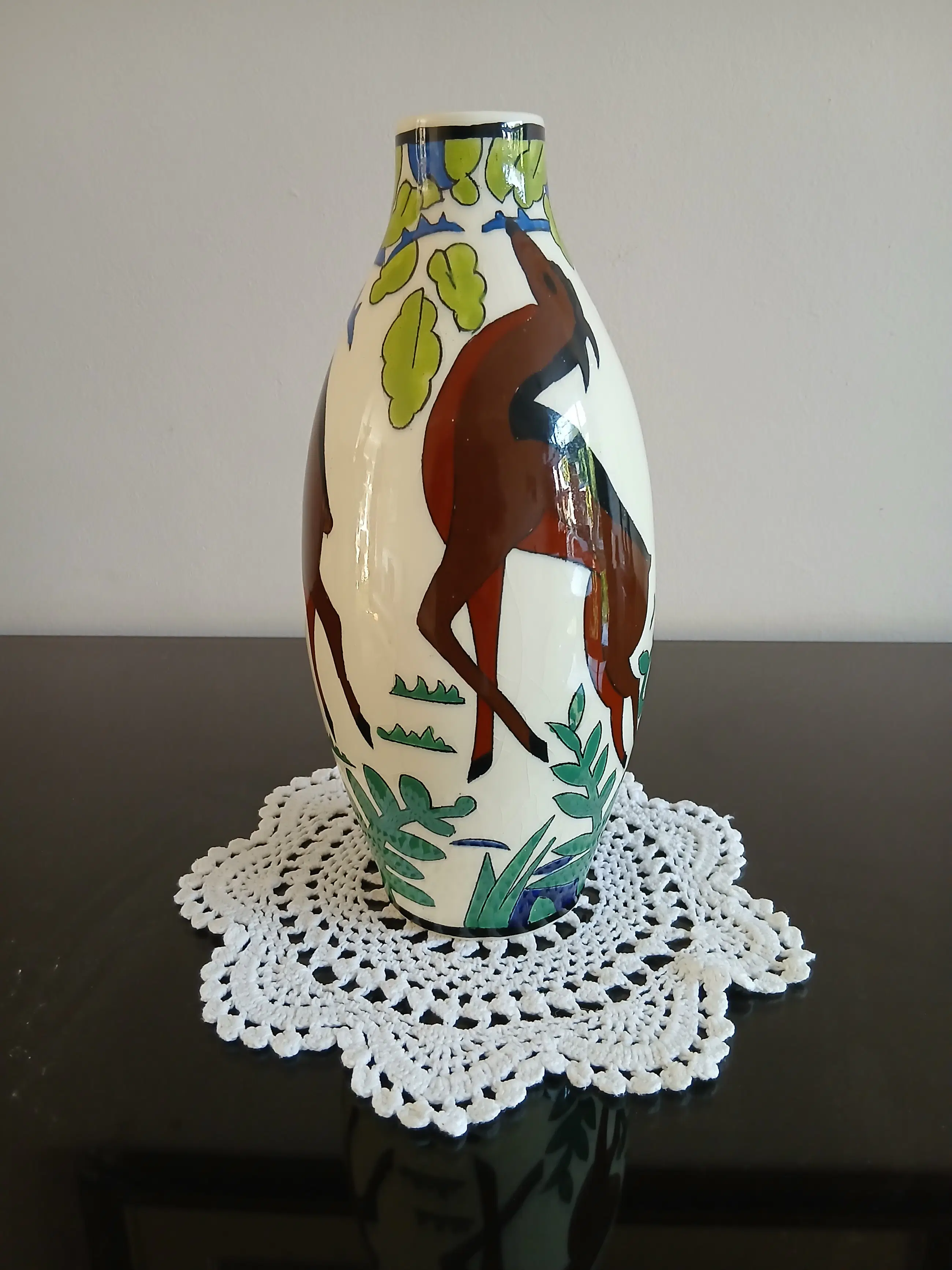 Charles Catteau - keramische vaas, gedecoreerd herten en florale motieven