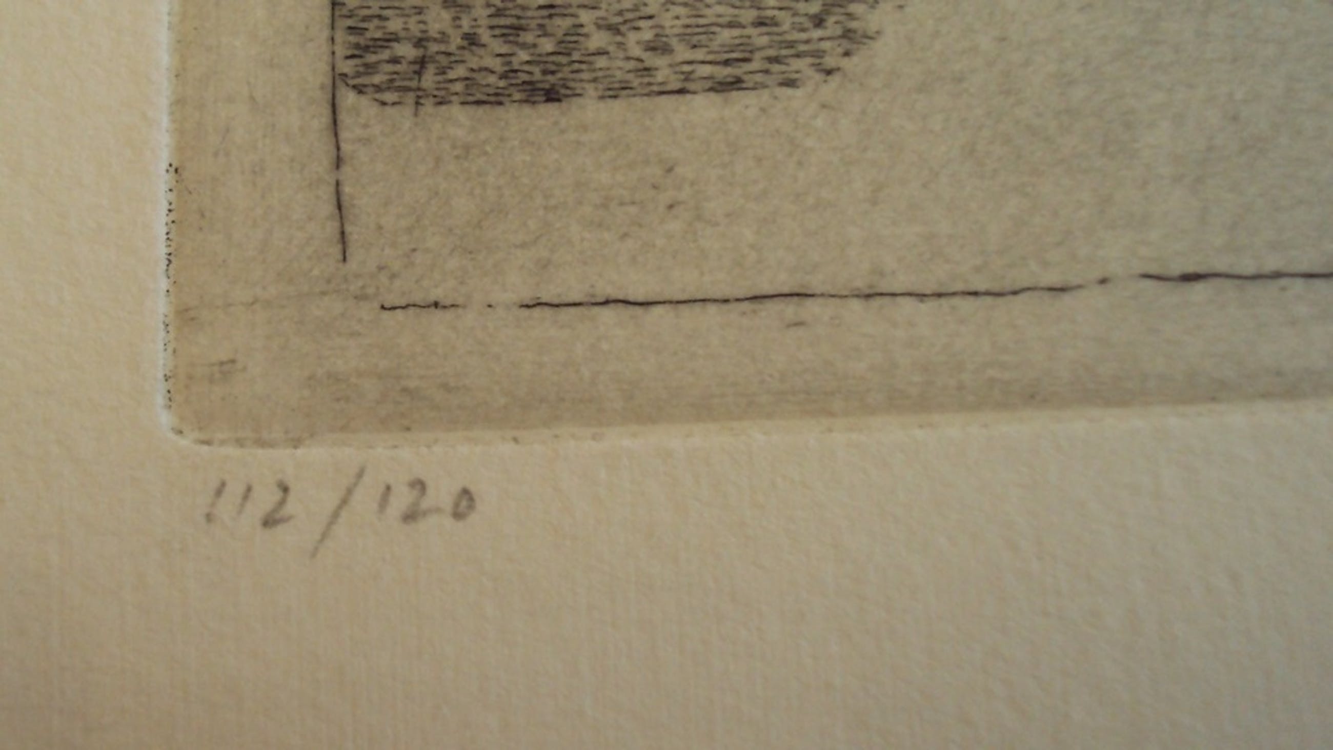 Ets 112 van 120 van de bekende utrechtse graficus Charles Donker (1940). Het beeldformaat is 18 bij 25. De papier maat is 21 bij 30.Deze ets is in opdracht gemaakt van kunsthandelaar Jan Juffermans te Utrecht voor een tentoonstelling in zijn galerie gegeven. De ets is niet ingelijst. Ik meen dat de ets uit 1989 is. U kunt meer informatie lezen op www.charlesdonker.rkdmonographs.nl