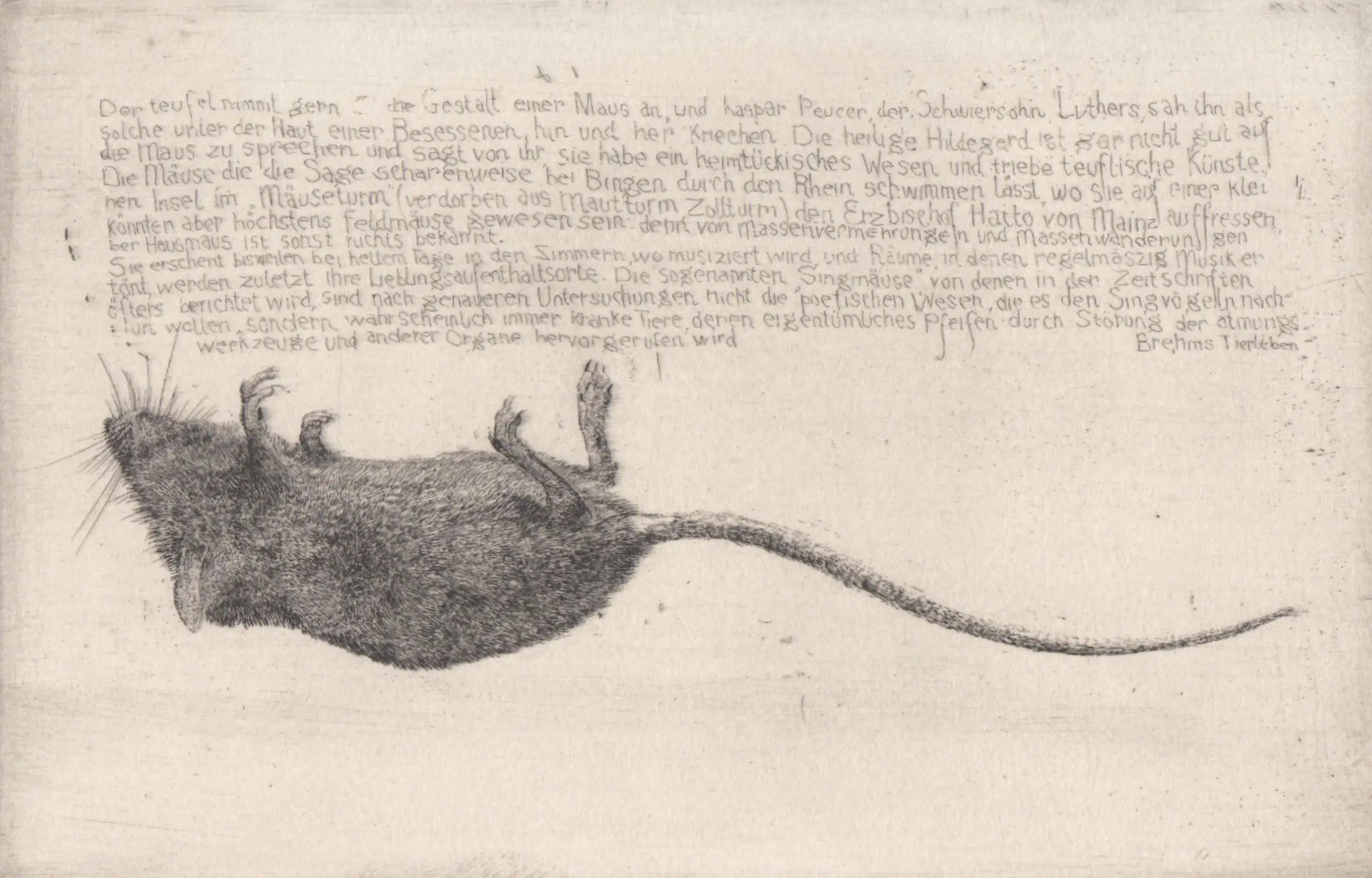bovenschrift: Der Teufel nimmt gern die Gestalt einer Maus an, (...) Brehms Tierleben (zie transcriptie De Jongh & Schatborn 2002, p. 92)