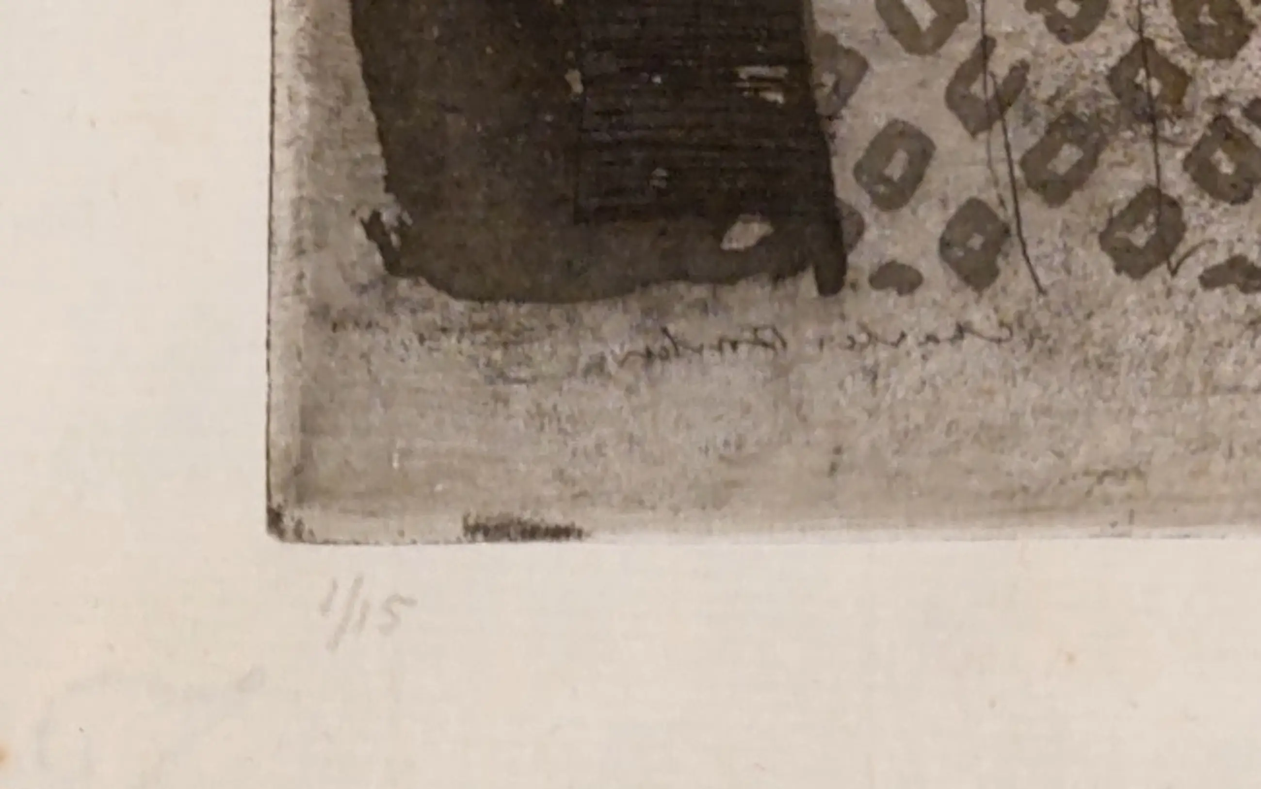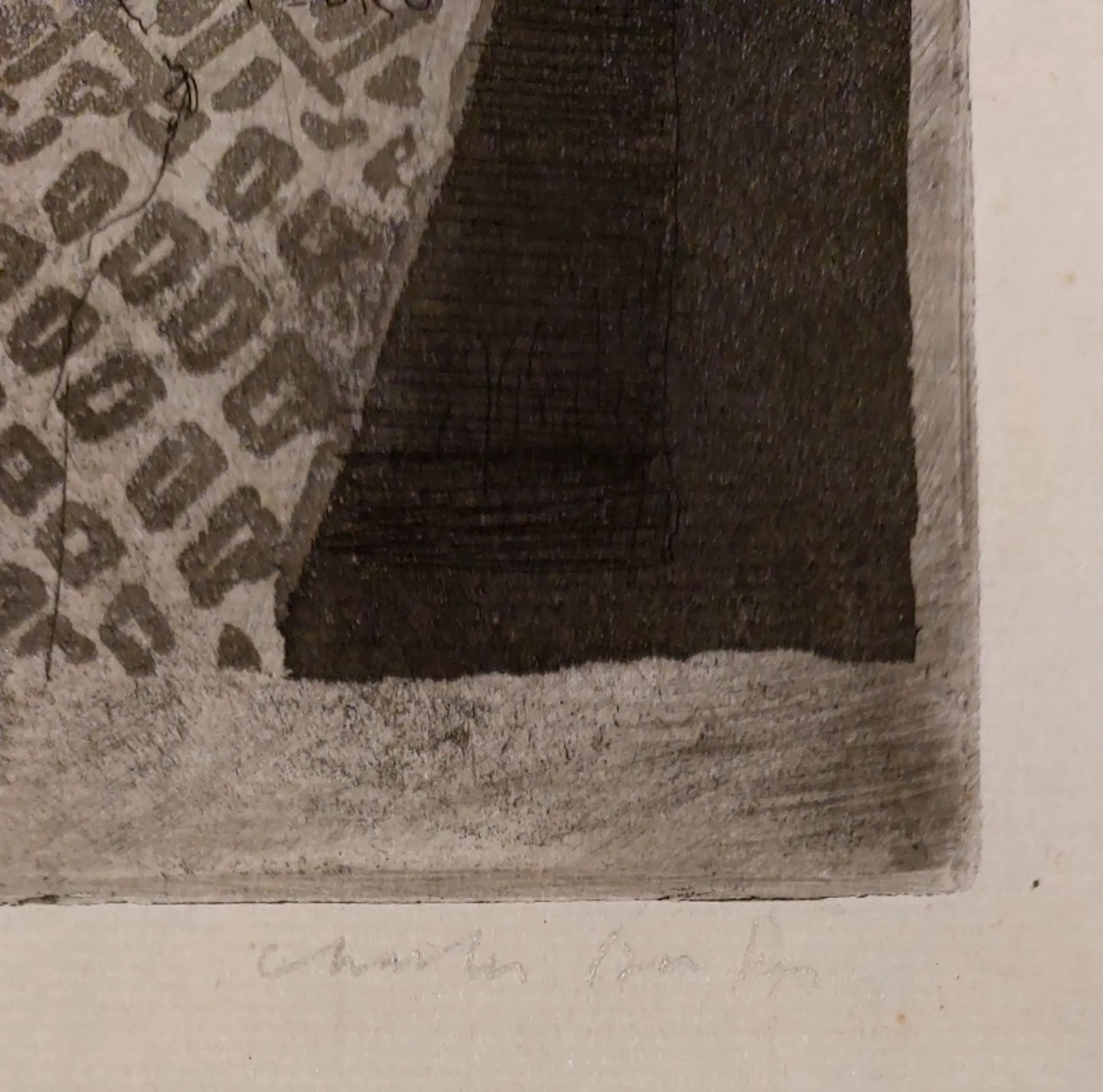 Fraai portret van deze Utrechtse kunstenaar. Het is mij niet helemaal duidelijk of het een litho of een ets betreft, ik voel een lichte 'moet' dus het kan ook in ets zijn ipv een litho. Gesigneerd in potlood en genummerd 1/15.
