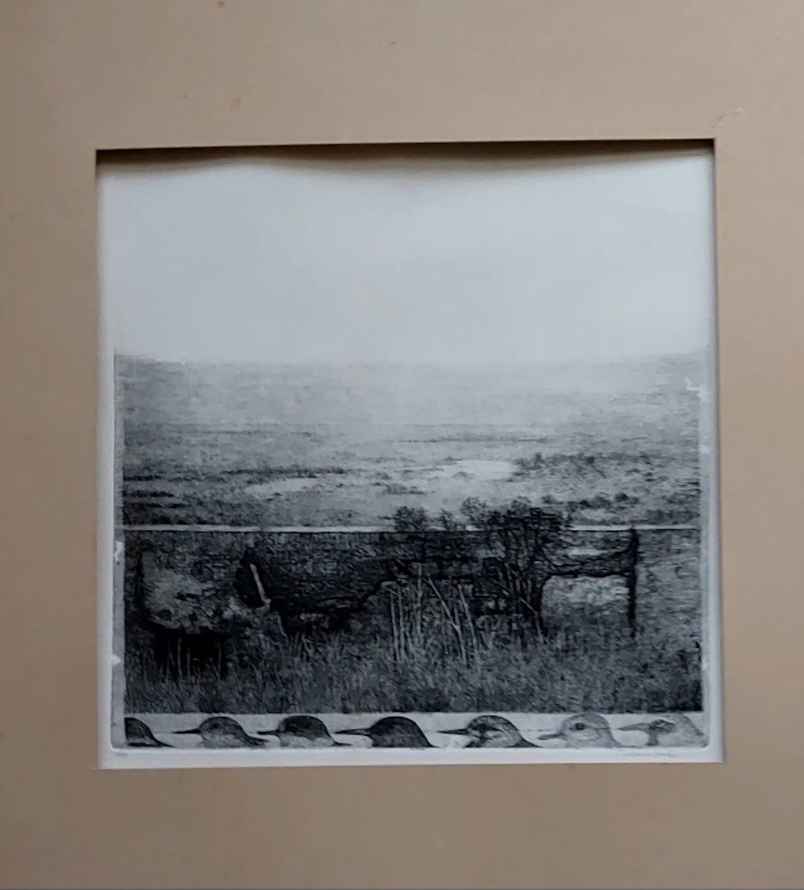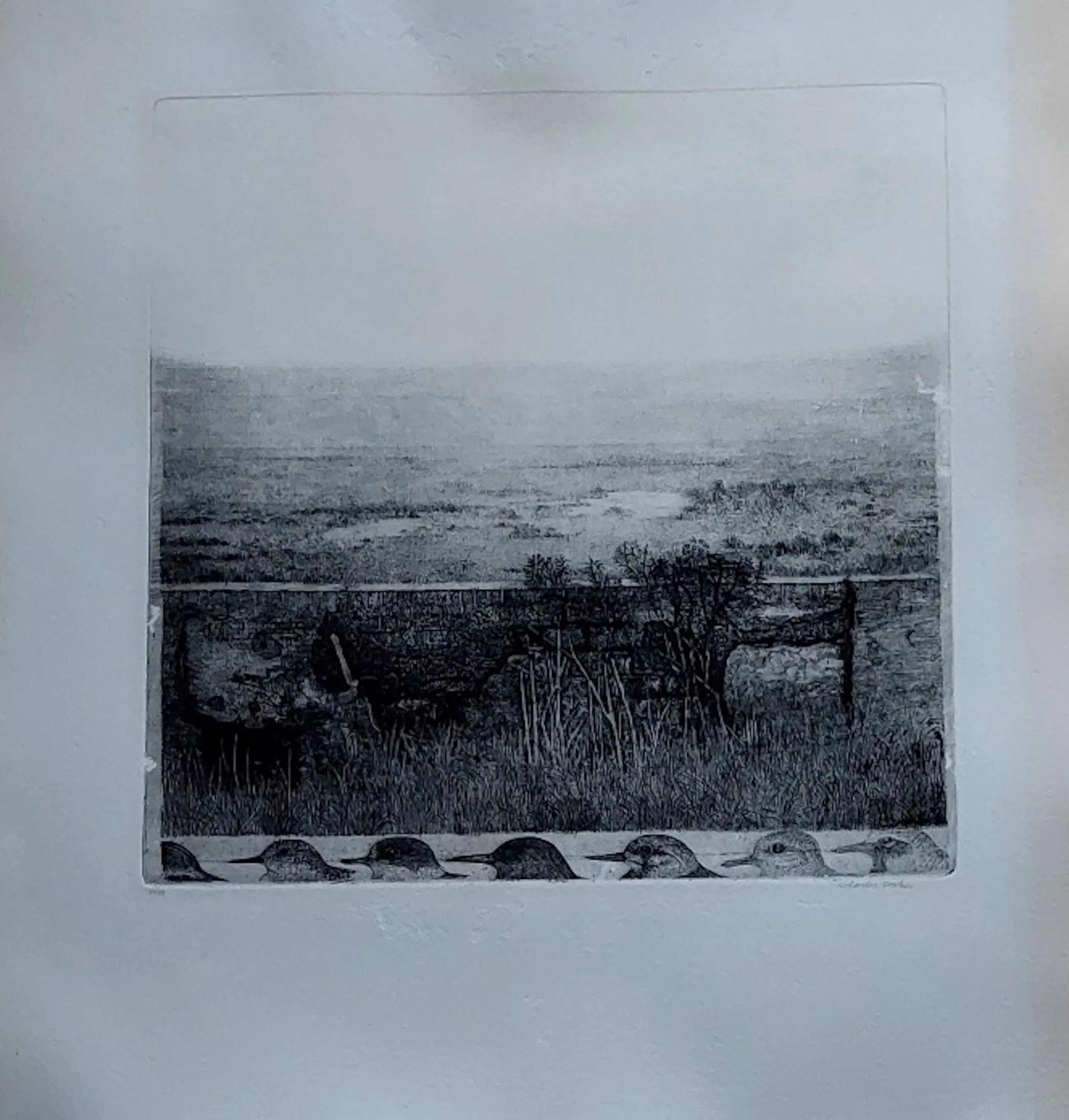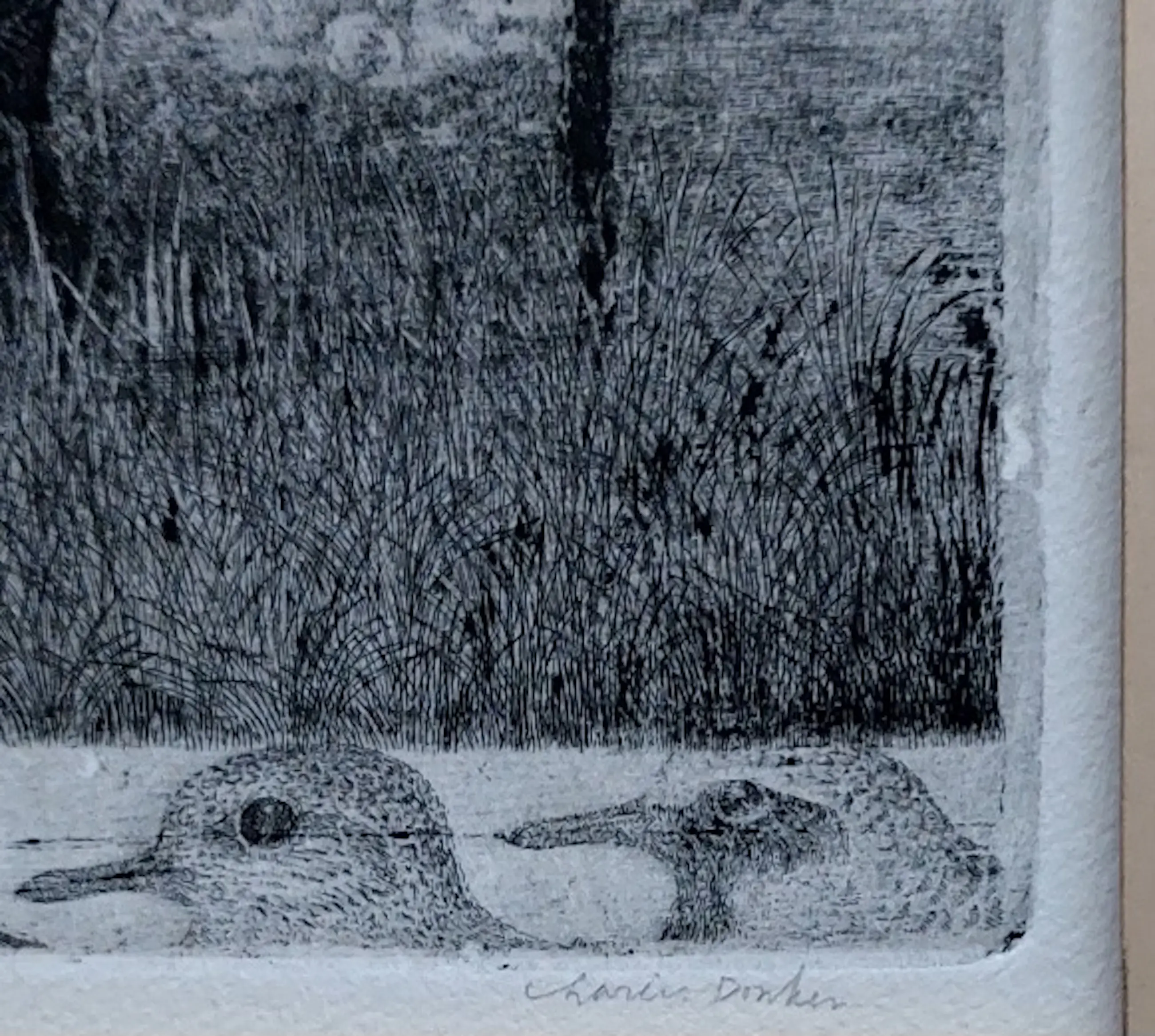 De prachtige etsen van Charles Donker hoeven geen betoog. Zijn grafisch werk wordt hoog gewaardeerd in binnen- en buitenland. Deze ets is afkomstig uit de nalatenschap van de weduwe Utrechtse surrealist Dolf Zwerver, een persoonlijk vriend van Donker. Ik oude passe partout licht verkleurd.
