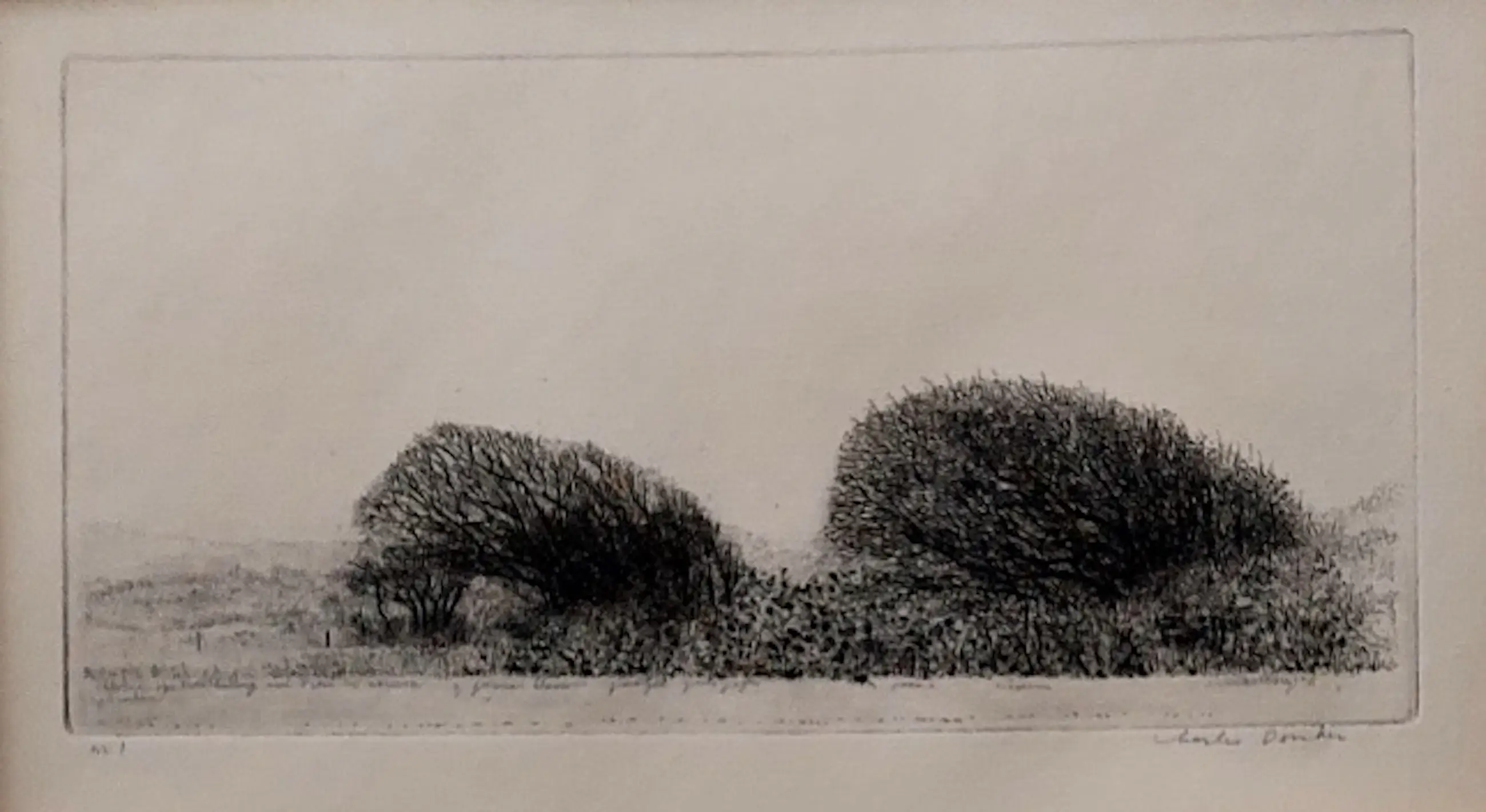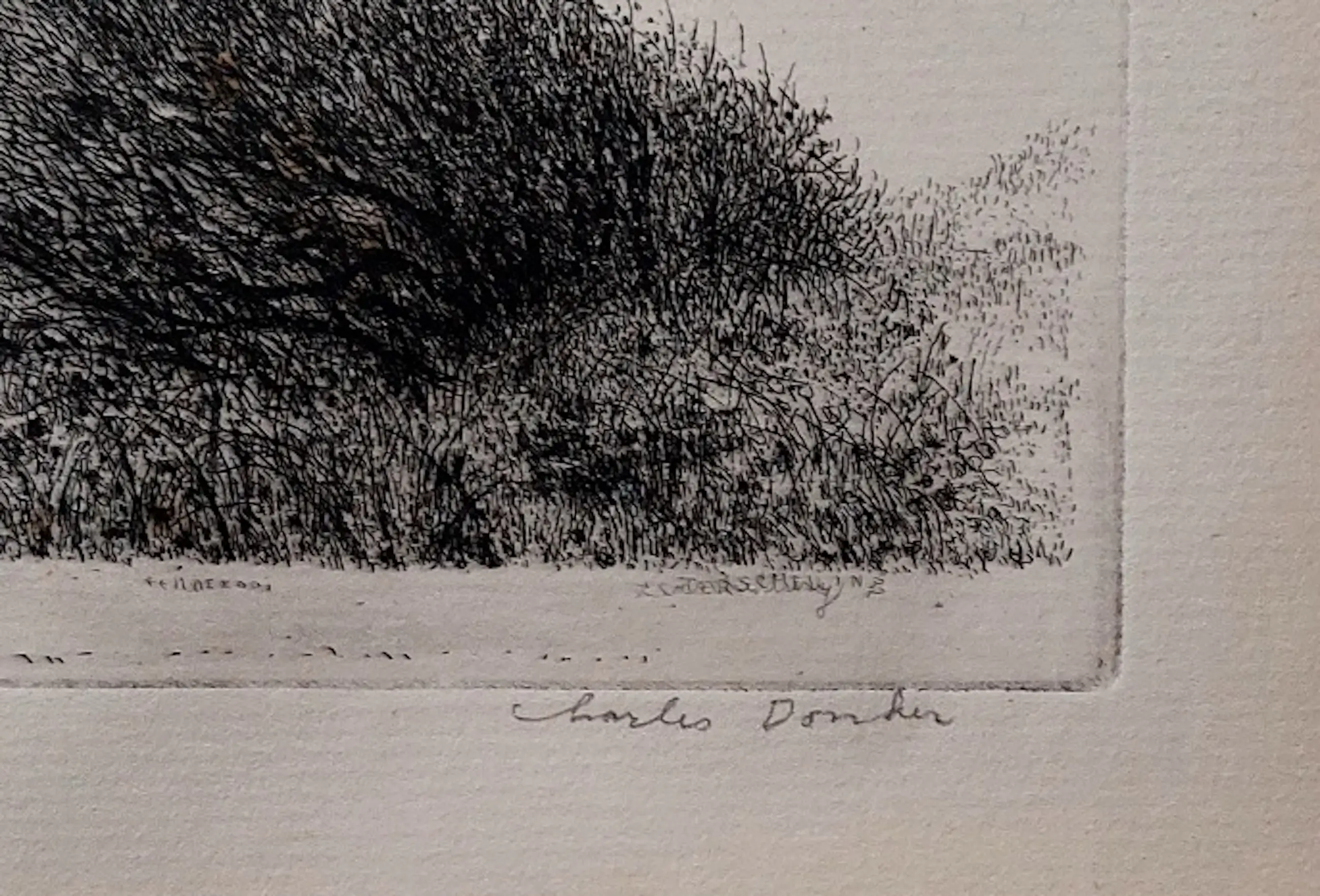 Het werk van Charles Donker behoeft geen uitleg, in binnen- en buitenland zeer gewaardeerde graficus. Ets is afkomstig uit de nalatenschap van Christine Zwerver, vrouw van Dolf z Zwerver een persoonlijke vriend van Donker.
