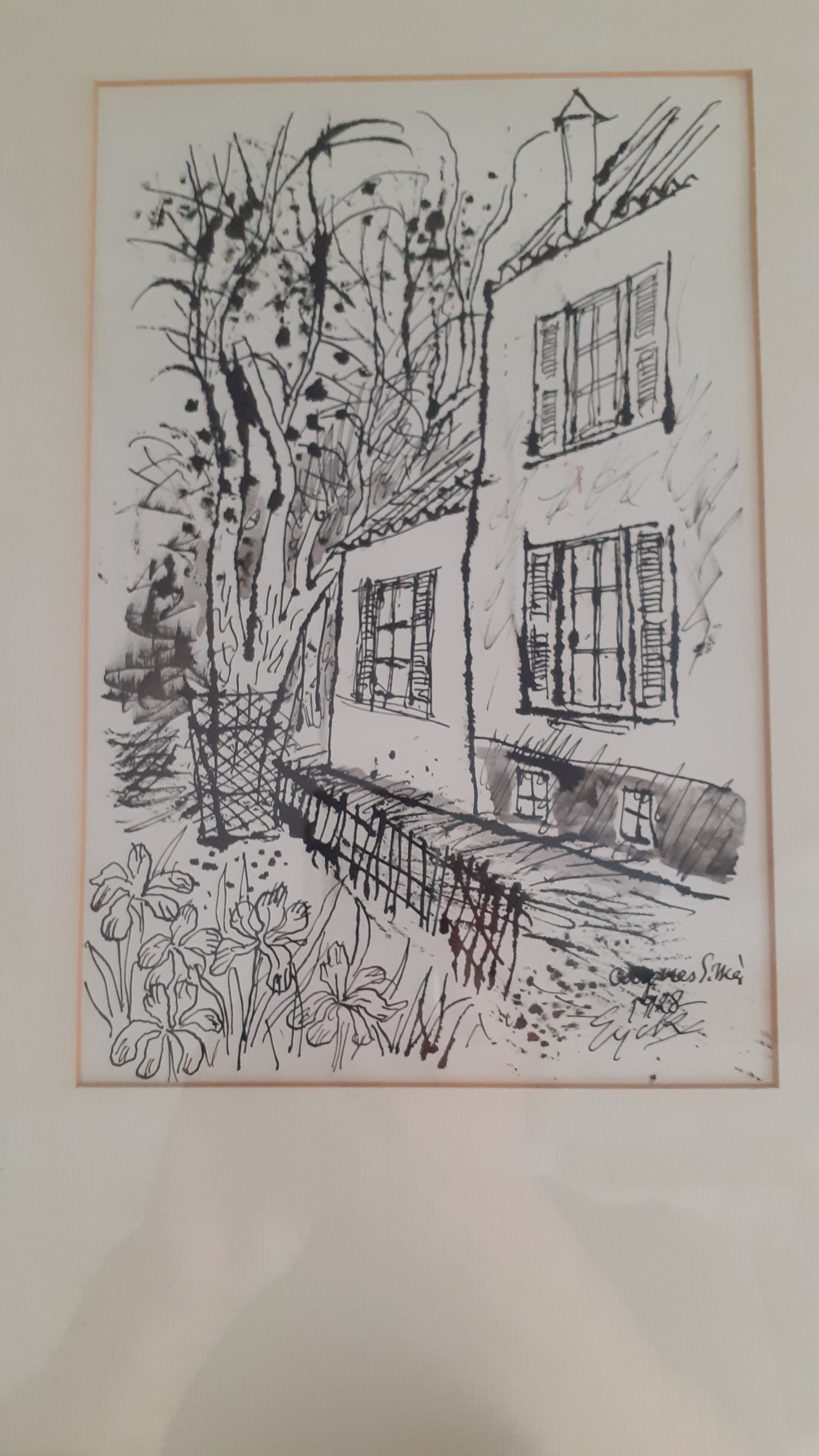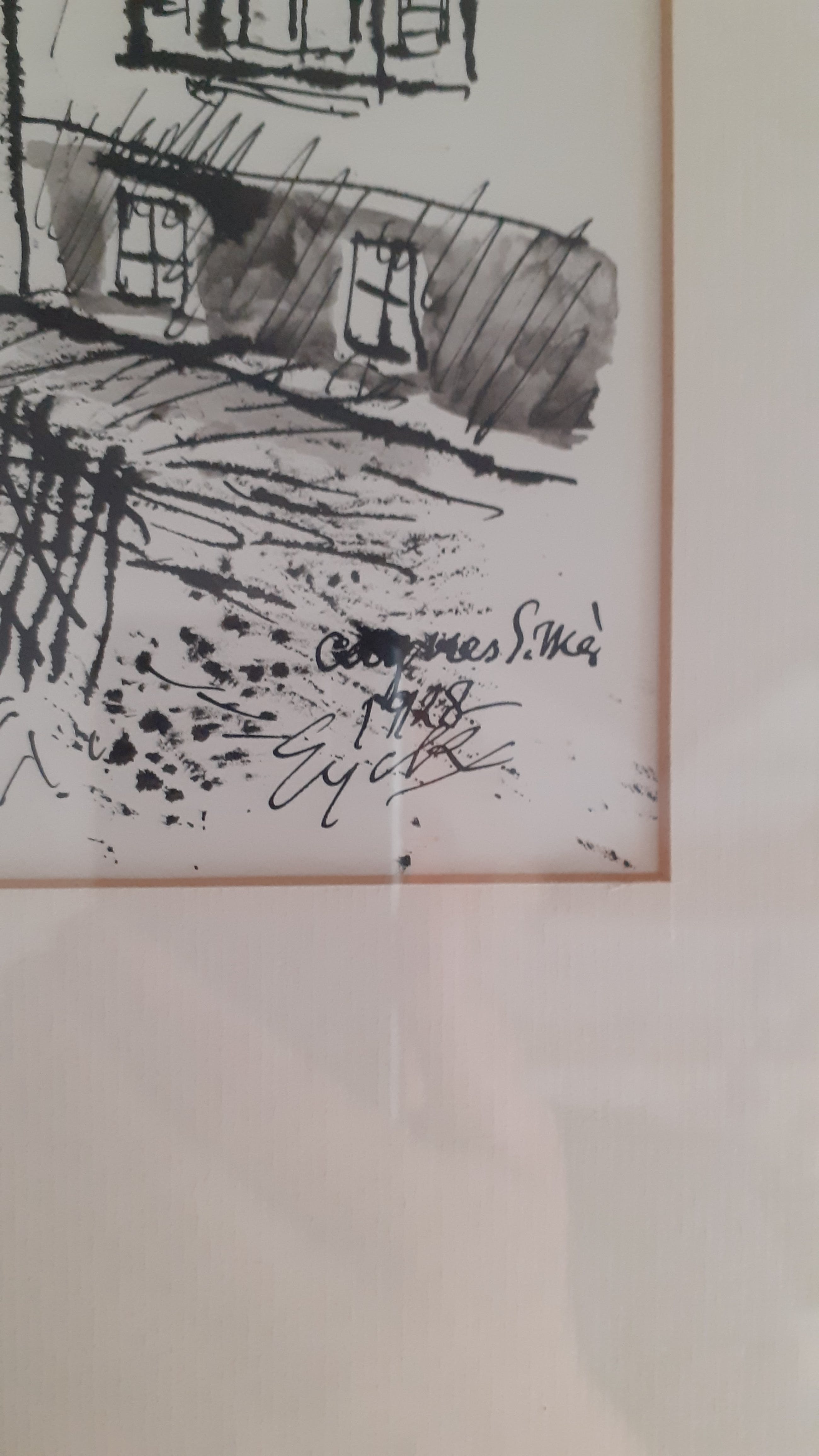 Pen en penseeltekening in inkt gemaakt in zijn jonge jaren, waarschijnlijk tijdens een bezoek aan het Renoir museum in Cagnes sur Mer (Nice). Handtekening R.O.