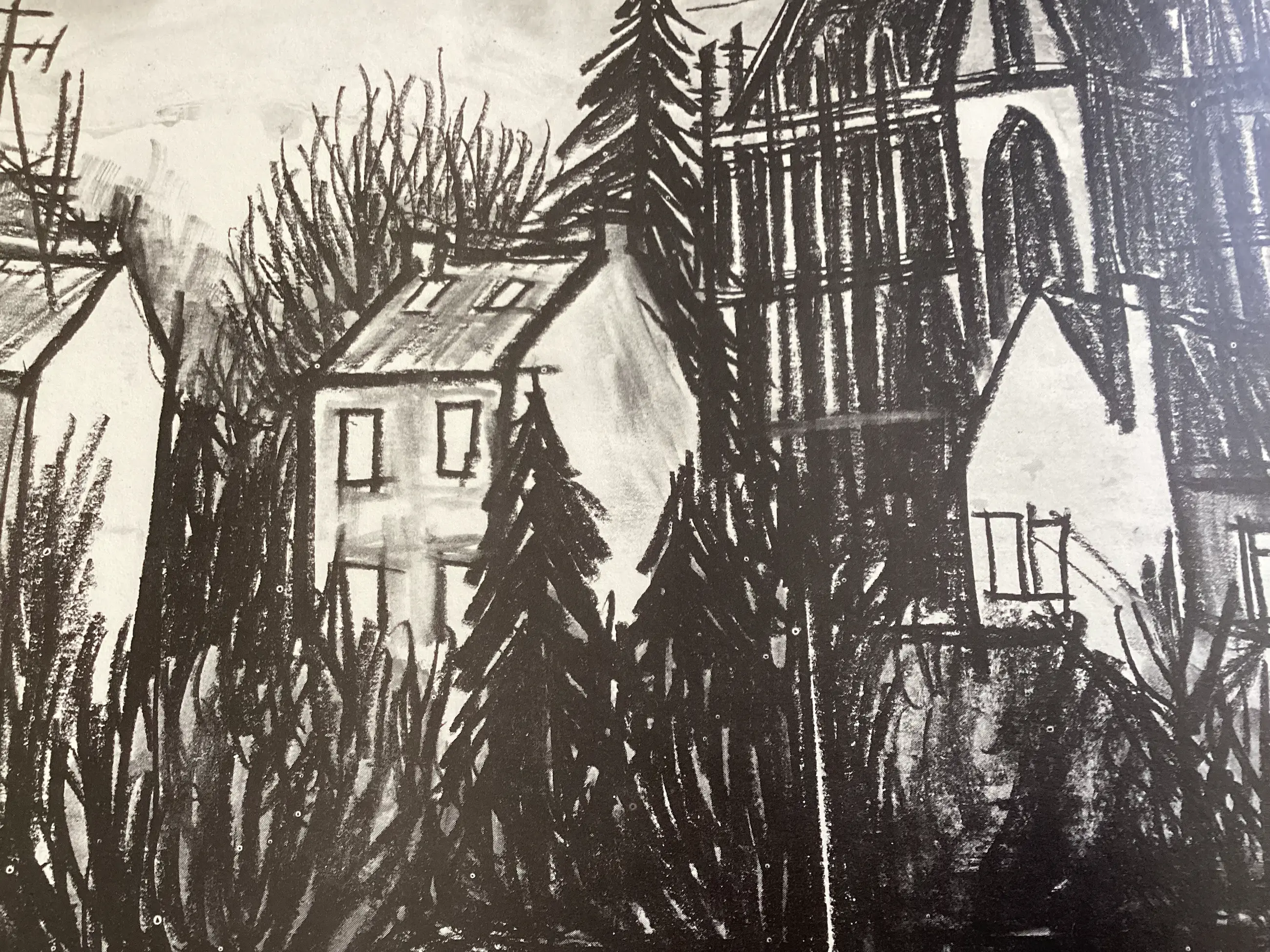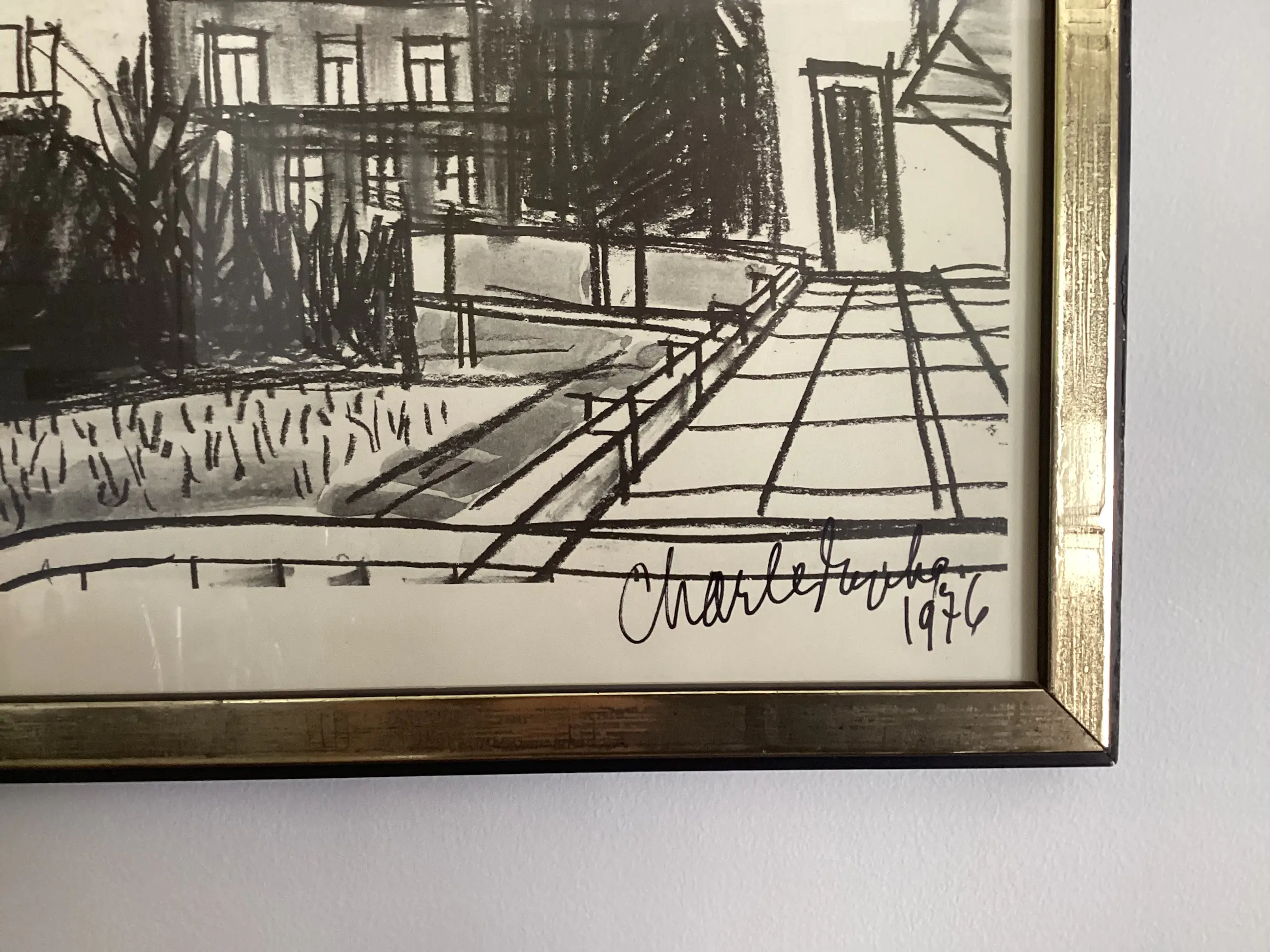 Kenmerkende lithografie van Charles Eyck. Meerssen - geboorteplaats van de kunstenaar. In vergulde houten lijst, formaat 43 x 53 cm. Onderin druk gesigneerd, 1976. In prima conditie.