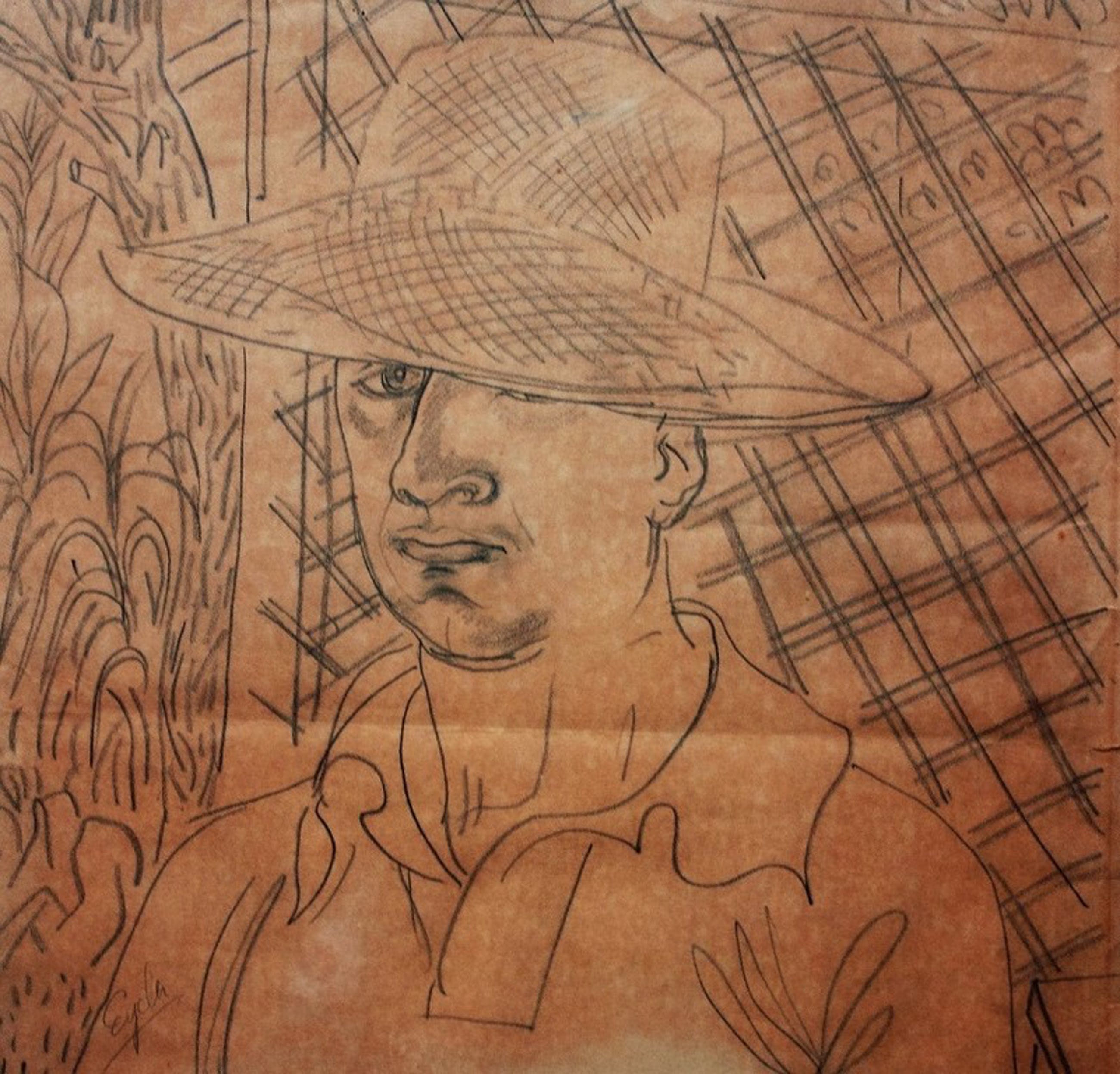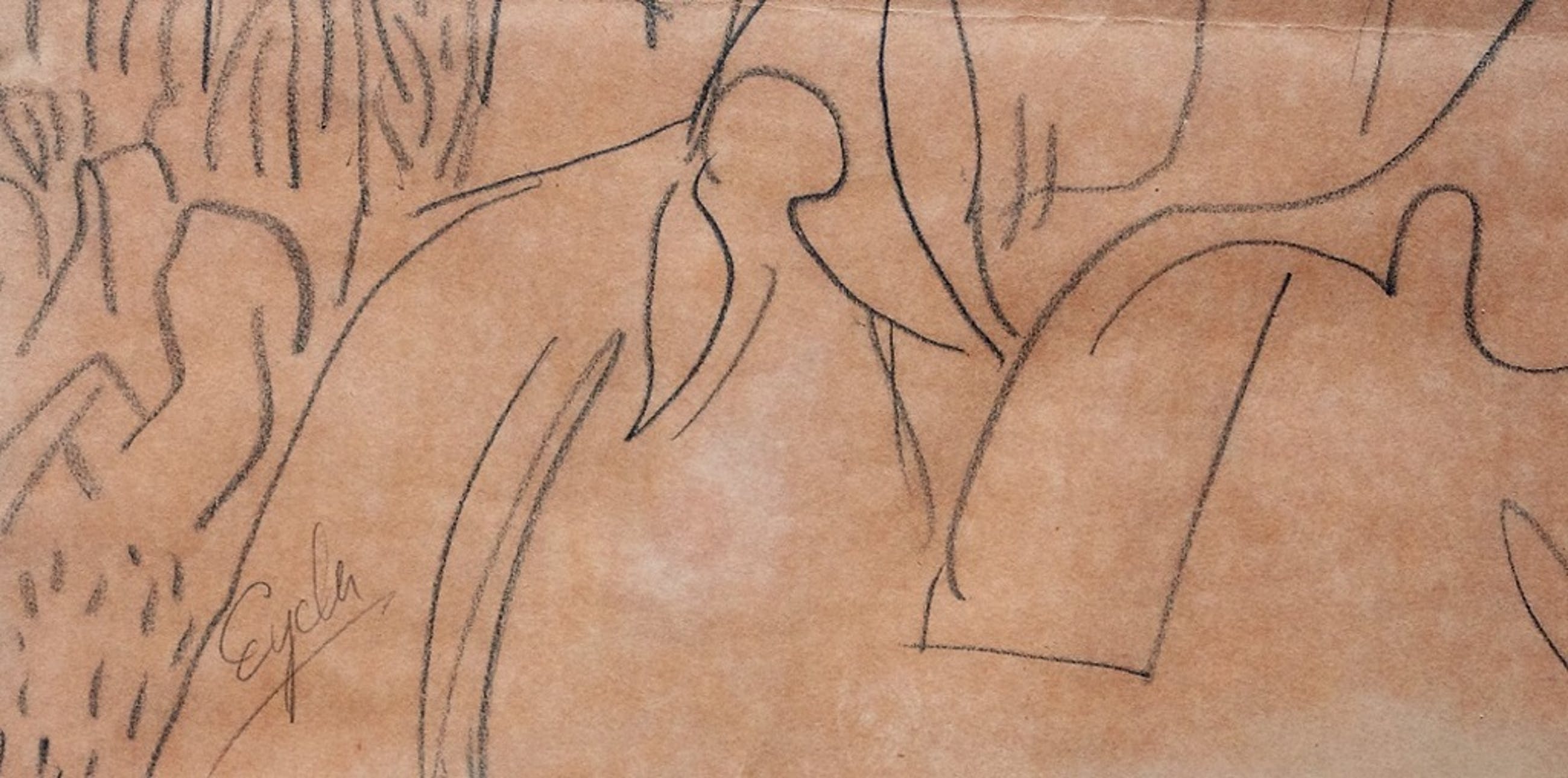 Fraaie tekening van Charles Eyck, 58 cm x 48 cm. Aan de onderzijde licht verkleurd. Niet ingelijst.
