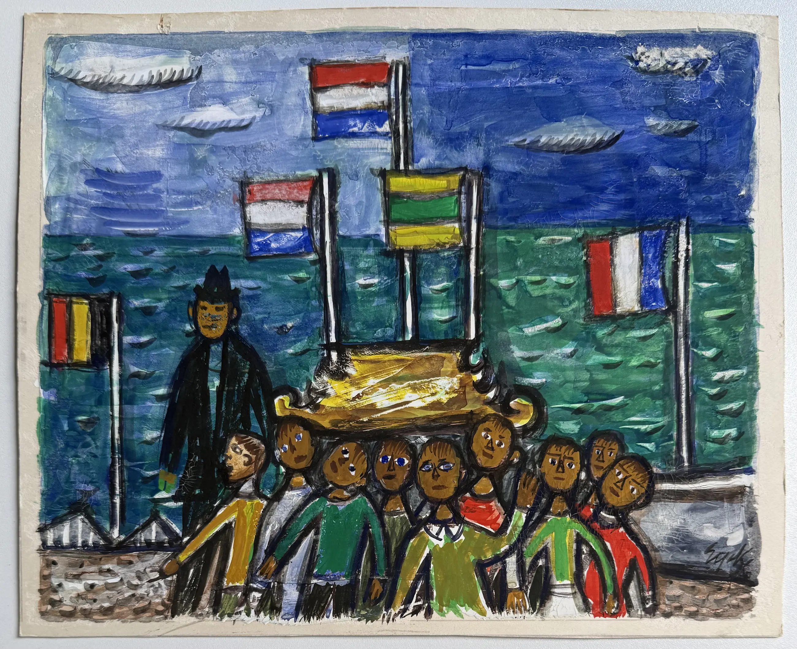 Charles Eyck - gemengde techniek op karton | 'Scheveningen op de boulevard' | 1951