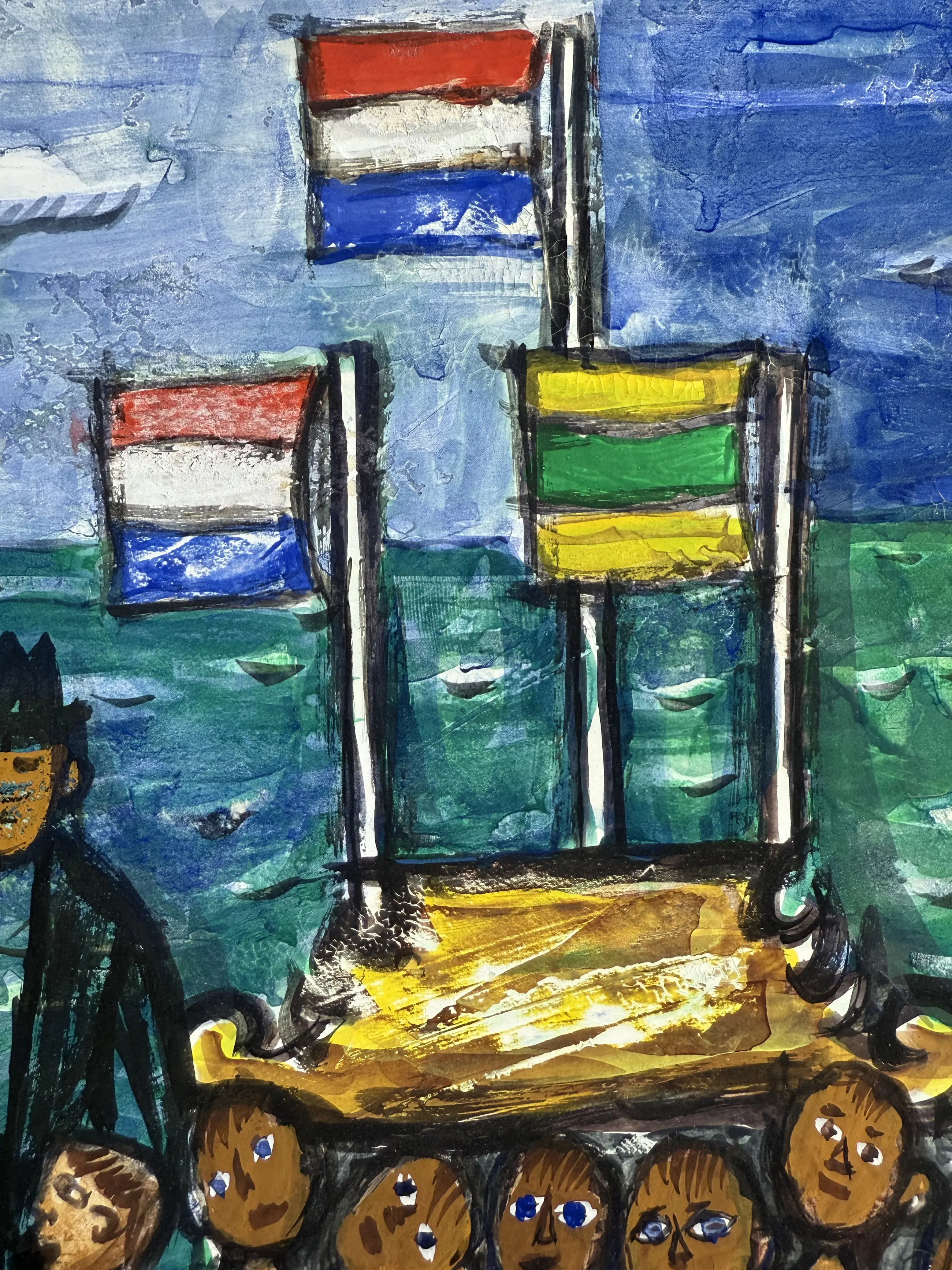 Mooi van kleur en interessant voor voorstelling en compositie, een haast naïeve manier van benadering.