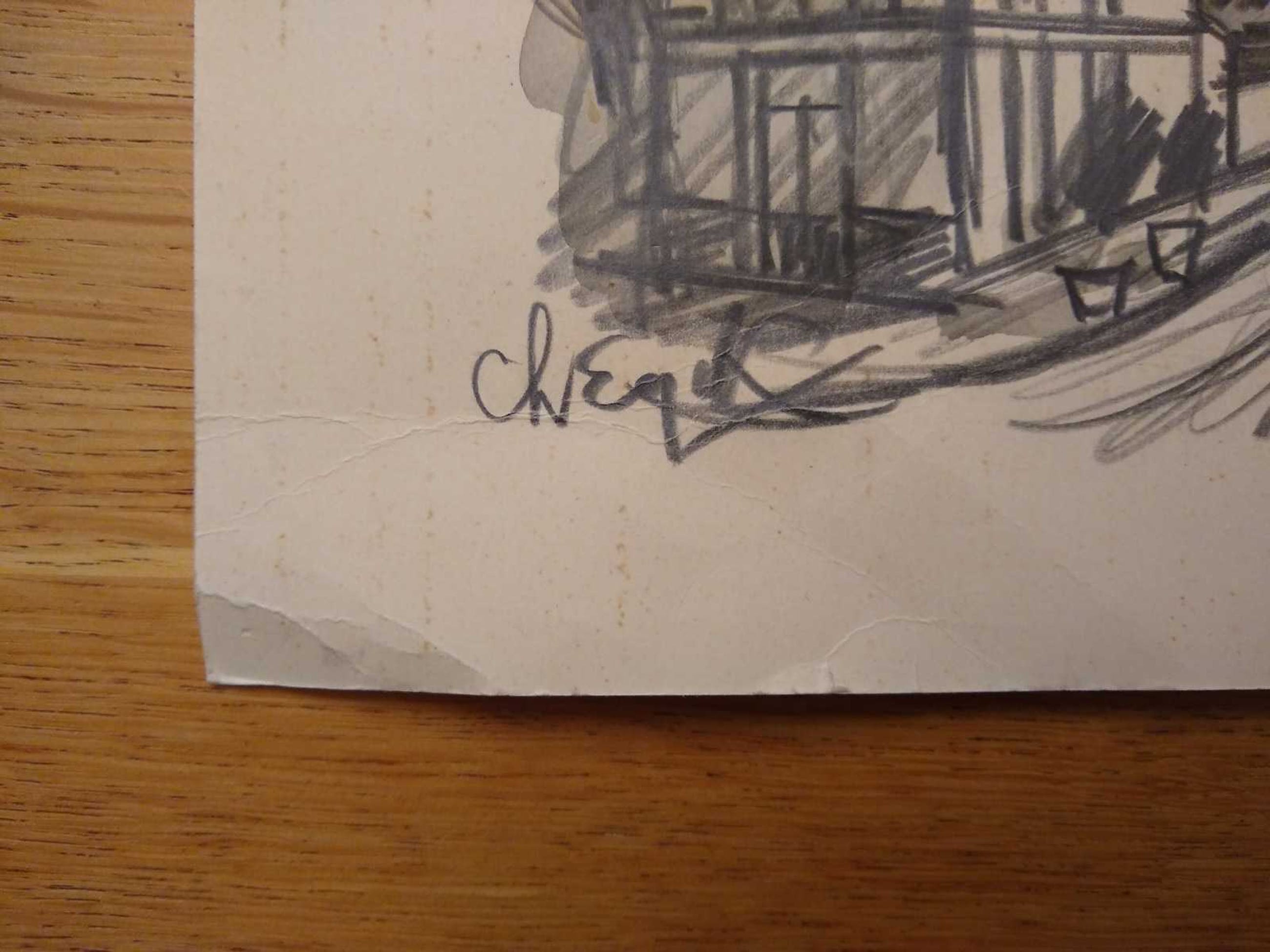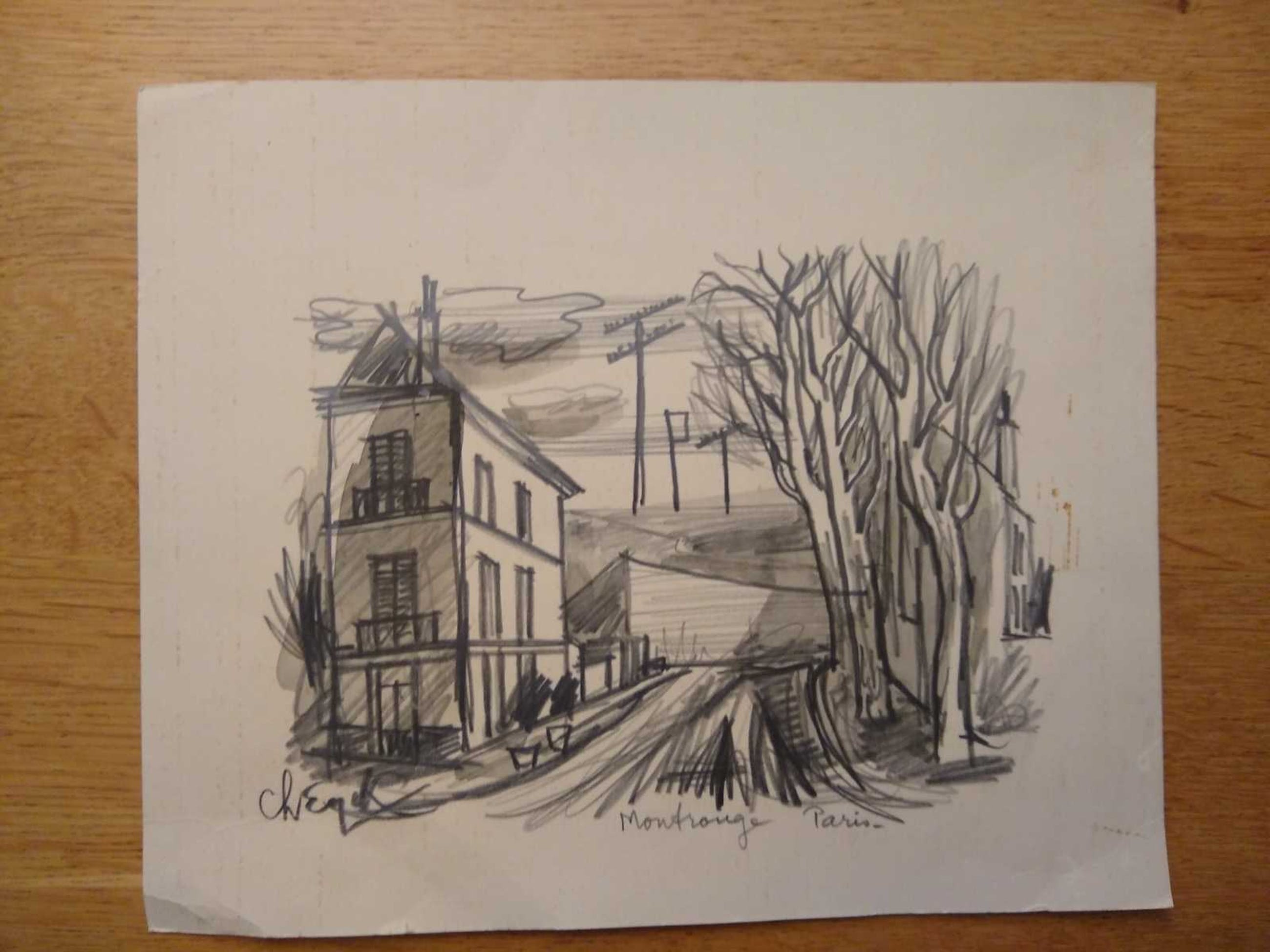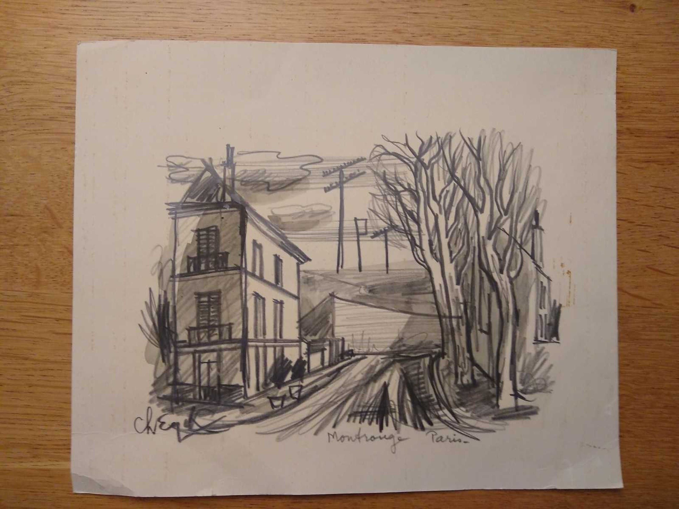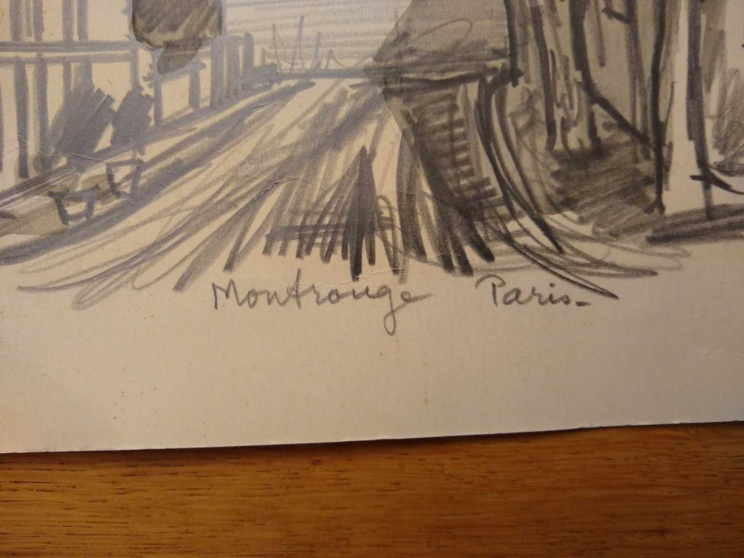 Potloodtekening door Charles Hubert (Charles*) Eyck. Voorstelling Mont Rouge Parijs.Er zijn enkele kleine onvolkomenheden in het papier (zie de foto's), maar bij inlijsten is dat nauwelijks meer te zien.