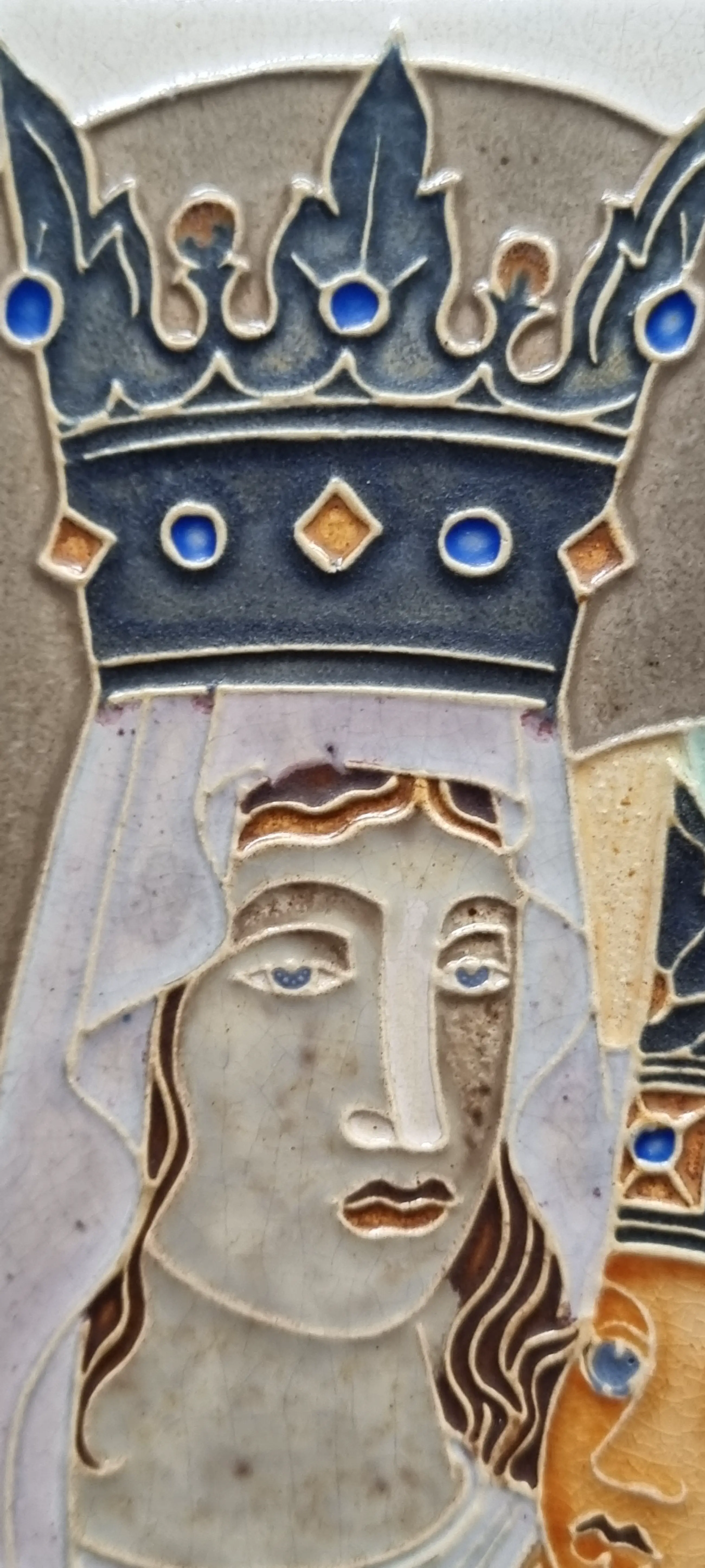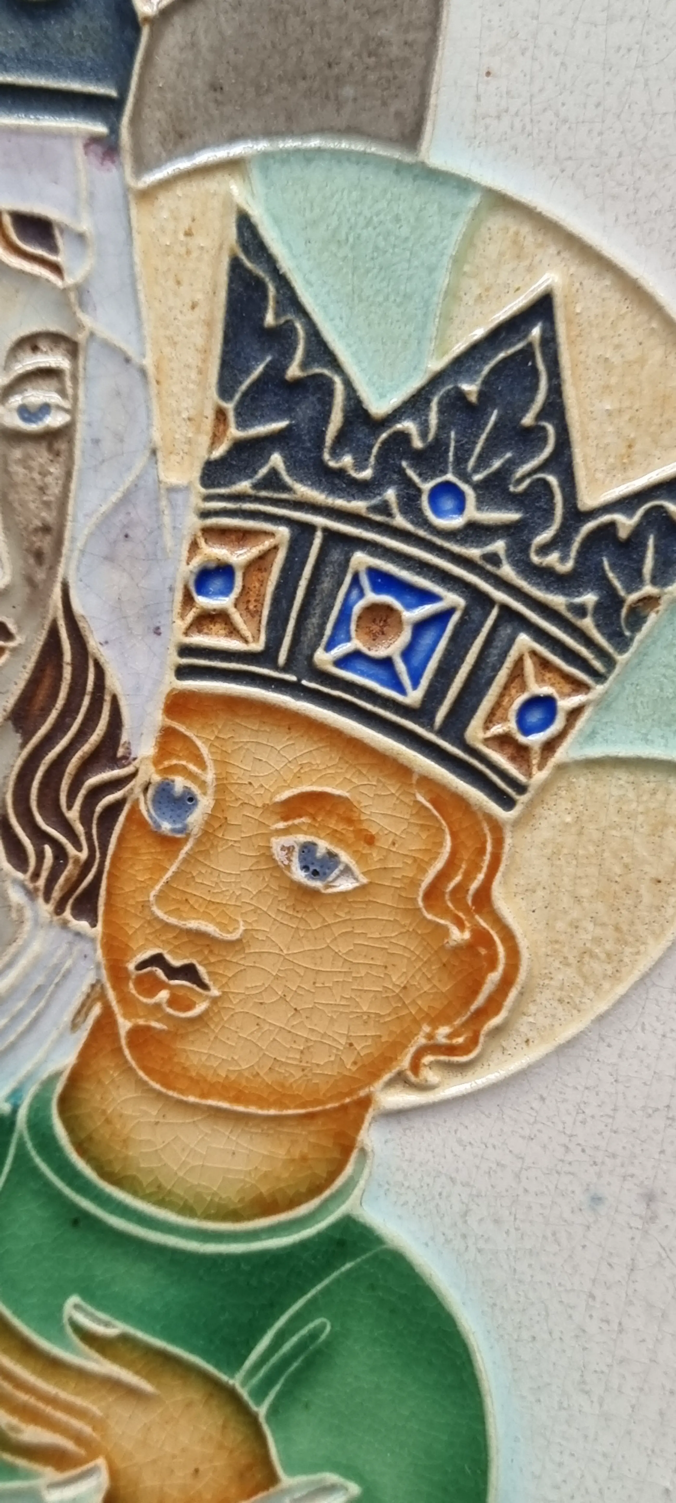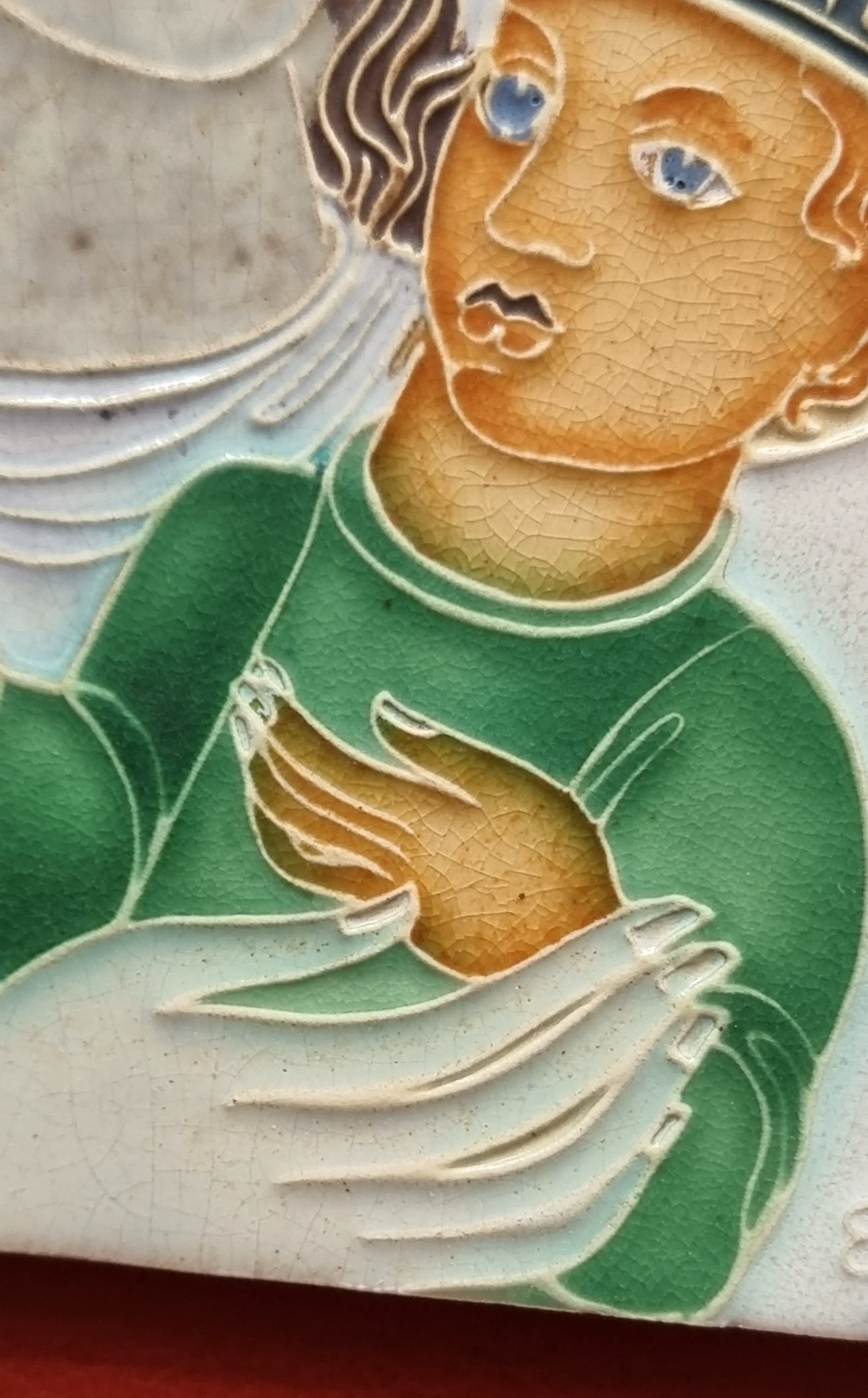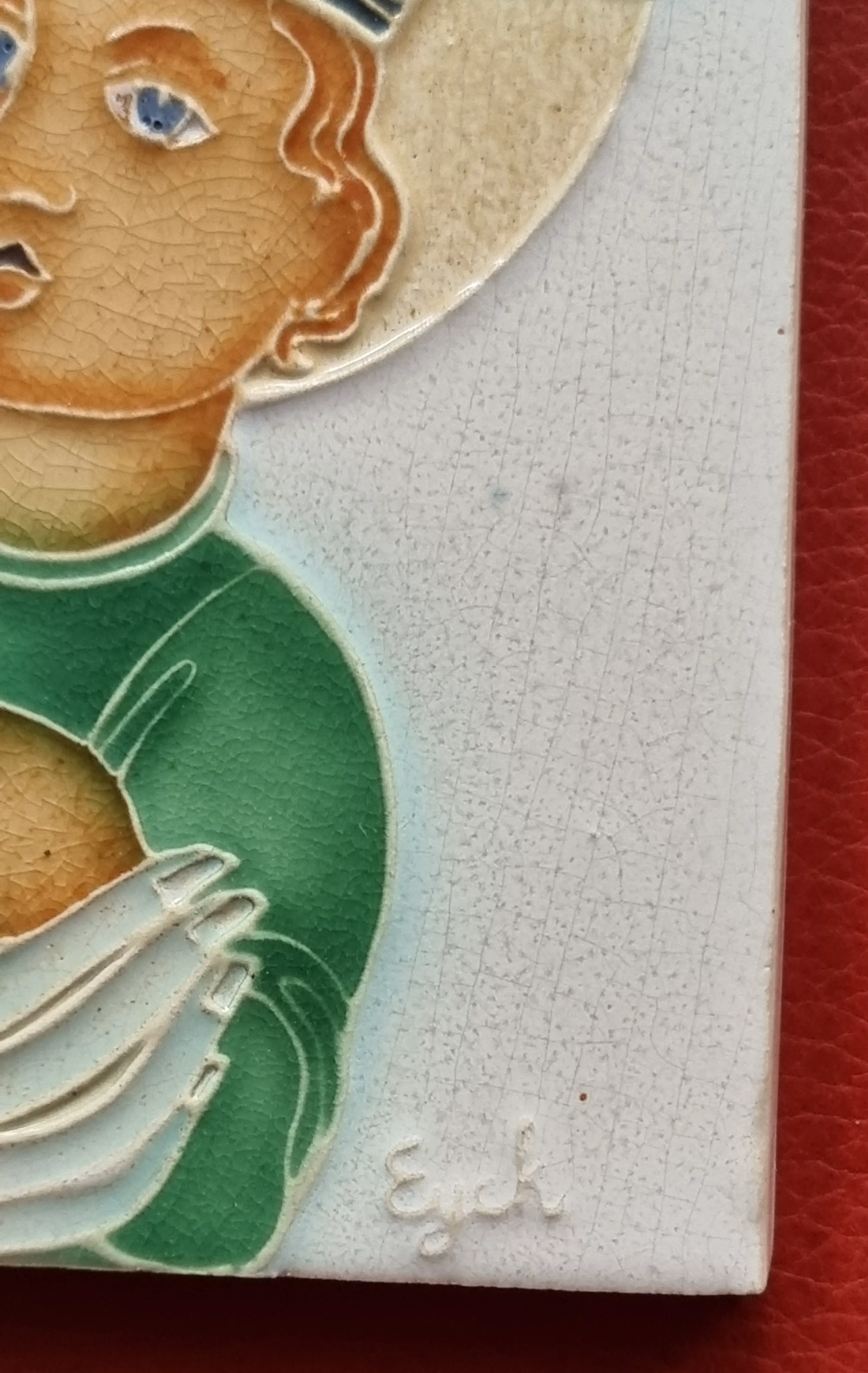 Tegeltje van Charles Eyck met religieuze afbeelding.