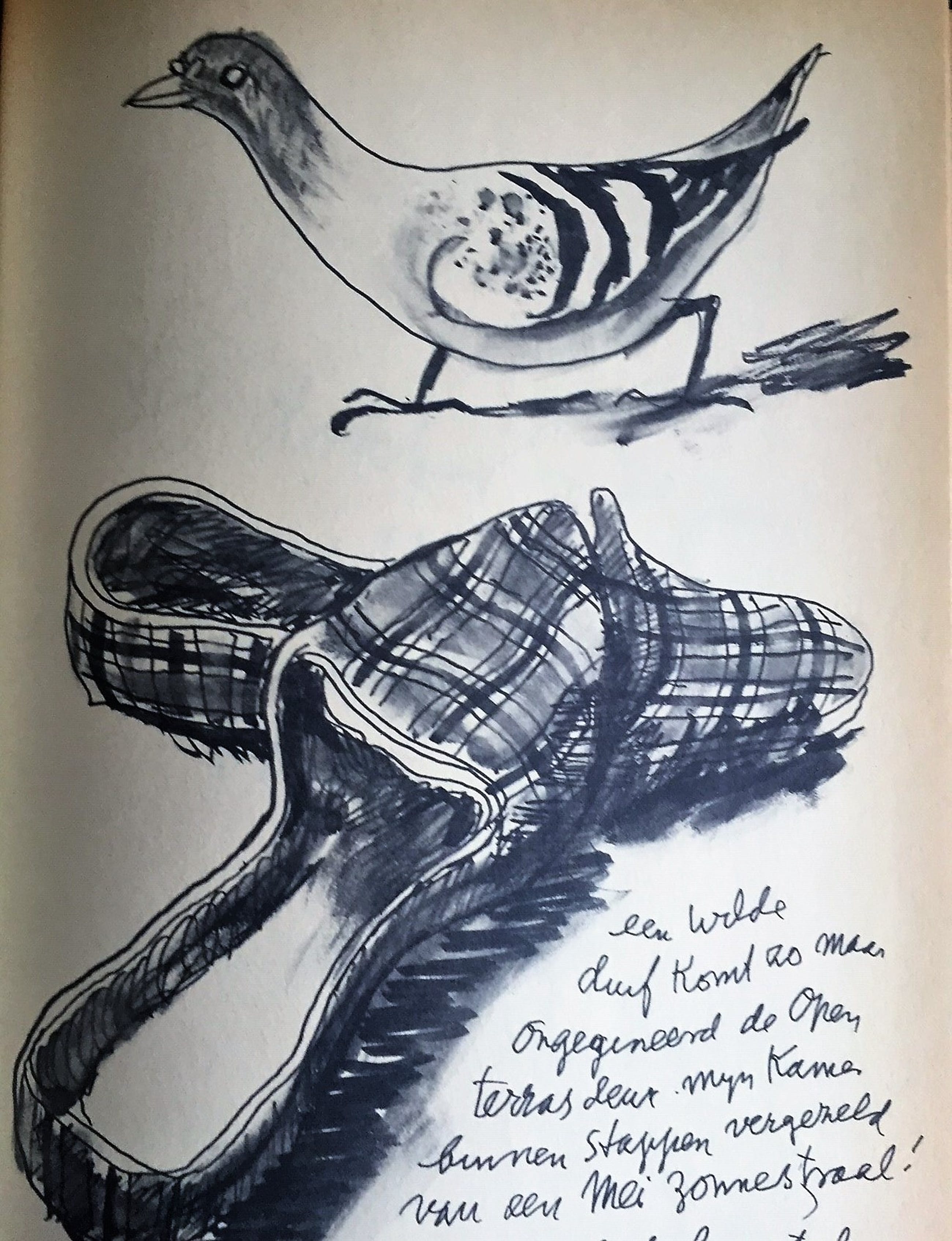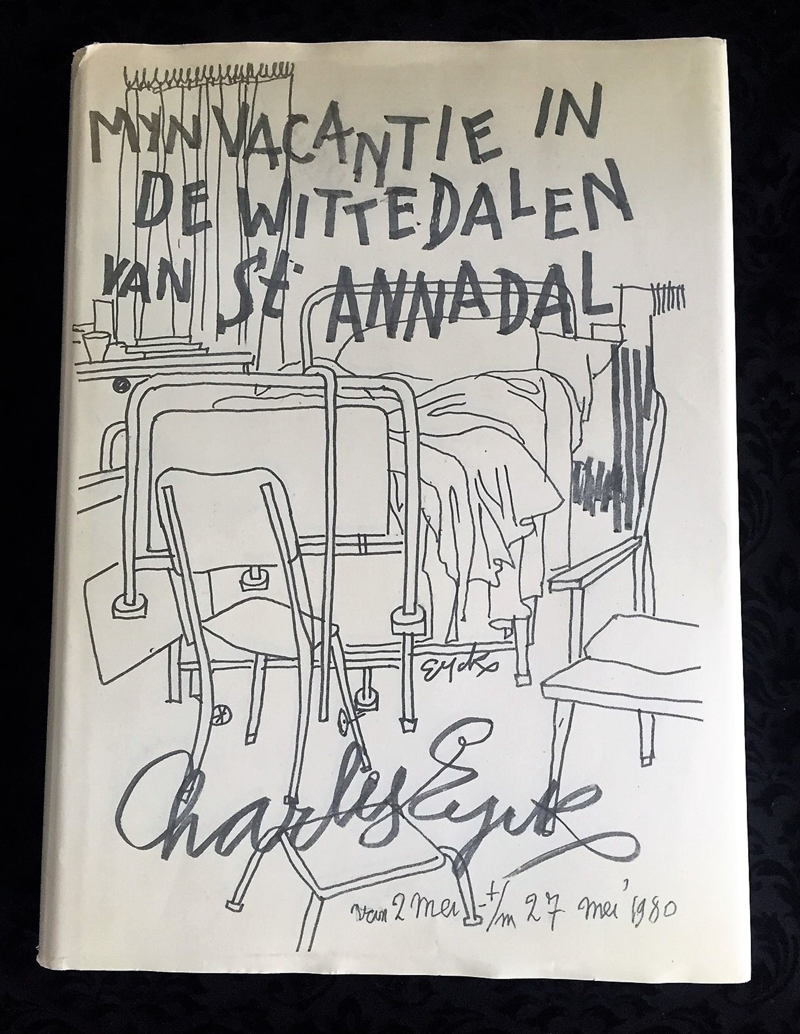 Charles Eyck tekening potlood - viltstift ingelijst + boek van stevig papier met vele schetsen & tekeningen & brieven o.a. van Toon Hermans. Mijn vakantie in St Annadal 2 - 27 mei 1980 Pagina's iets vergeeld maar in goede staat.