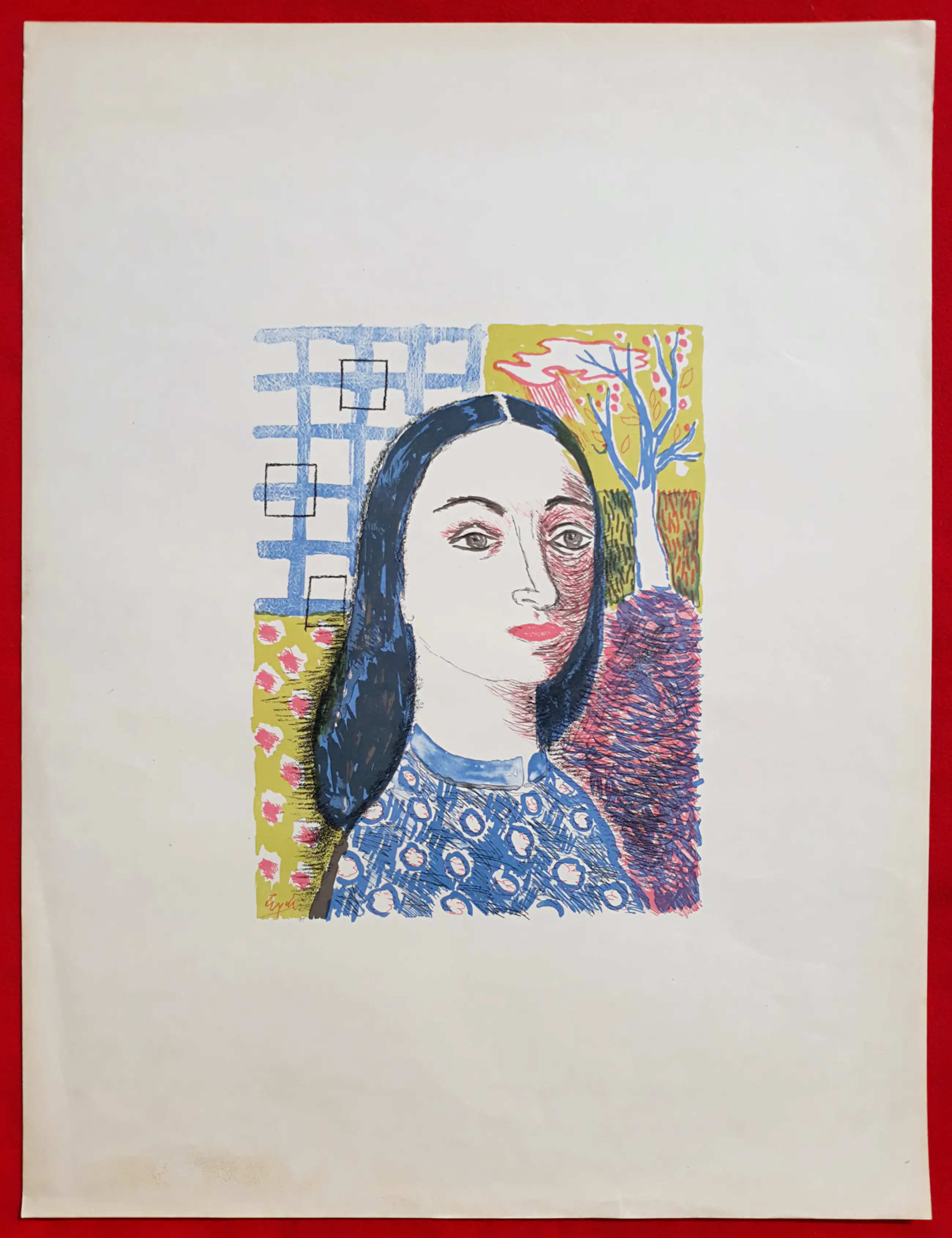 Mooie litho van Charles Eyck uit 1947, in de steen gesigneerd linksonder. In goede conditie; er zitten alleen wat vlekken in de marge helemaal linksonder, ver van het beeld verwijderd. Ingelijst met passe-partout is het werk uitstekend.