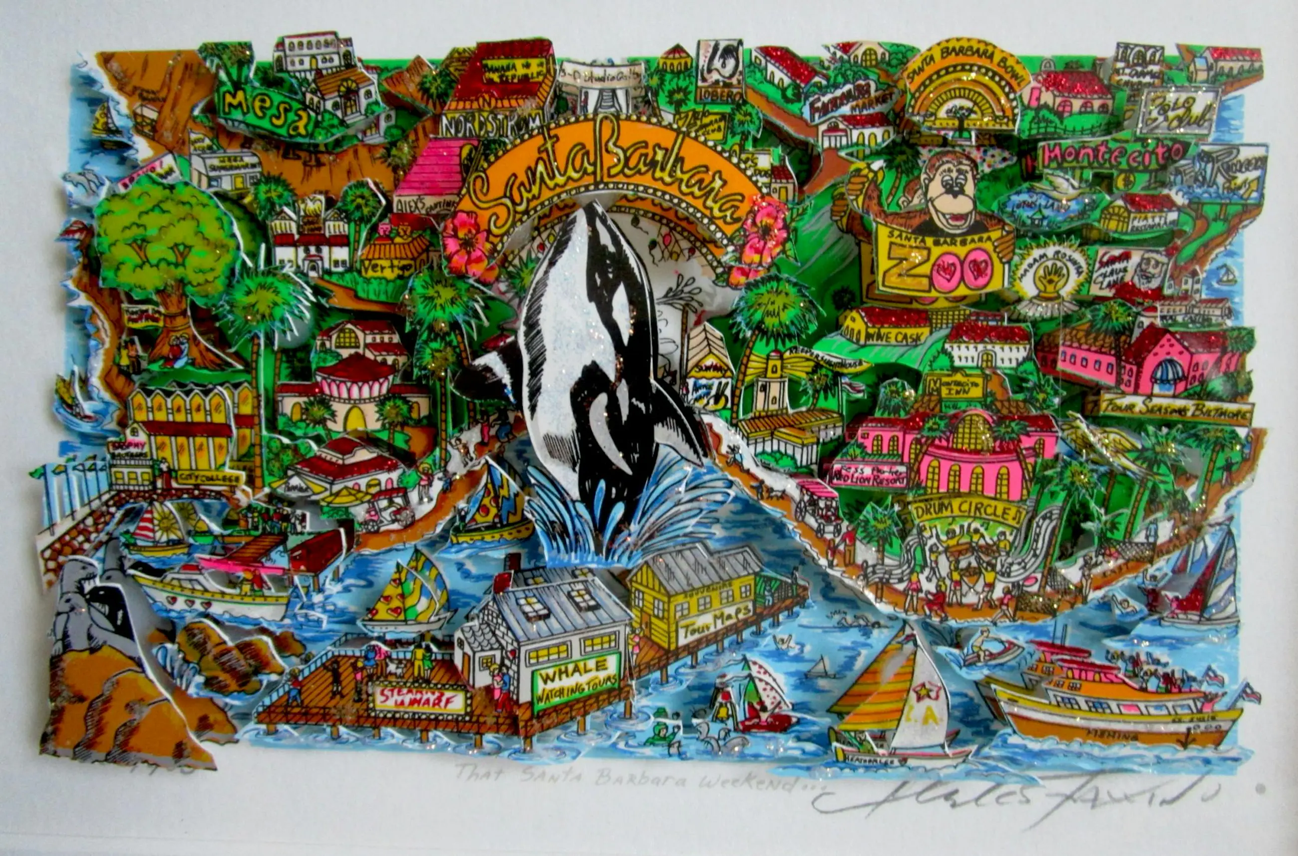 Charles Fazzino - Dat weekend in Santa Barbara in 3D...
