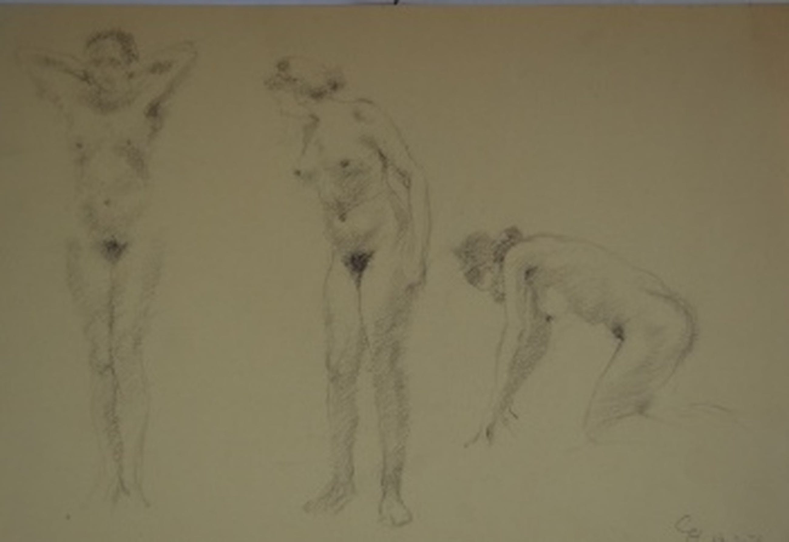 Naaktstudies van Charles Haak, gesigneerd r.o. en gedateerd 1936 - potlood op dik papier