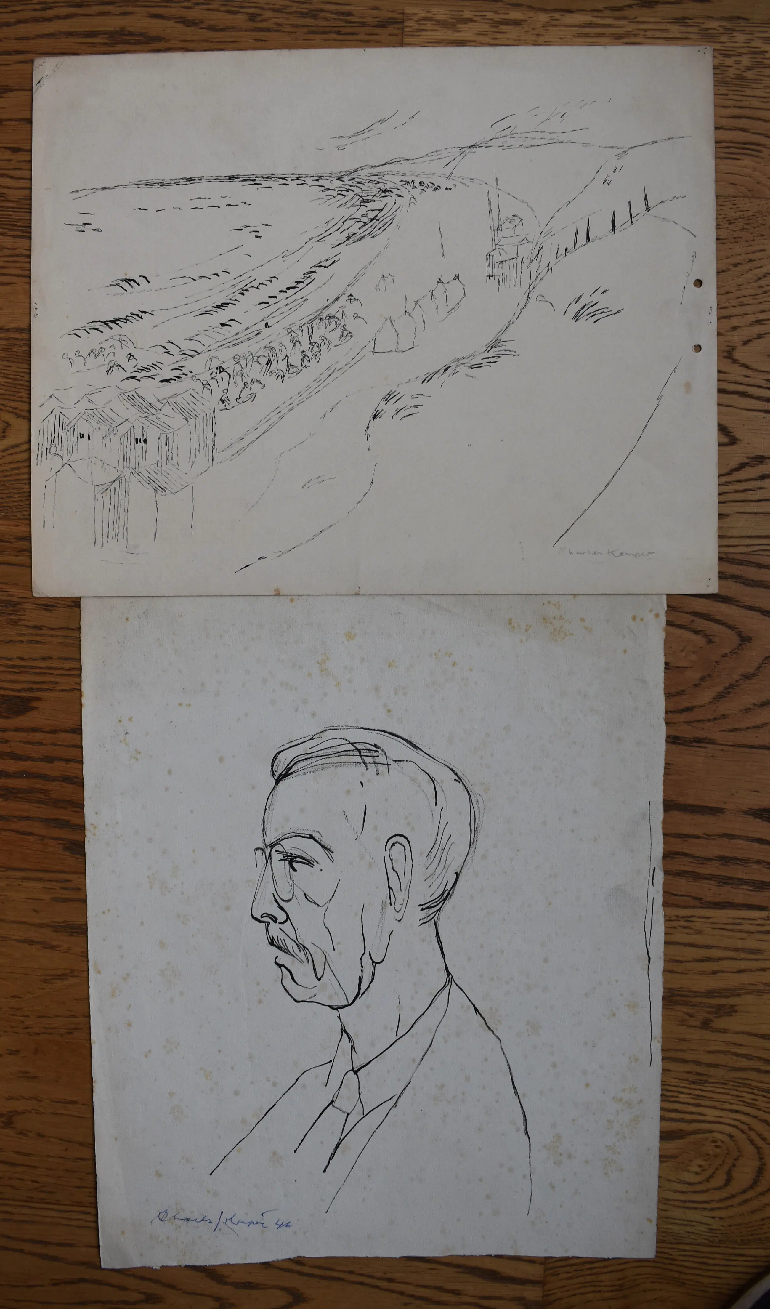 Charles Kemper was gedurende WO2 door het Duitse Regime als enige geauthoriseerd om van de toenmalige situatie in-en rondom Rotterdam tekeningen te maken. Fotograferen was verboden. Voor het Rotterdams Gemeente Archief zijn zijn tekeningen dan ook zeer geliefd en worden verzameld. Een tekening is gedateerd 1946. De ander is getekend op de achterzijde van een kalender plaat.