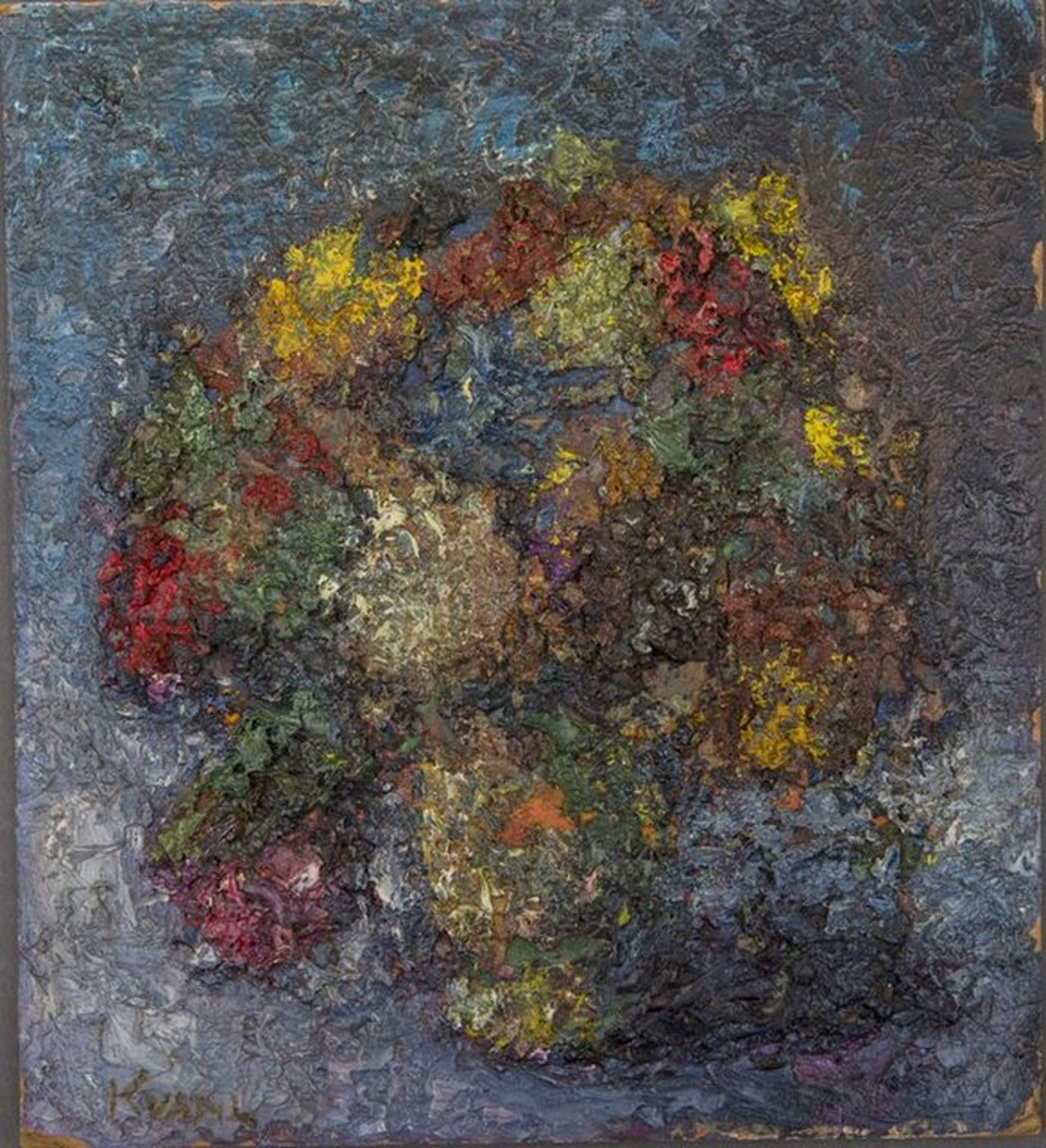 Charles Kvapil (1884-1957), stilleven met bloemenvaas, olieverf op schilderskarton,