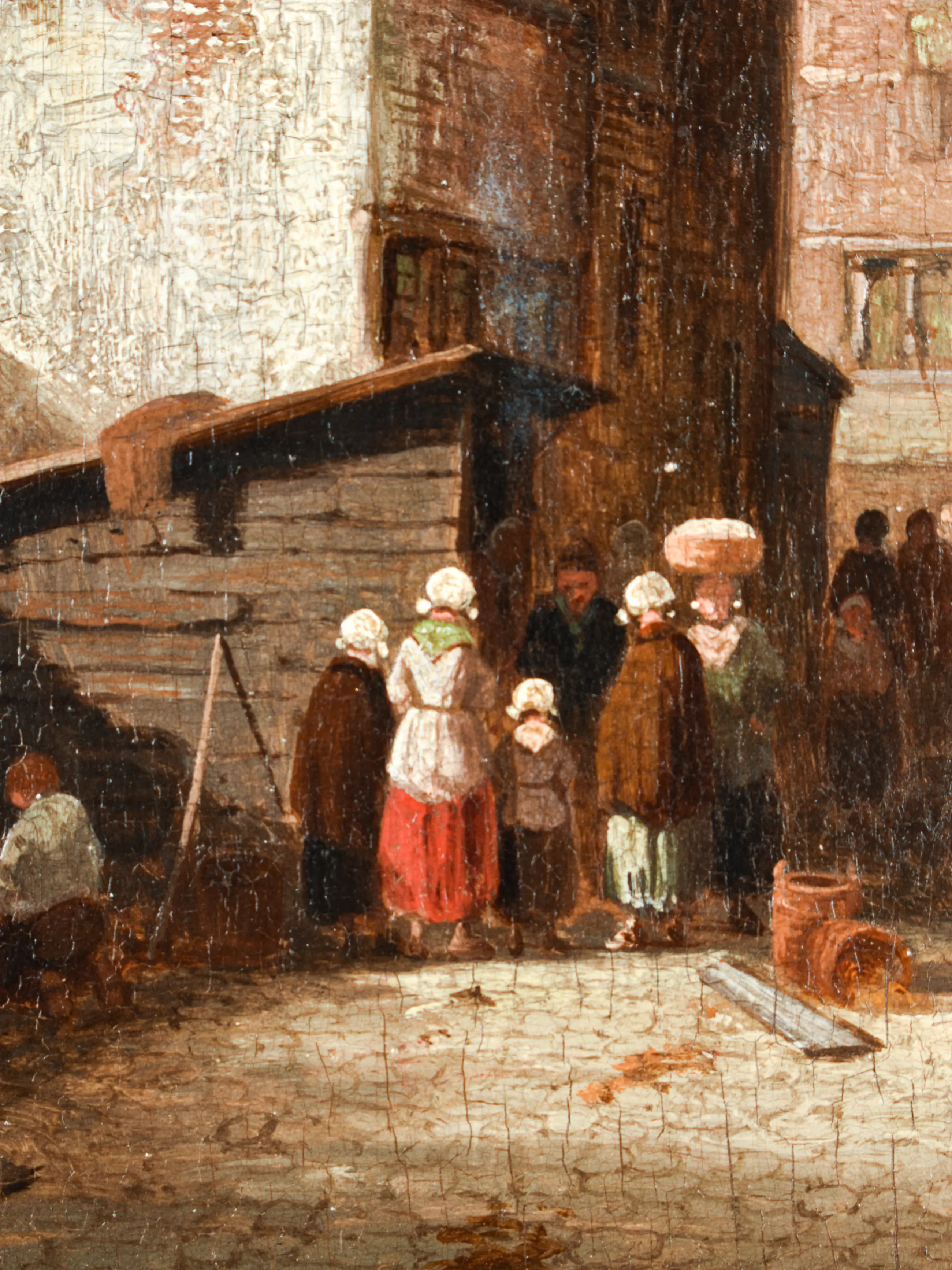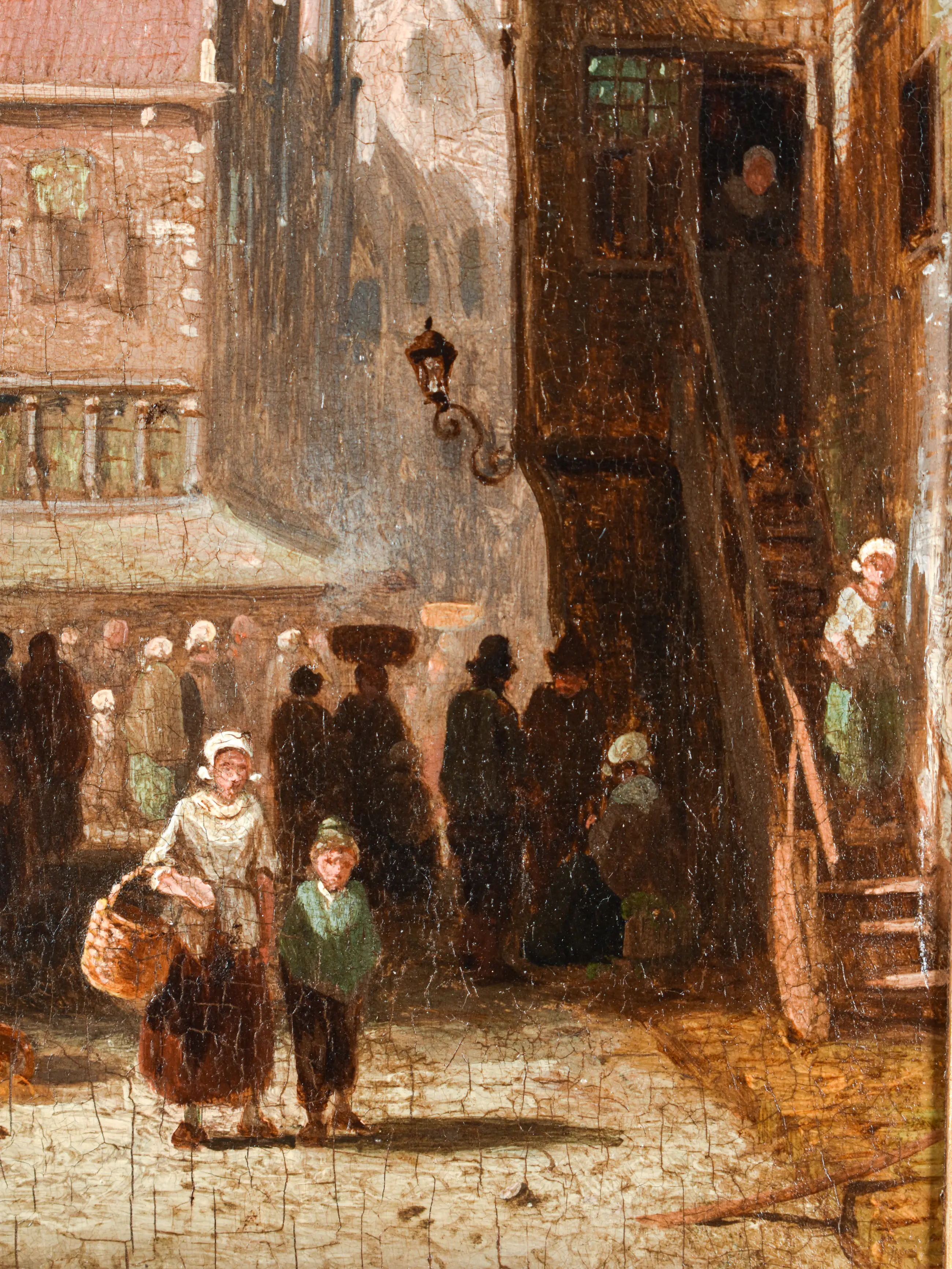 Het aangeboden werk is in een goede staat.Het schilderij heeft verspreid liggende craquelé die bijpassend is voor de leeftijd van het schilderij.
