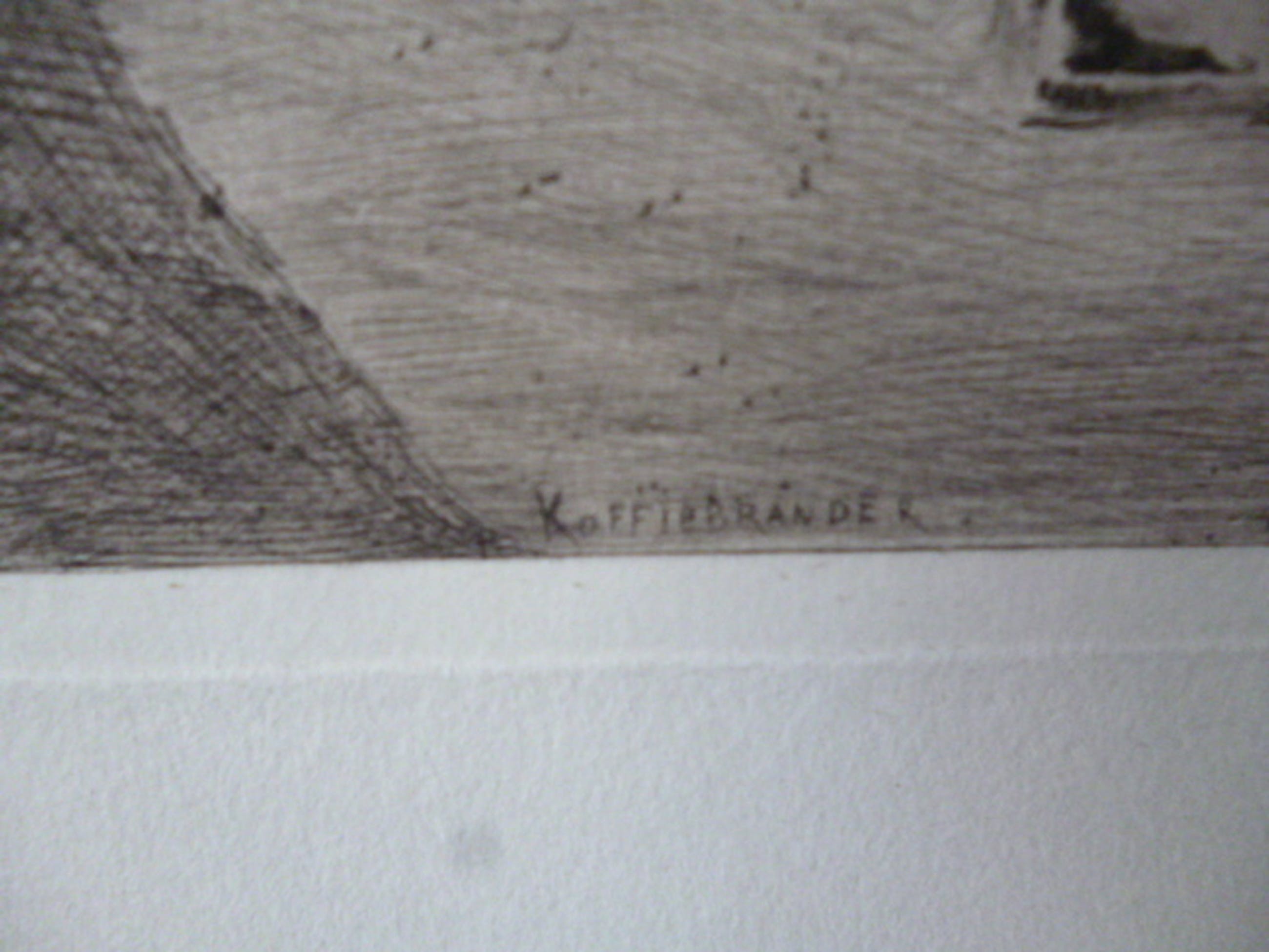 Ets in de plaat gesigneerd rechtsonder. Getiteld middenonder.