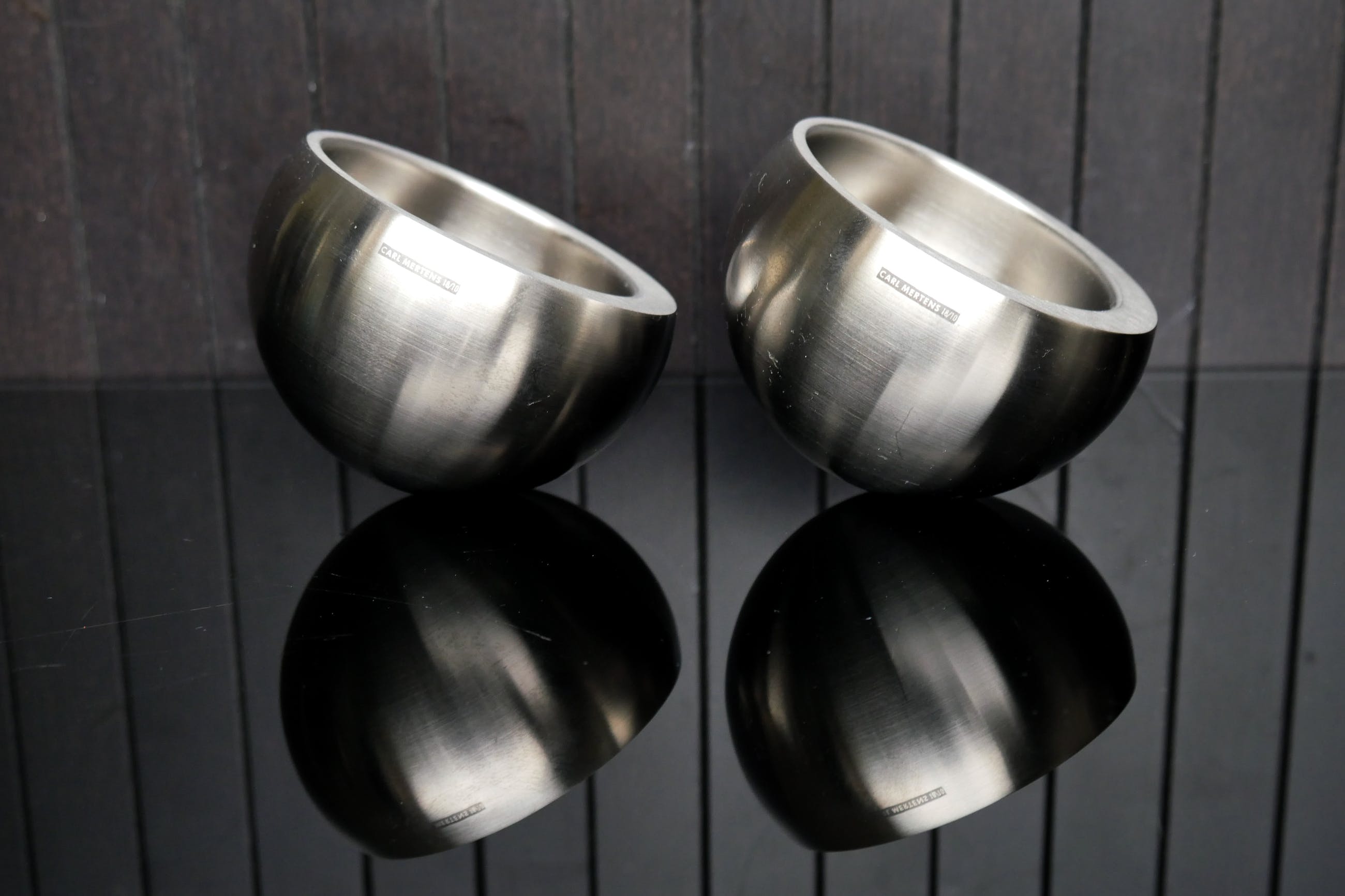 Deze bekers lenen zich voor meerdere doeleinden. Dubbelwandige holle vormen van roestvrij staal die scheef staan en recht staan als ze vol zijn. Ze zijn bedoeld voor het drinken van wijn, sake, espresso of thee, maar ook voor noten, olijven, kleine snoepjes of paperclips en elastiekjes. Saldo ontving verschillende prijzen.