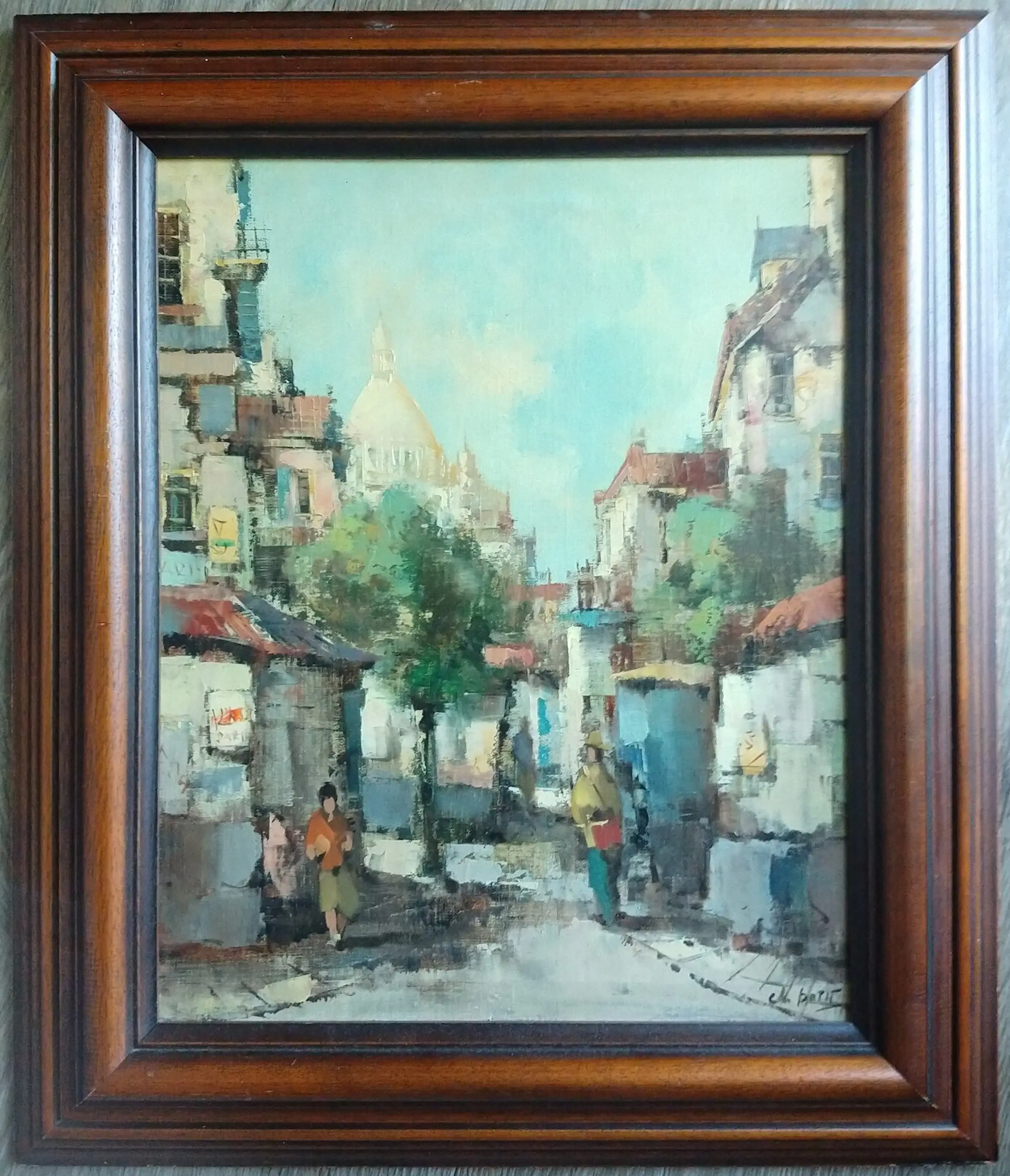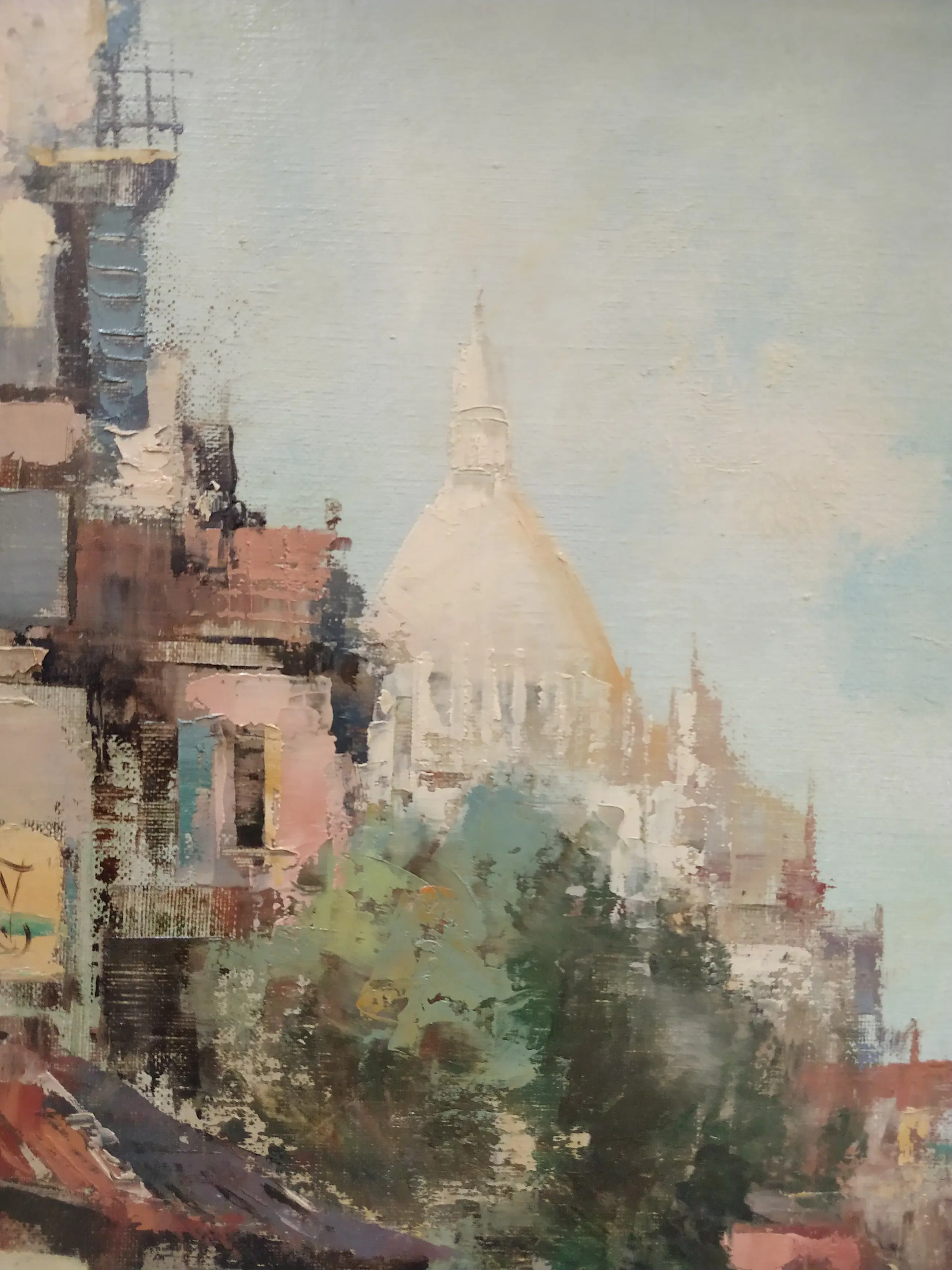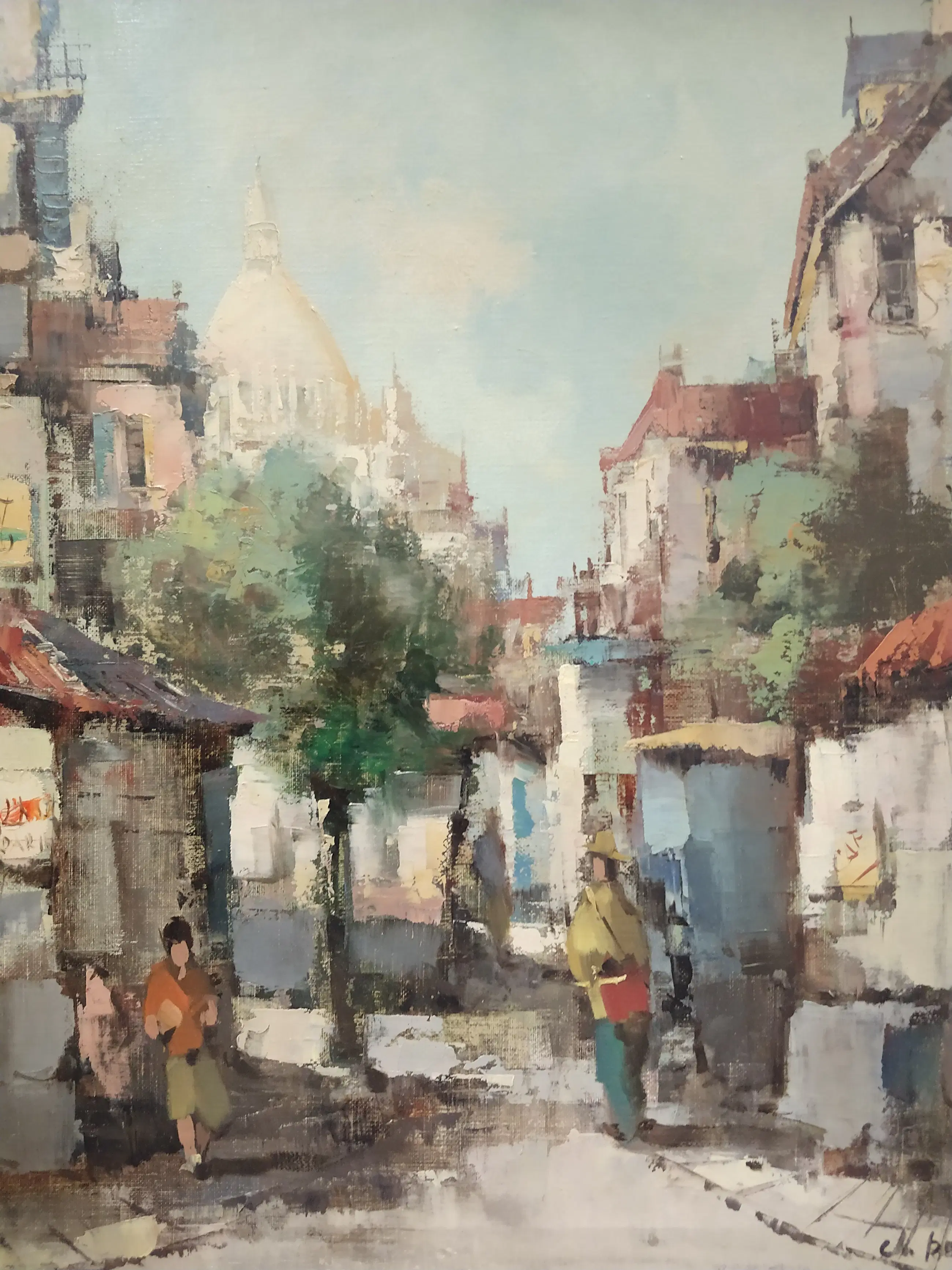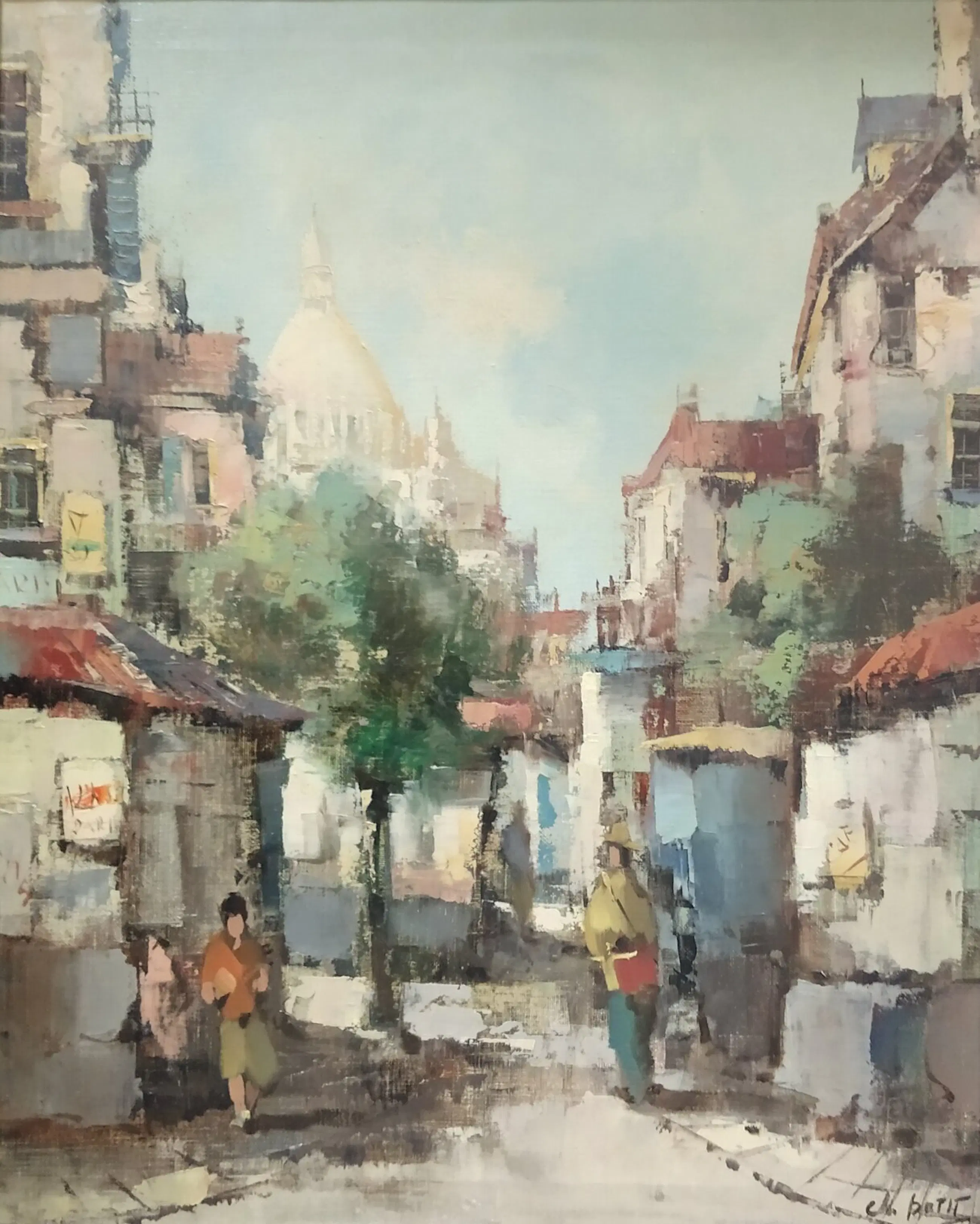 Adriaan Terhell (1863-1949) onder pseudoniem Charles Petit. Stadsgezicht Parijs met zicht op de Sacré-Cœur baseliek in Montmartre. Olieverf op doek. Gesigneerd. Het schilderij is in zeer goede staat. De lijst is in goede staat met onopvallende kleine gebruikssporen. Afmeting zonder lijst 50x40 cm. Inclusief lijst 58x48 cm.