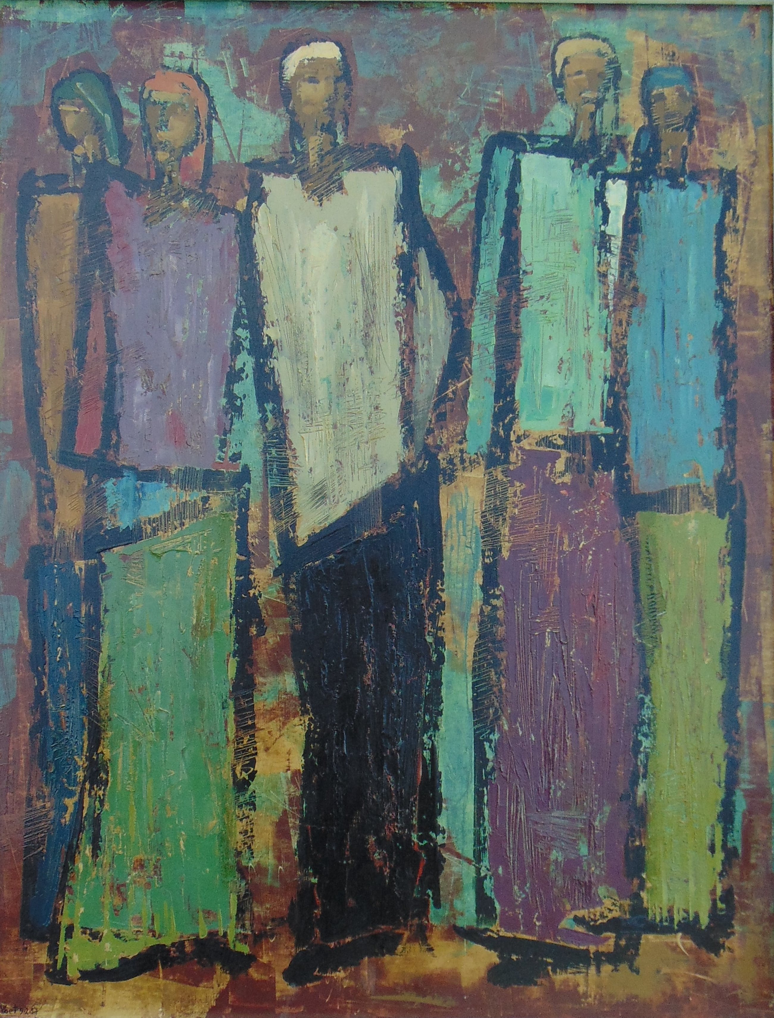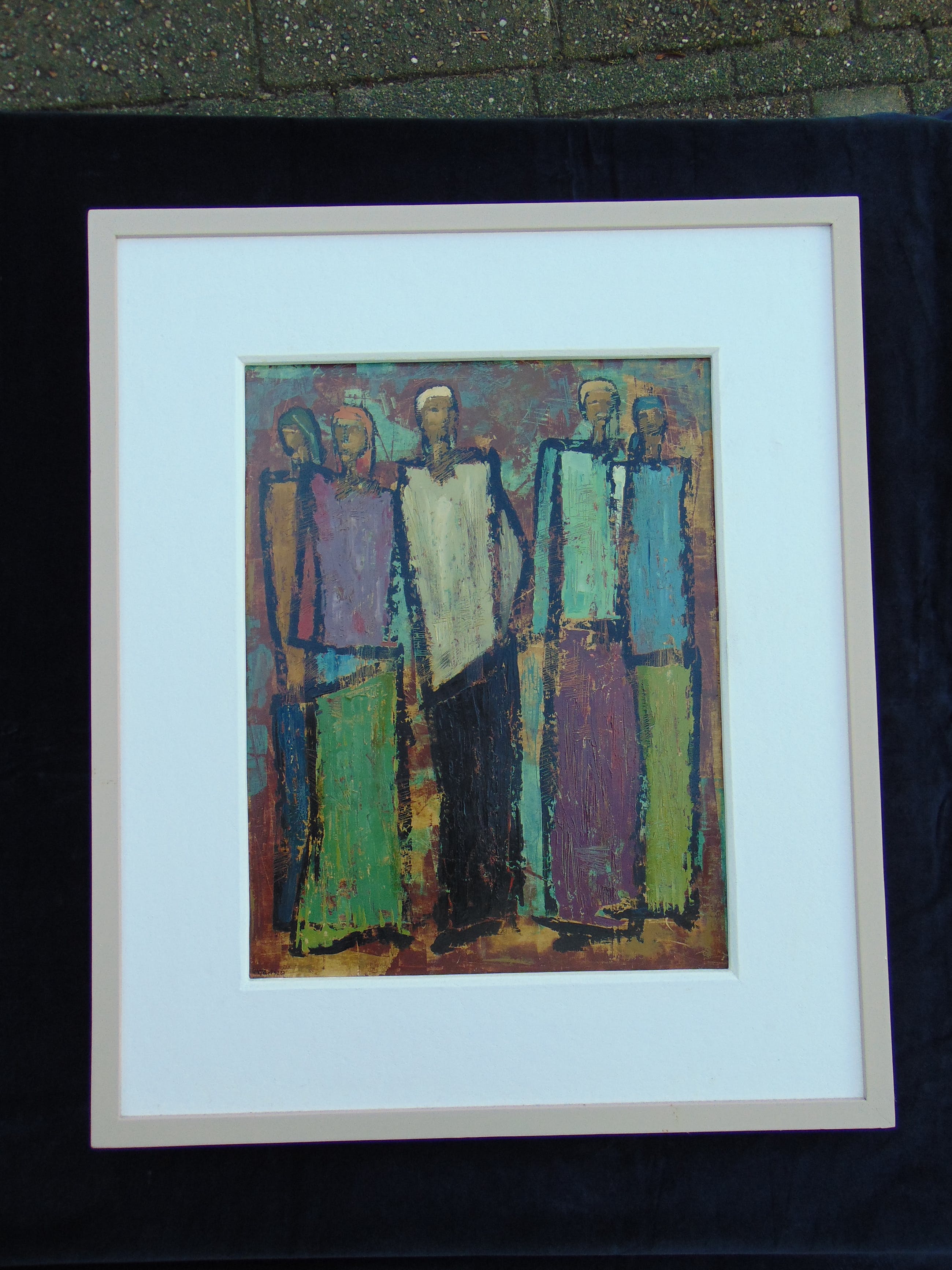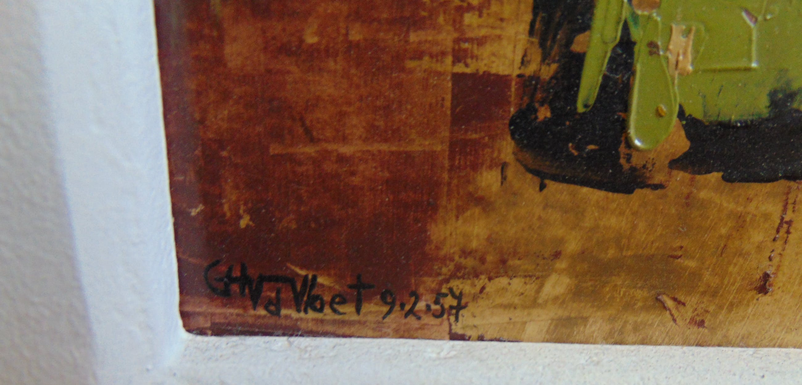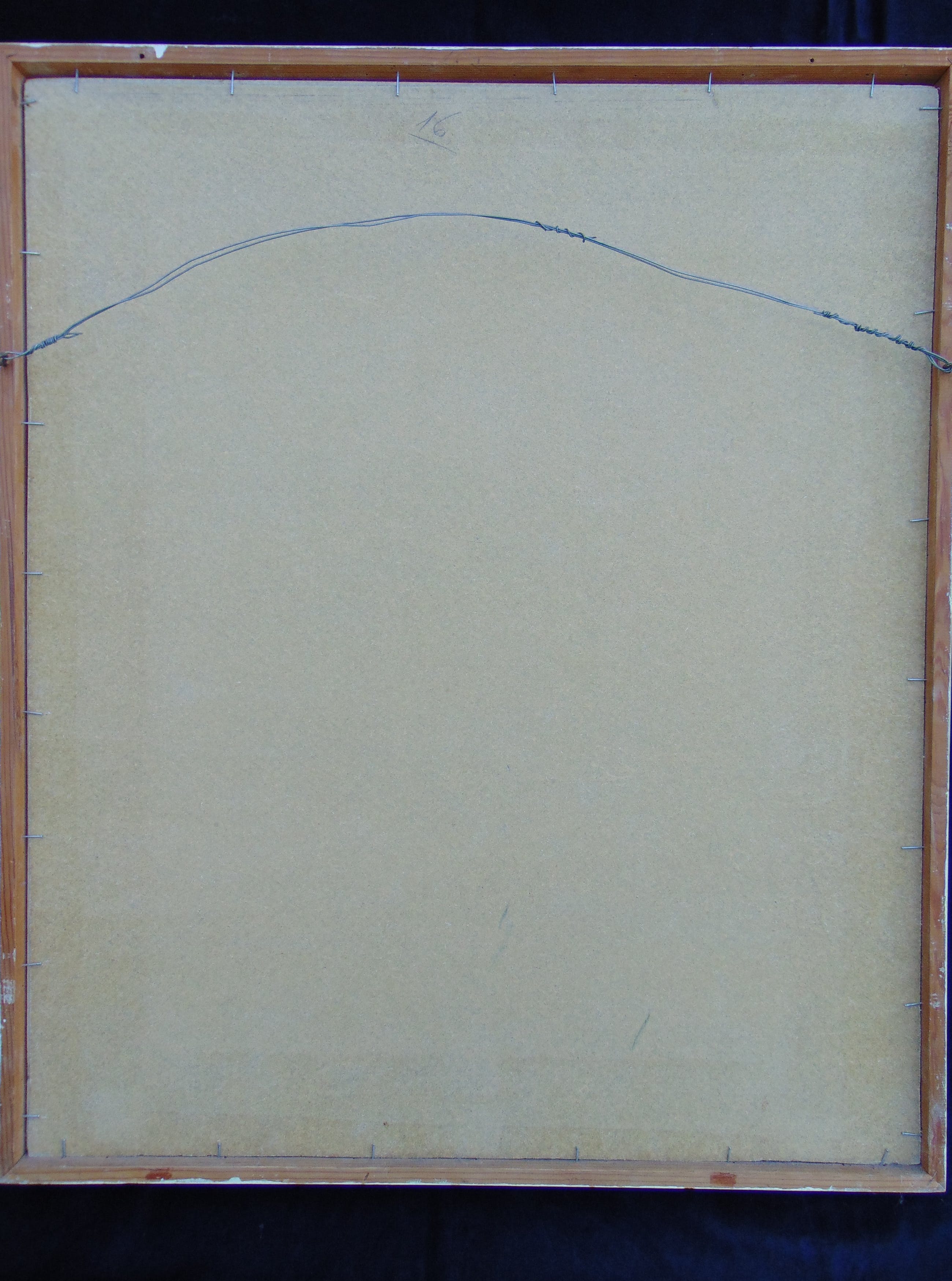 Dit werk is linksonder gesigneerd en gedateerd op 9-2-57. Het werk is ingelijst met passe-partout en in een houten lijst zonder glas.