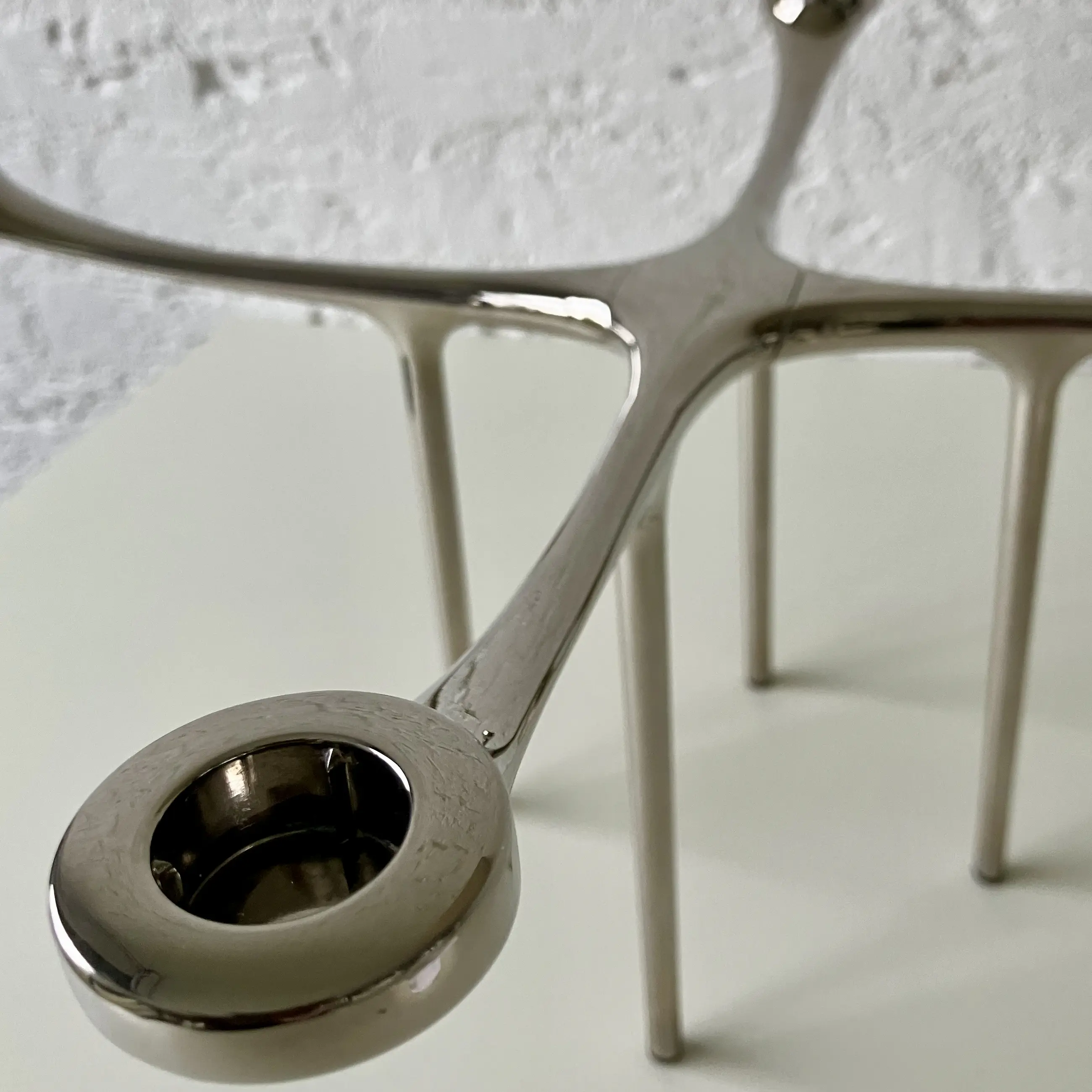 De iconische Candelabra is een bekroond ontwerp van Charles Wilson (Australië, 1968) uit 2007 voor het Deense designmerk Menu. Deze verzilverde, vierarmige kandelaar bestaat uit twee afzonderlijke delen die kruislings door middel van magneten bijeen worden gehouden.