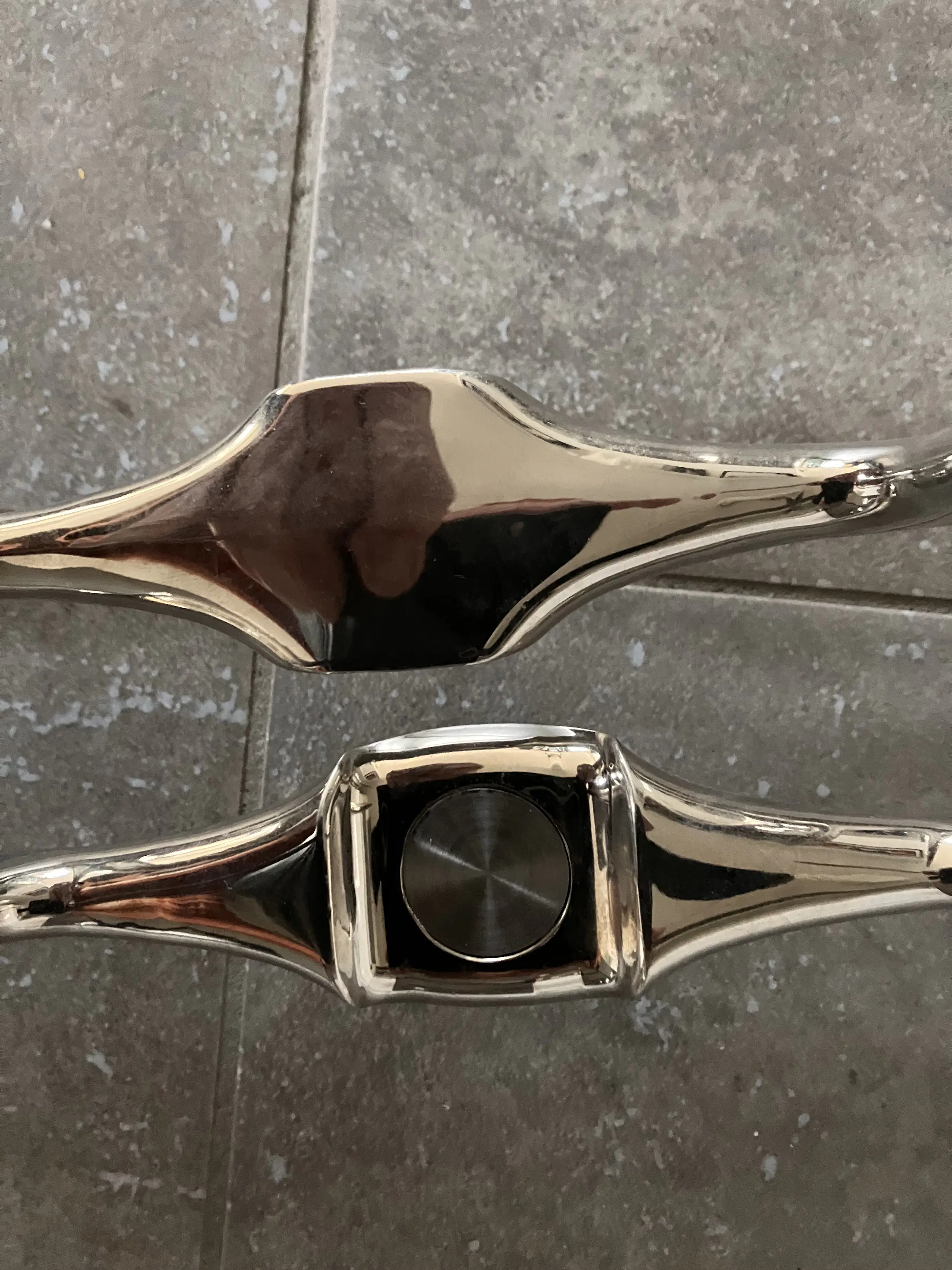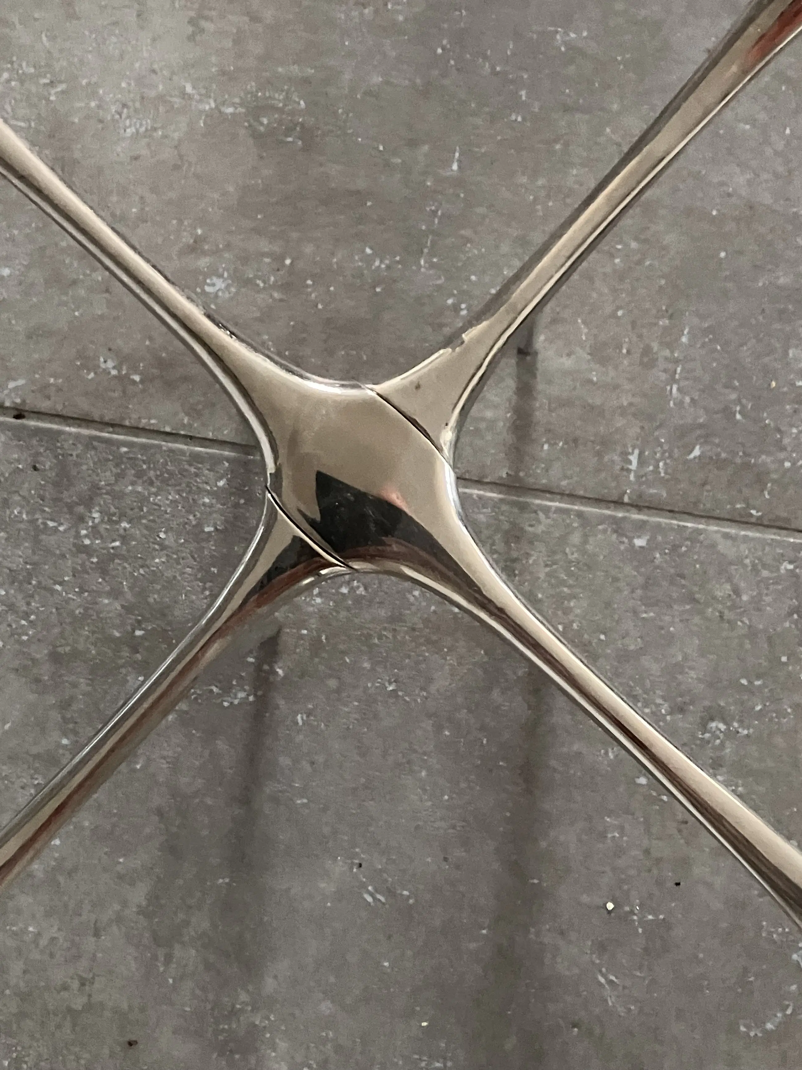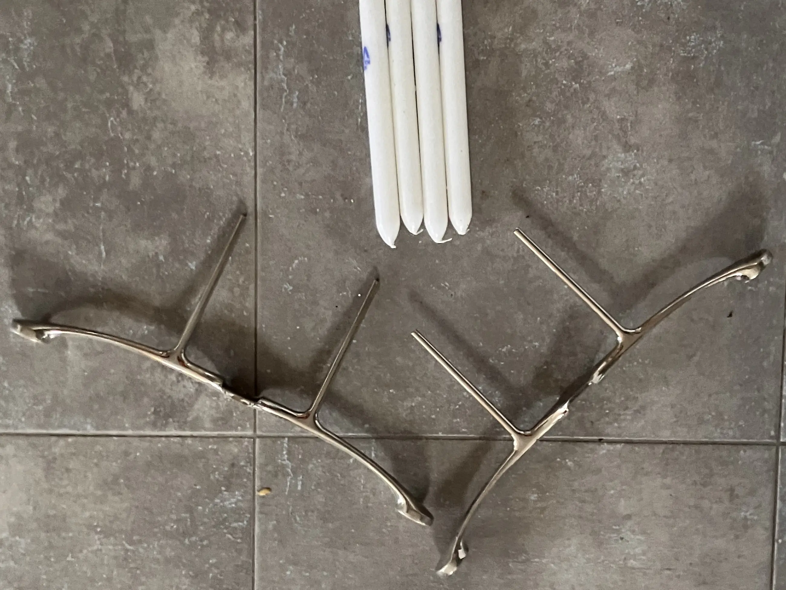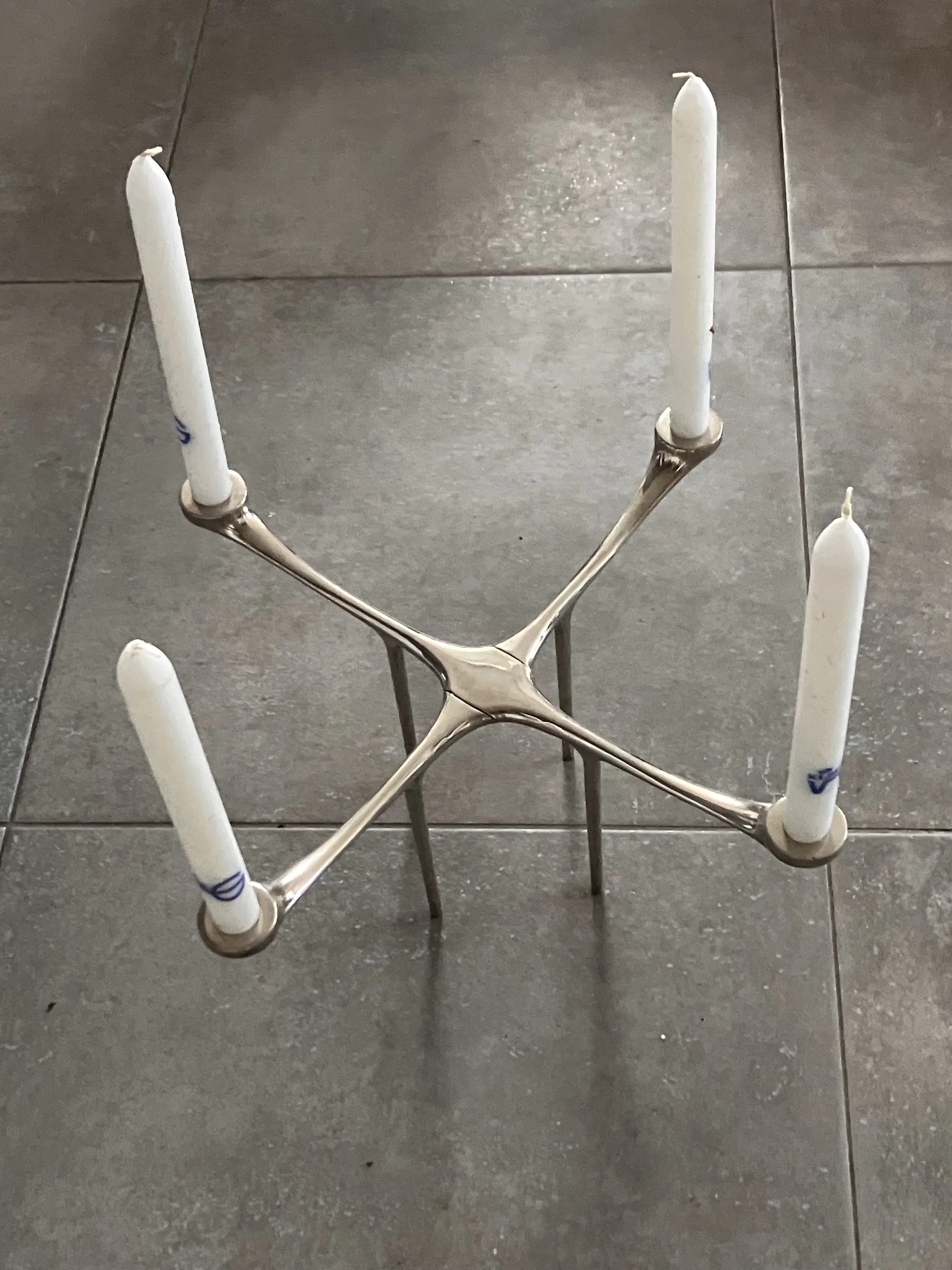 Elegante RVS modulaire kandelaar van ontwerper Charles Wilson uitgevoerd door het Deense Menu De twee armen klikken in elkaar door middel van sterke magneten