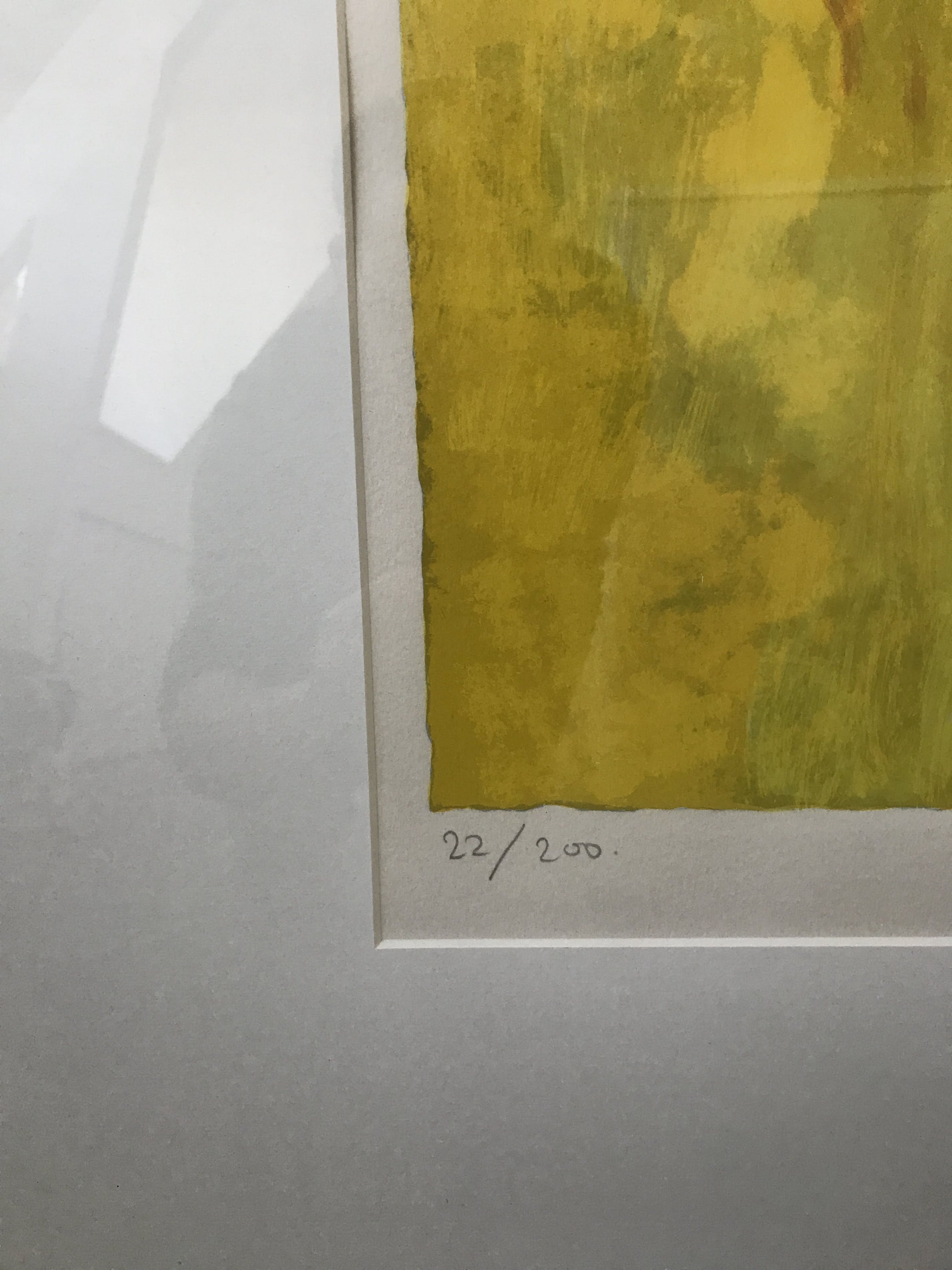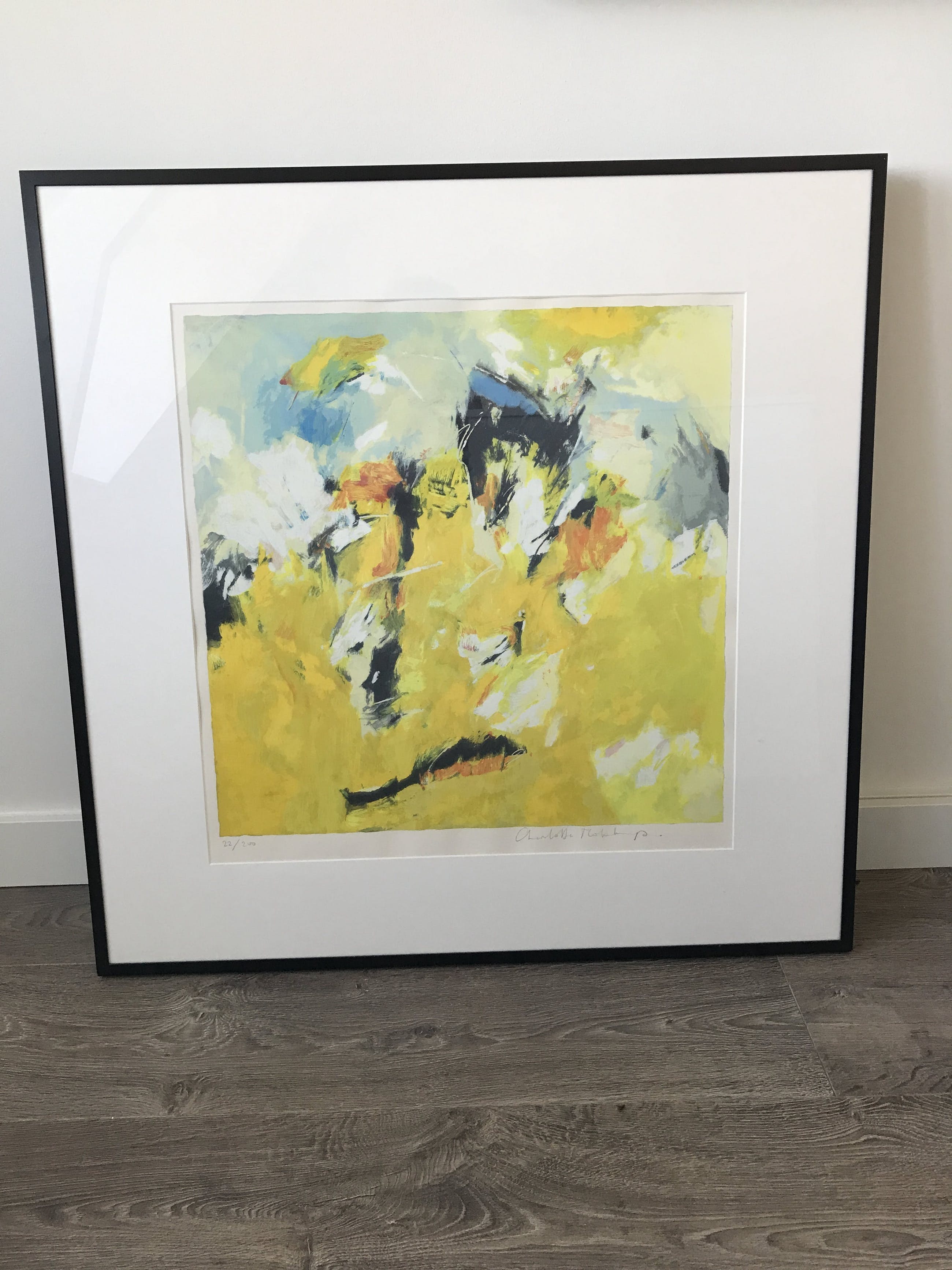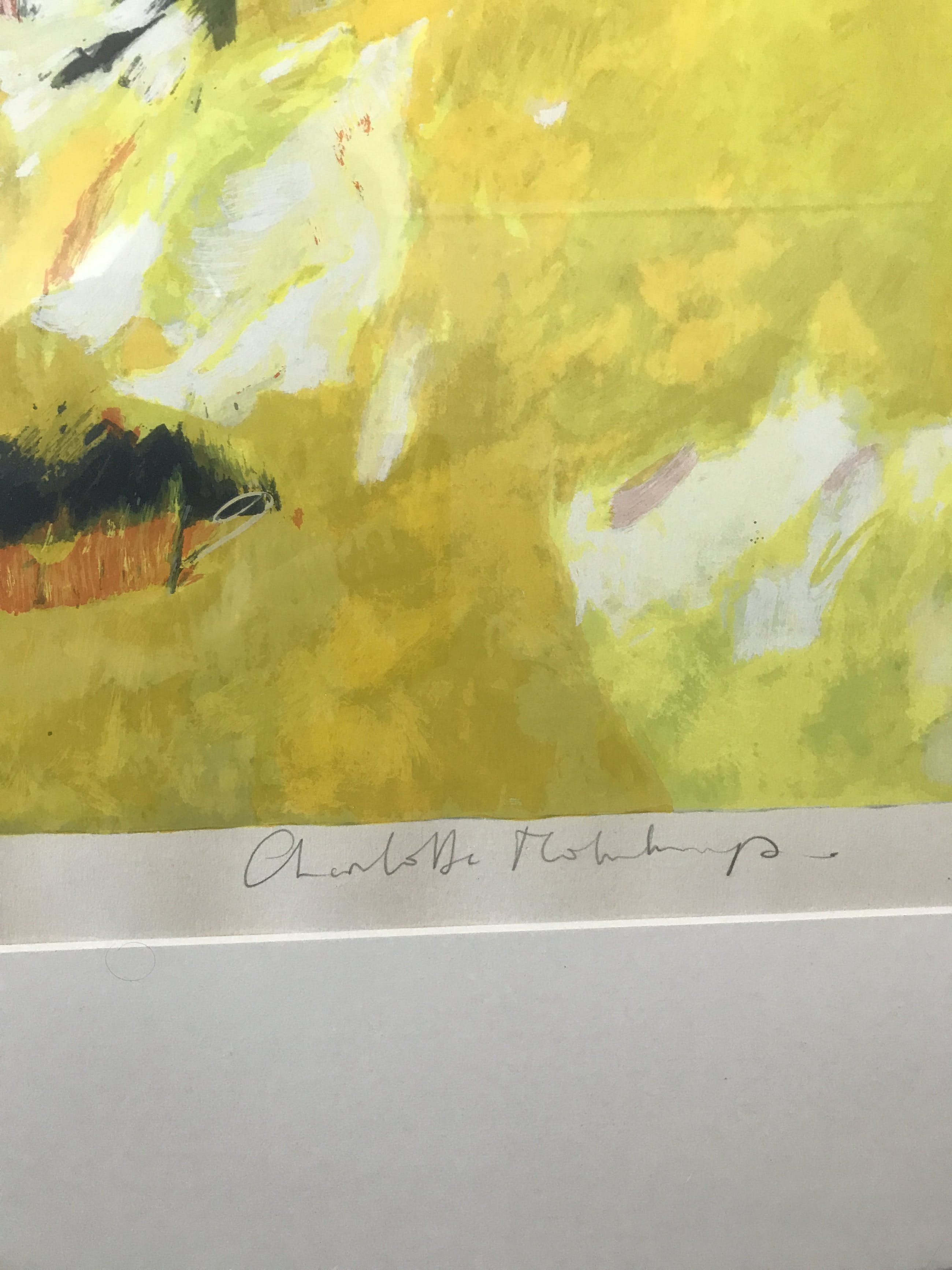 Prachtige meerkleurig abstracte zeefdruk door Charlotte Molenkamp in proefdruk, op volledig blad, onafgesneden. Gesigneerd en gedateerd in potlood rechtsonder: ‘Charlotte Molenkamp ‘92’; linksonder in potlood: 22/200