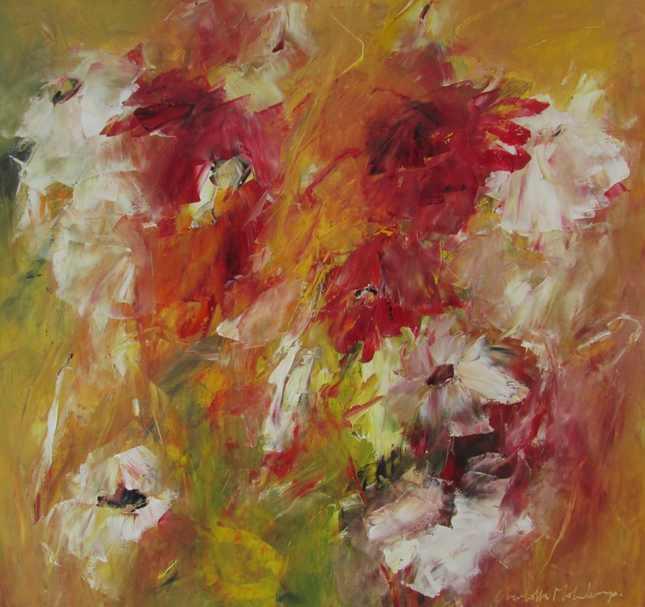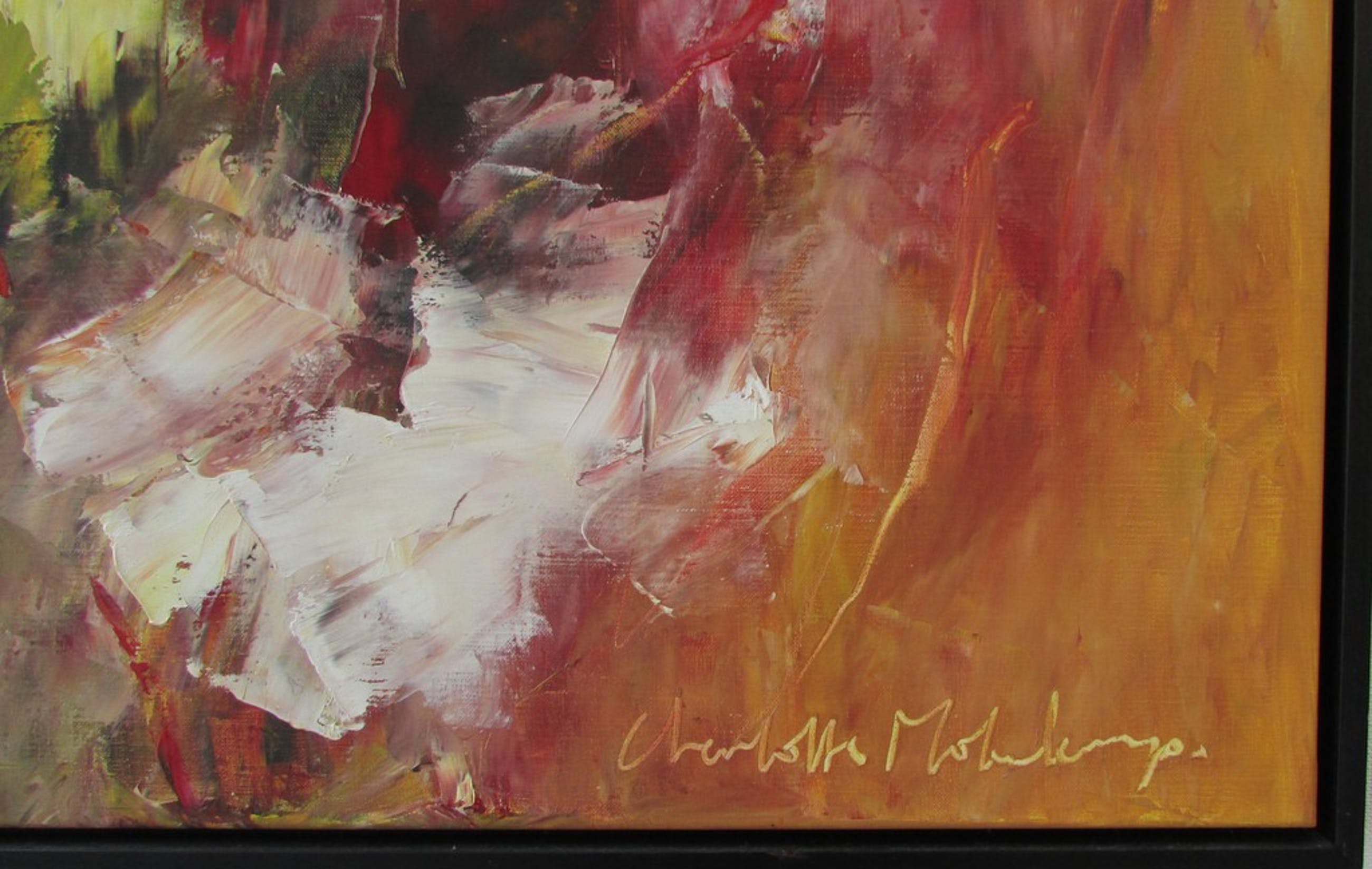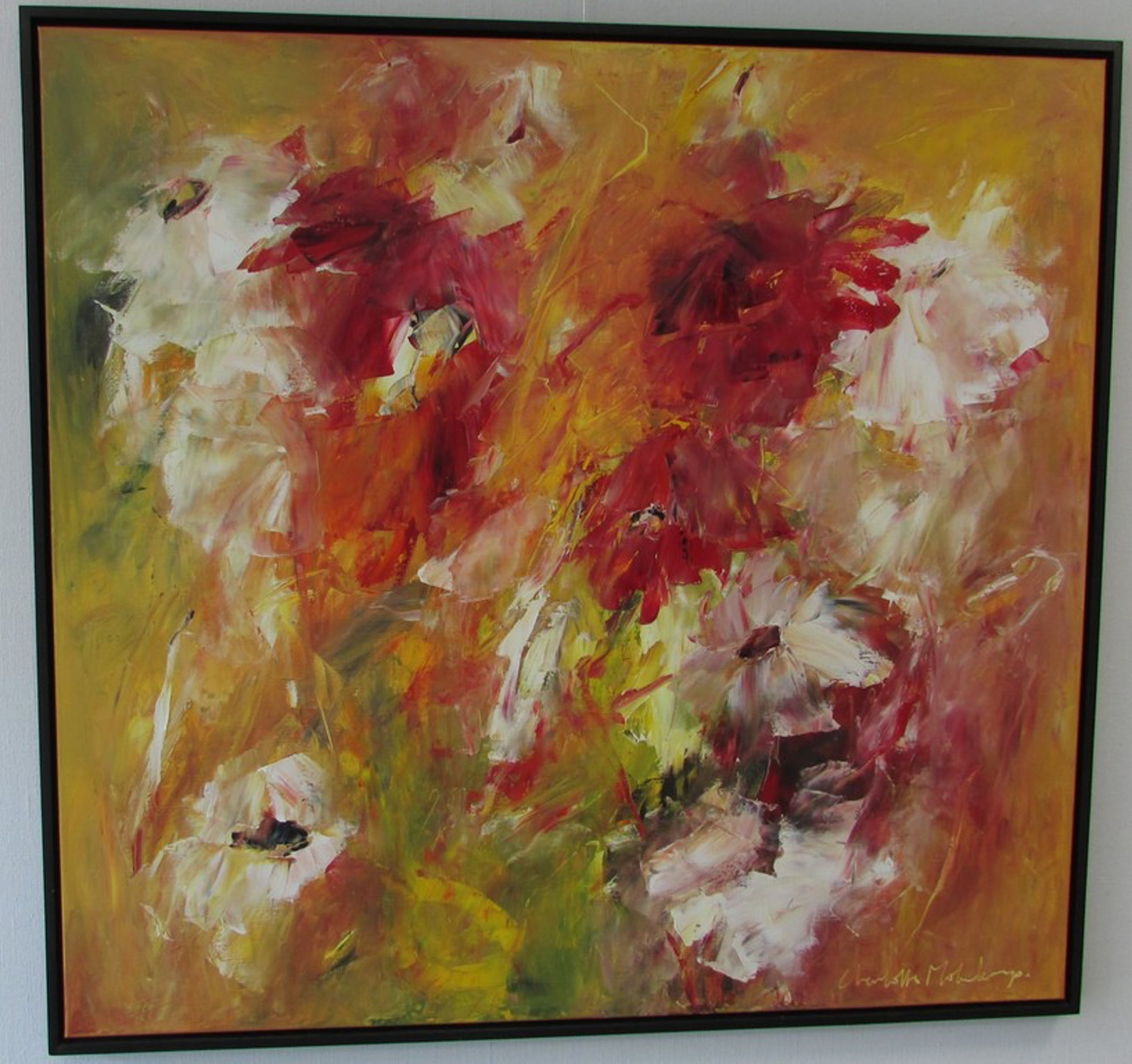 Olieverf schilderij, doek formaat 140 x 150 cm. Met zwarte baklijst 145 x 155 cm. Jaar: 2009