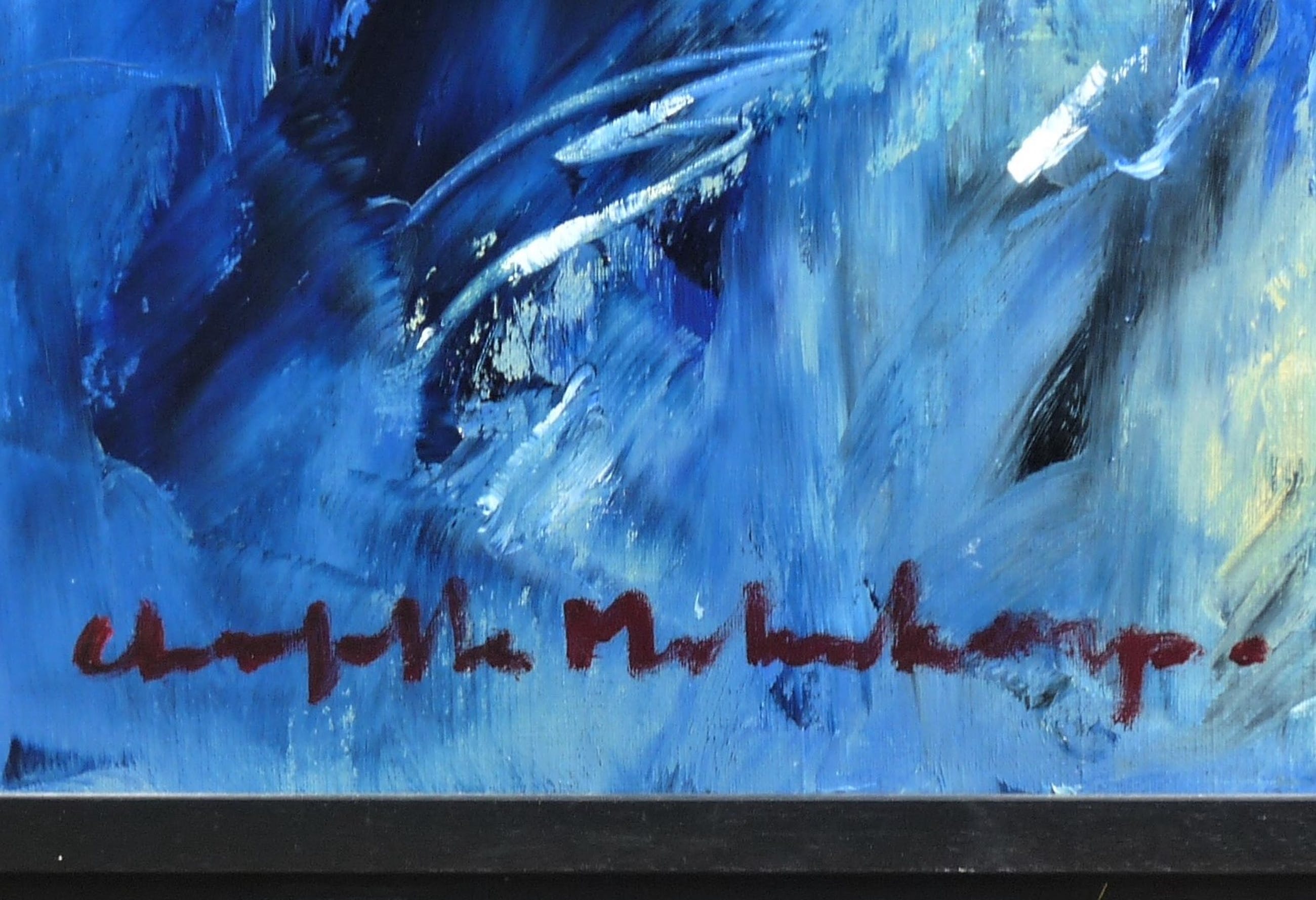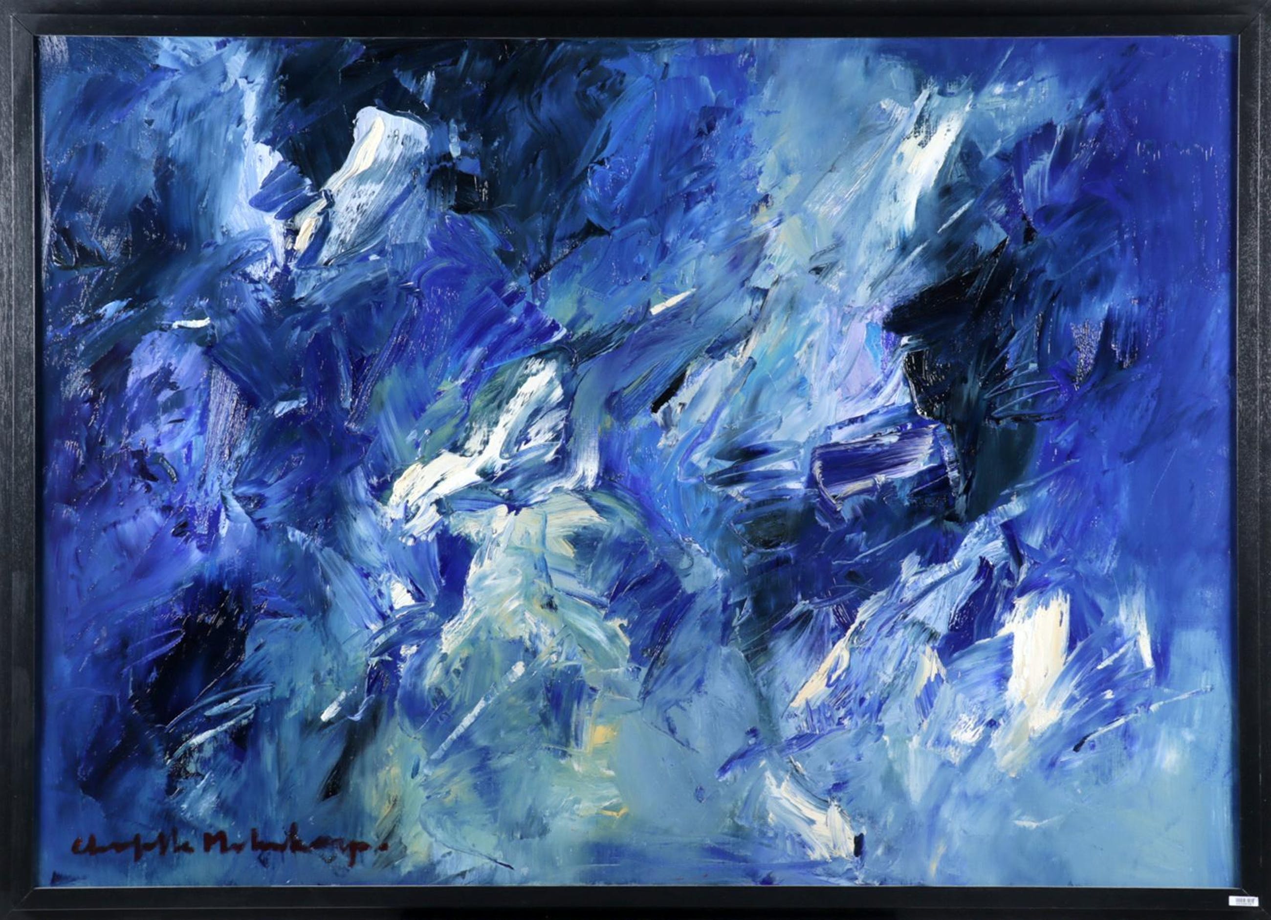 * Groot expressief werk in vele blauwtinten van de bekende Nederlandse kunstenares Charlotte Molenkamp. * Schilderij is linksonder gesigneerd. * Beeldmaat is 97 x 137 cm. Maten doek 100 x 140 cm. Maten lijst 107 x 147 cm. * Werk komt uit de voormalige collectie van Kamer van Koophandel. Authenticiteit en herkomst wordt volledig gegarandeerd. *Volgrechtvergoeding is van toepassing a 4% (wettelijk verplicht) , berekend over de gehele verkoopprijs (incl. veilingkosten). Komt dus boven op de verkoopprijs incl. veilingkosten.