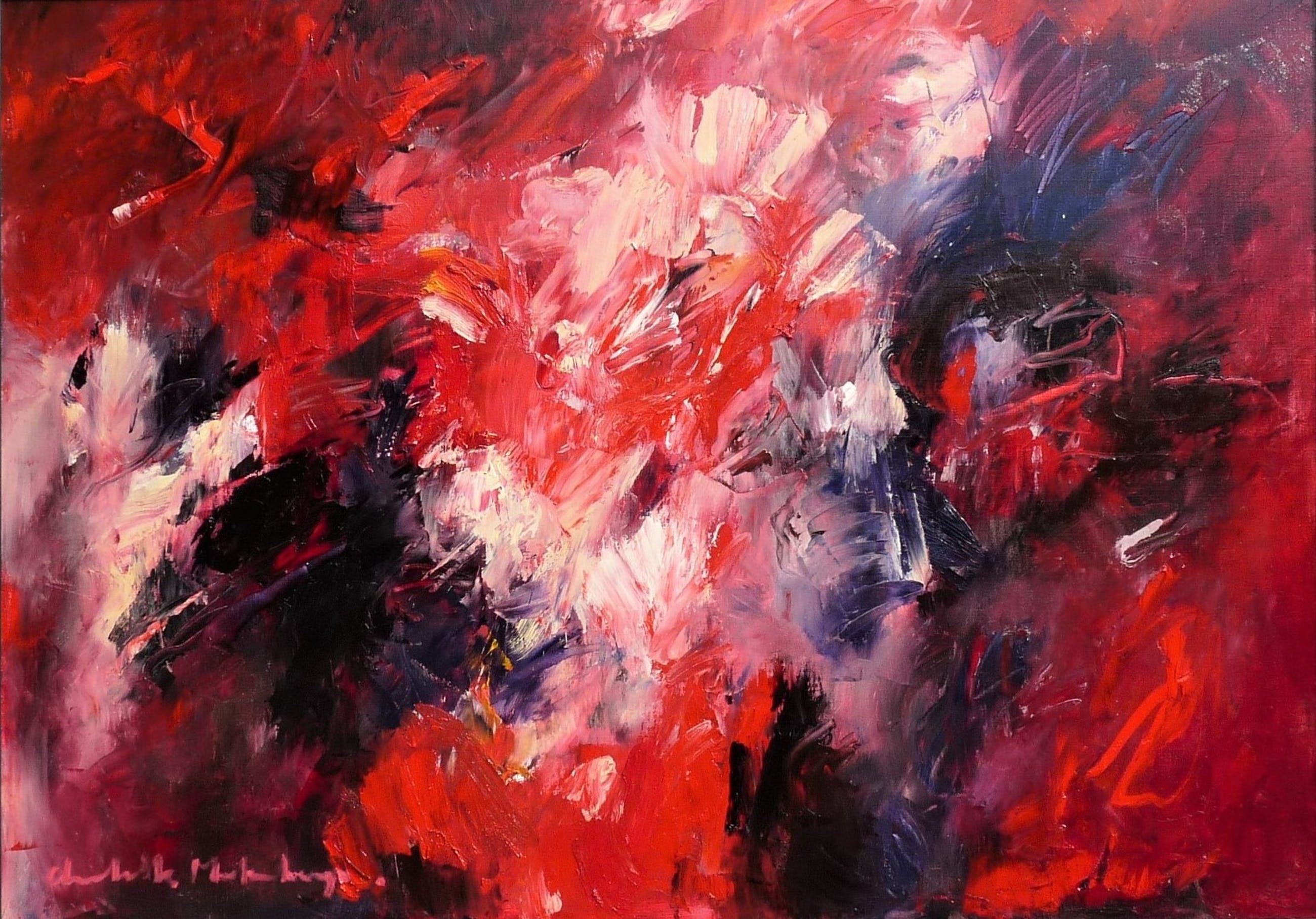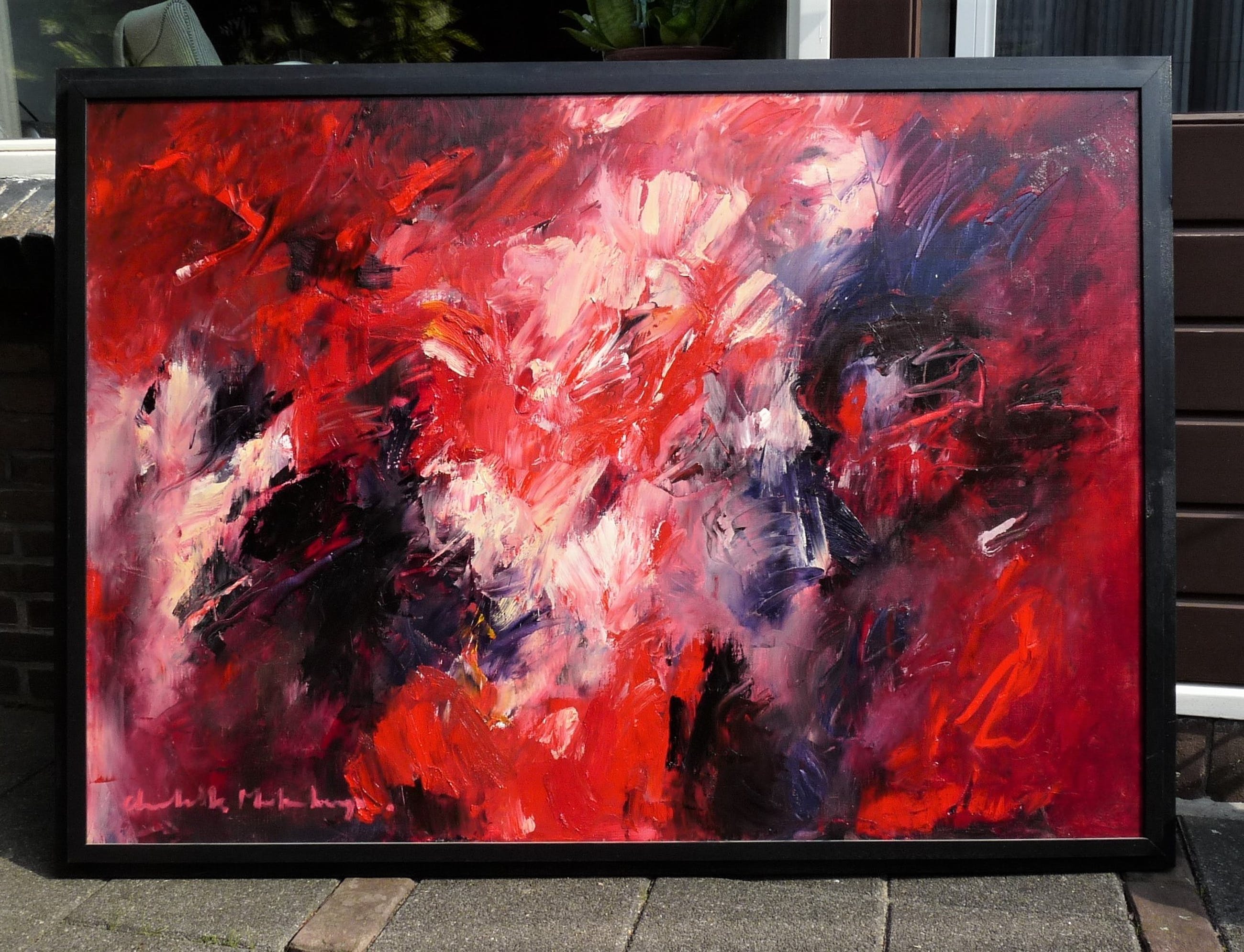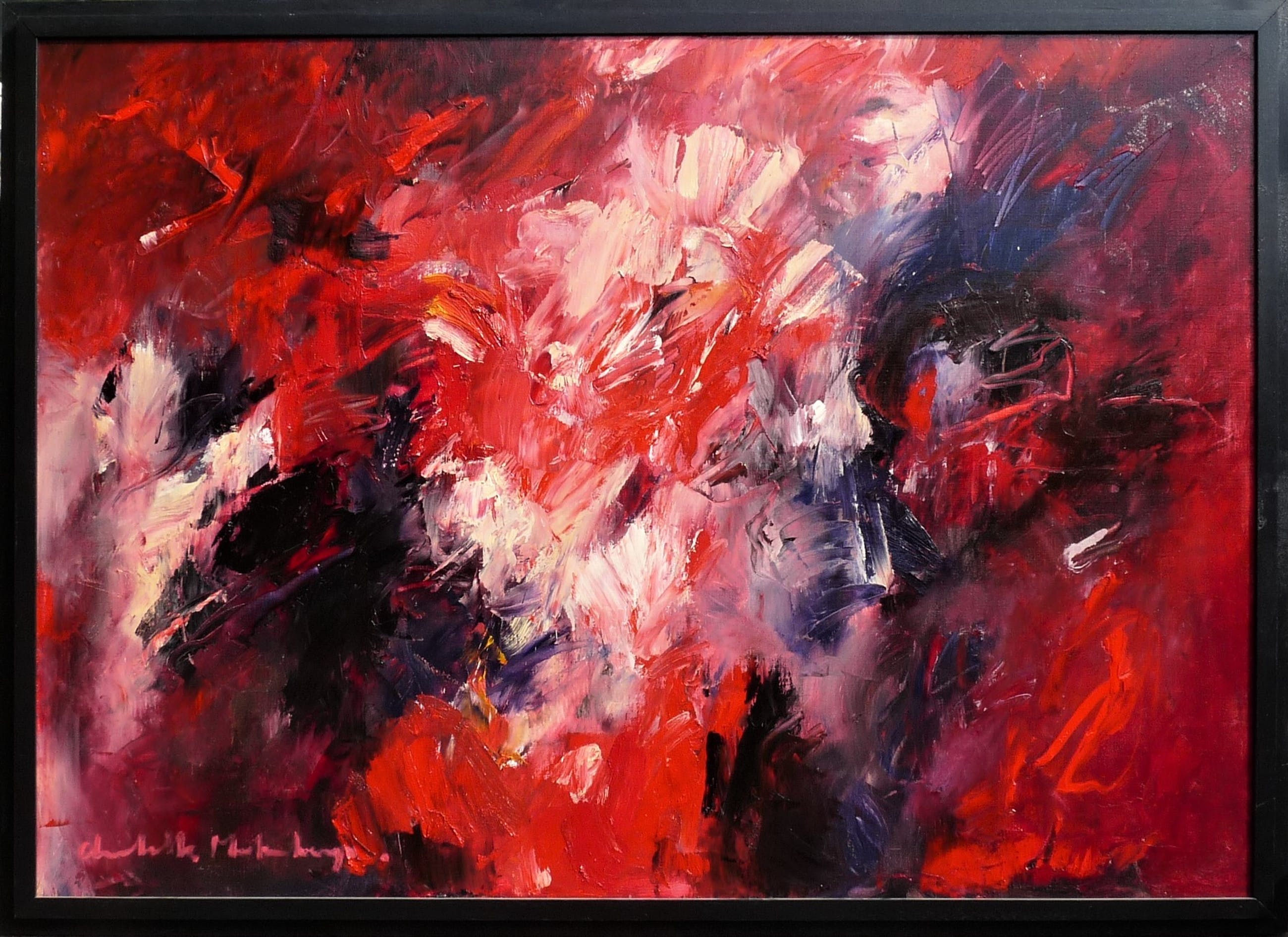* Groot expressief werk in vele roodtinten van de bekende Nederlandse kunstenares Charlotte Molenkamp. * Schilderij is linksonder gesigneerd. * Beeldmaat is 97 x 137 cm. Maten doek 100 x 140 cm. Maten lijst 107 x 147 cm. * Werk komt uit de voormalige collectie van Kamer van Koophandel. Authenticiteit en herkomst wordt volledig gegarandeerd. *Volgrechtvergoeding is van toepassing a 4% (wettelijk verplicht) , berekend over de gehele verkoopprijs (incl. veilingkosten). Komt dus boven op de verkoopprijs incl. veilingkosten.