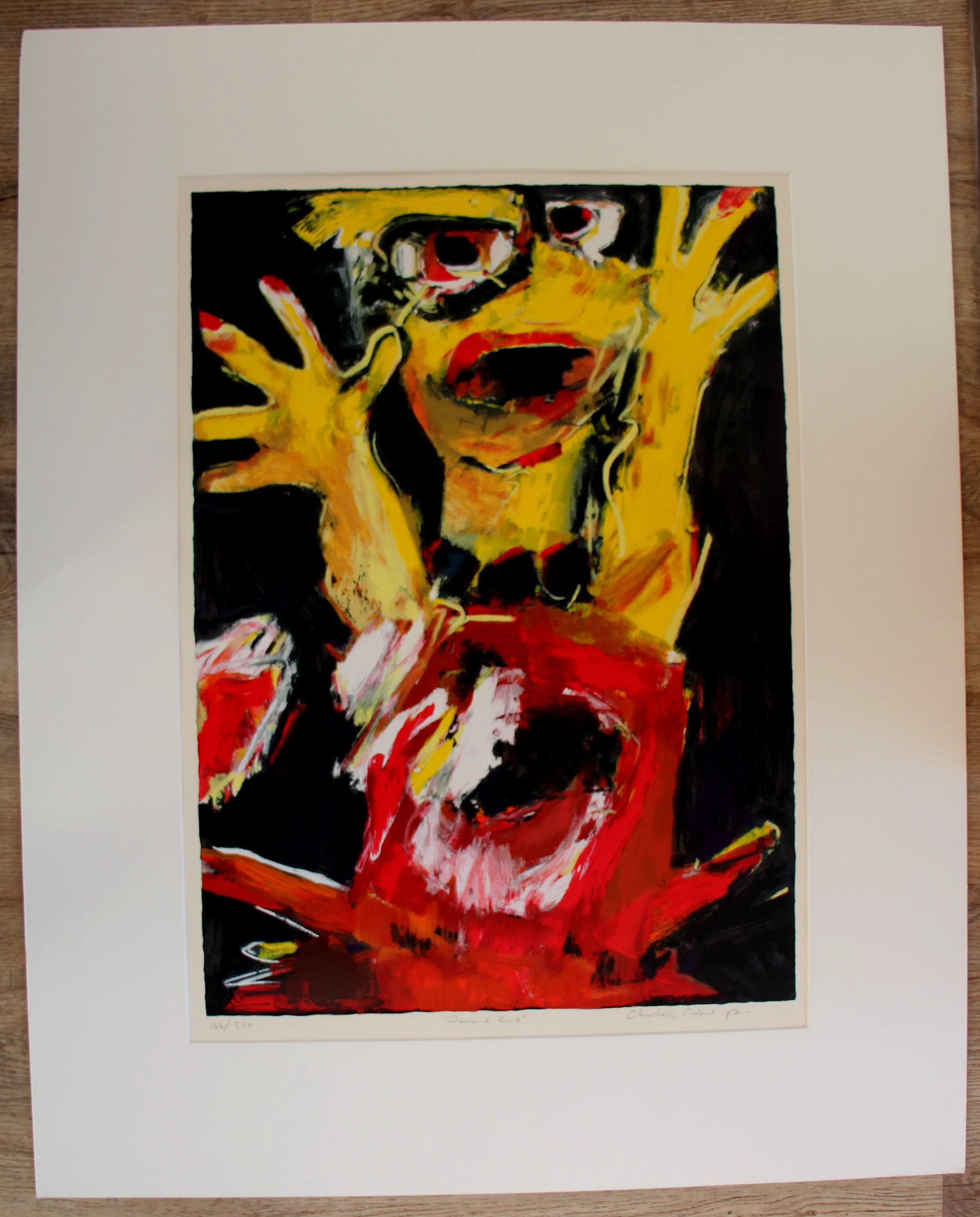 Kleurrijke zeefdruk van Charlotte Molenkamp. Titel: "Dansend kind". Nummer: 166/250. Afmetingen incl passe-partout: H100 x b80cm. Afmetingen voorstelling: H69 x b49.5cm. Het werk is rechts onder gesigneerd door de kunstenares. De authenticiteit van het aangeboden werk wordt volledig gegarandeerd. Een certificaat van echtheid kan, op aanvraag, worden gemaild.