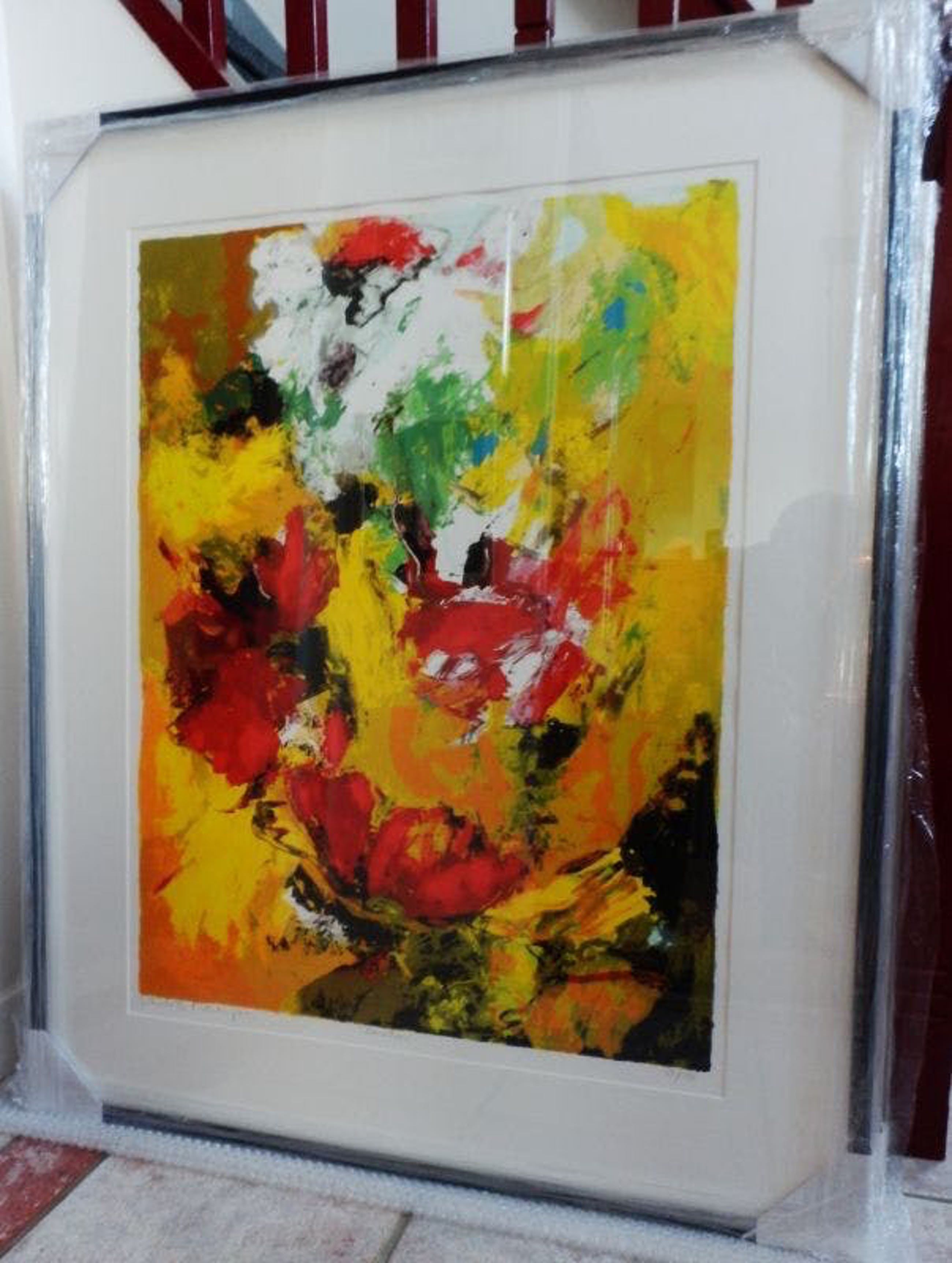 Prachtig ingelijste kleurenzeefdruk van Charlotte Molenkamp. Afmeting zwart houten lijst 108x88 cm in zeer goede staat. Handgesigneerd en genummerd oplage 150ex.
