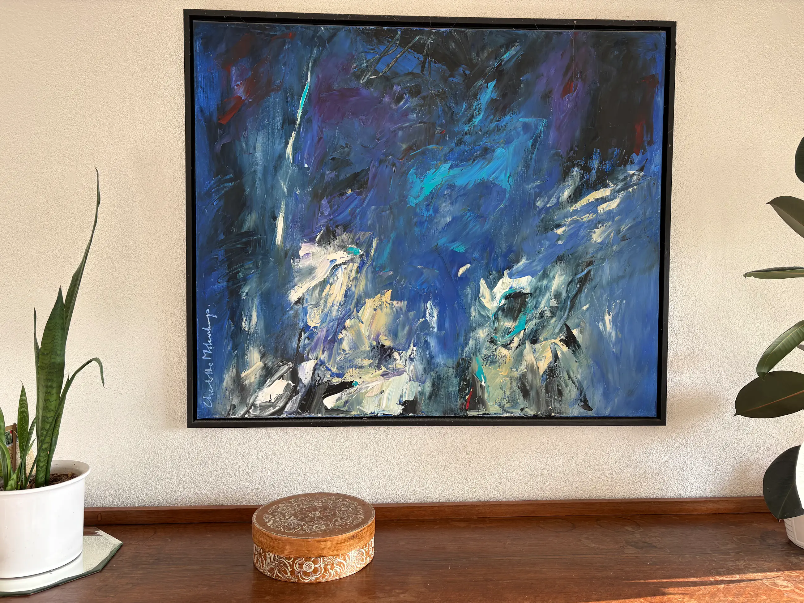 Zeebodem Een mooi opvallend schilderij in blauwtinten Een eyecatcher
