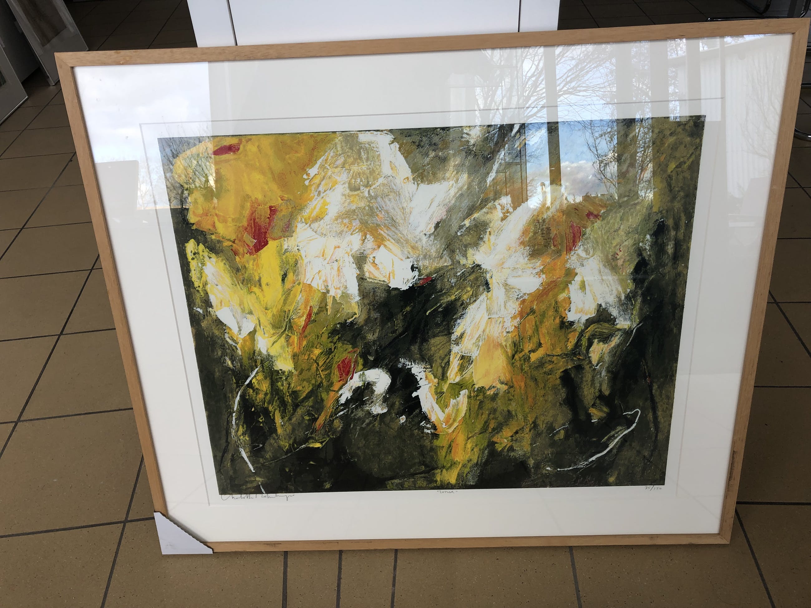 Kleurrijk werk van Charlotte Molenkamp in zeer goede staat. Gesigneerd. In houtenlijst ( Barth) met zuurvrij passe partout. Kan zo aan de muur worden opgehangen. Ophalen met lijst, per koerier of verzenden zonder lijst. Vooraf bekijken en of ophalen bij galerie Rotor in Gorinchem.Galerieprijs 825 euro