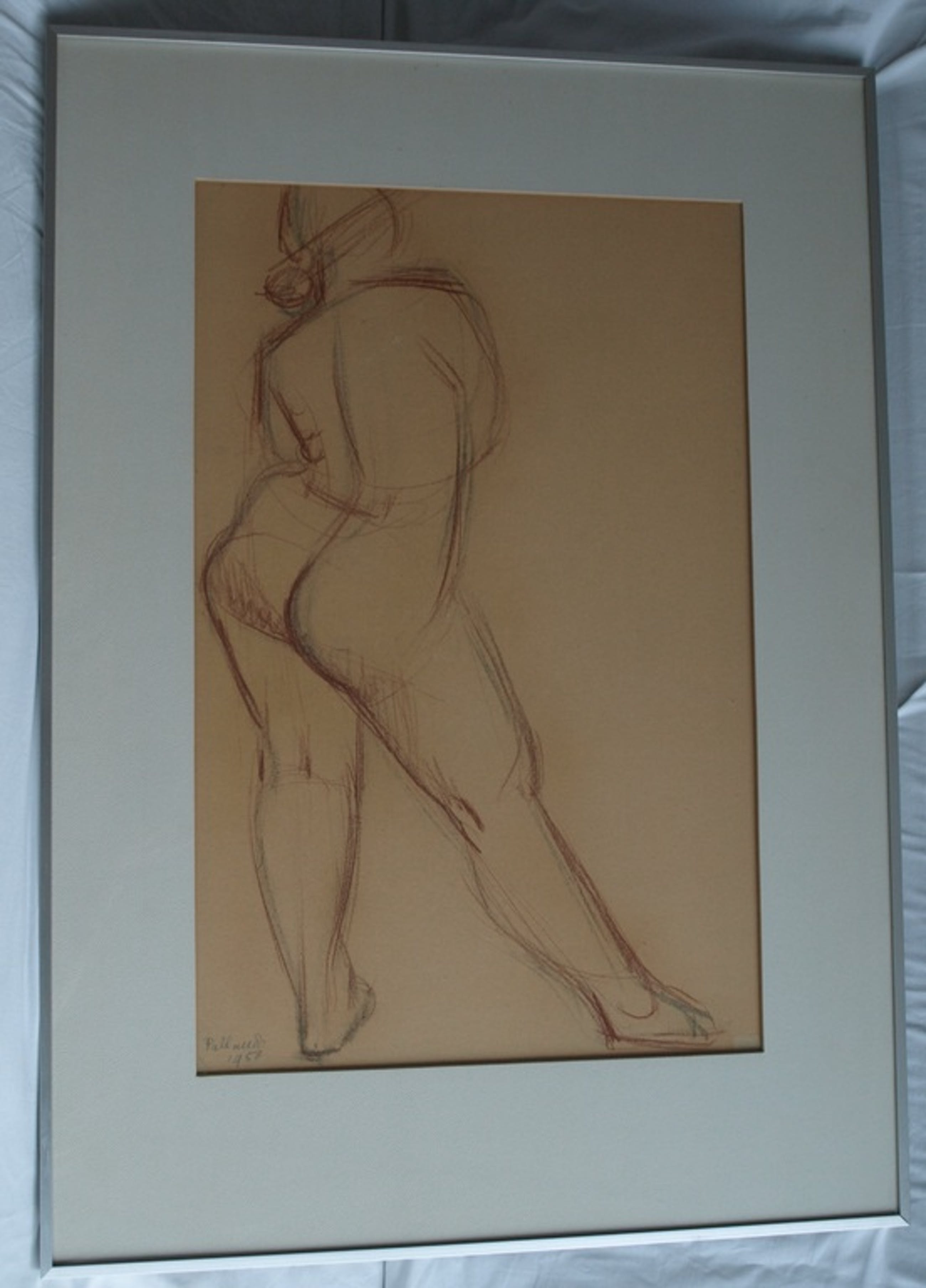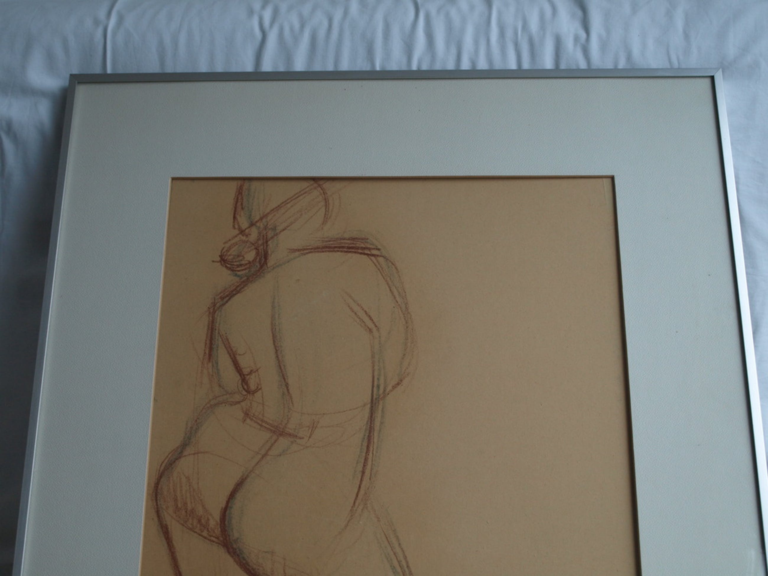 Een grote tekening uit 1958 van de Nederlandse kunstenares / beeldhouwer Charlotte van Pallandt (1898-1997). De vrouw op de tekening is het model Truus Trompert (1915-1977).