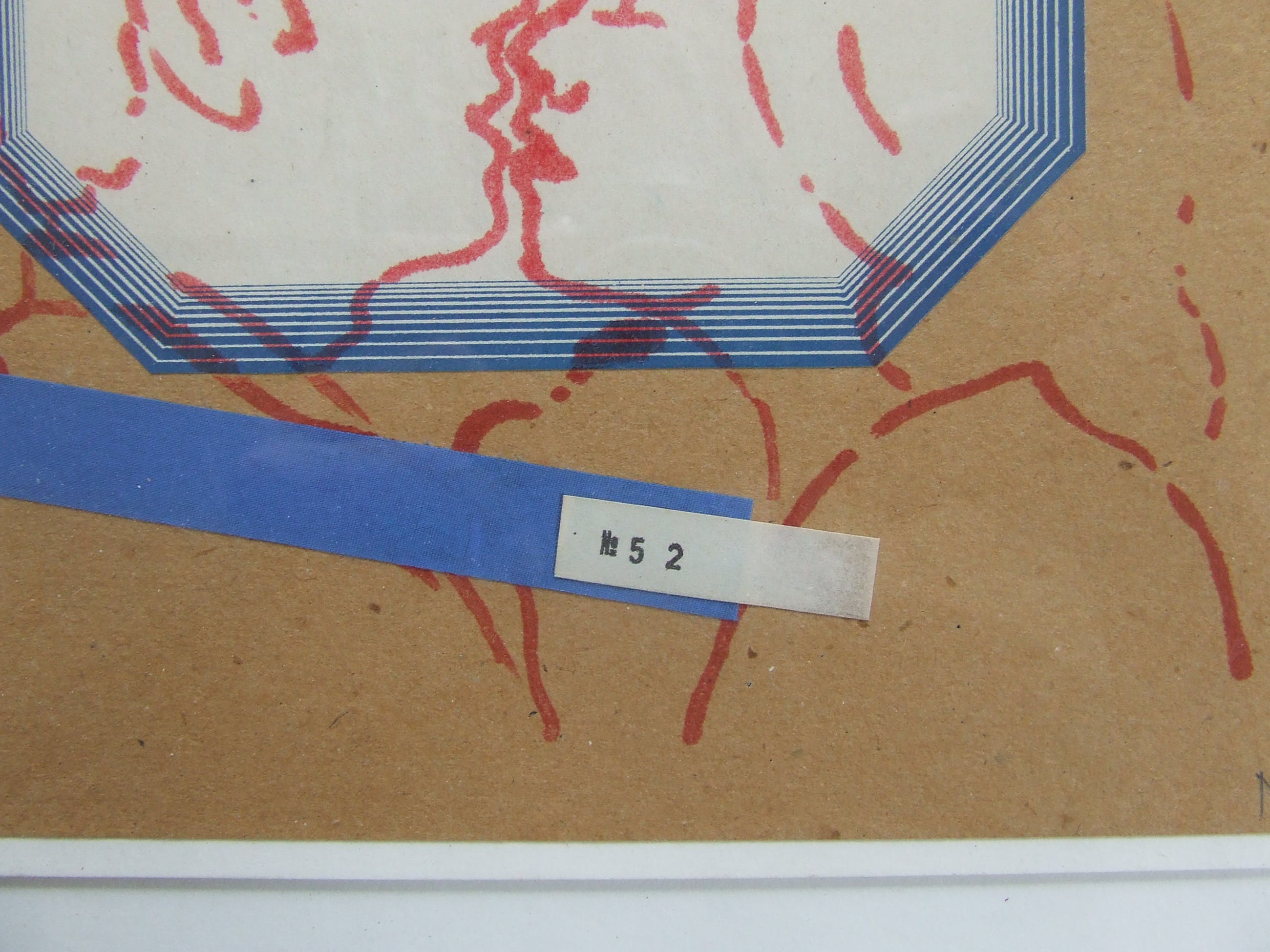 Dit kunstwerk is in goede staat(zie foto`s) , de afmetingen inclusief lijst zijn 29 cm bij 29,5 cm.