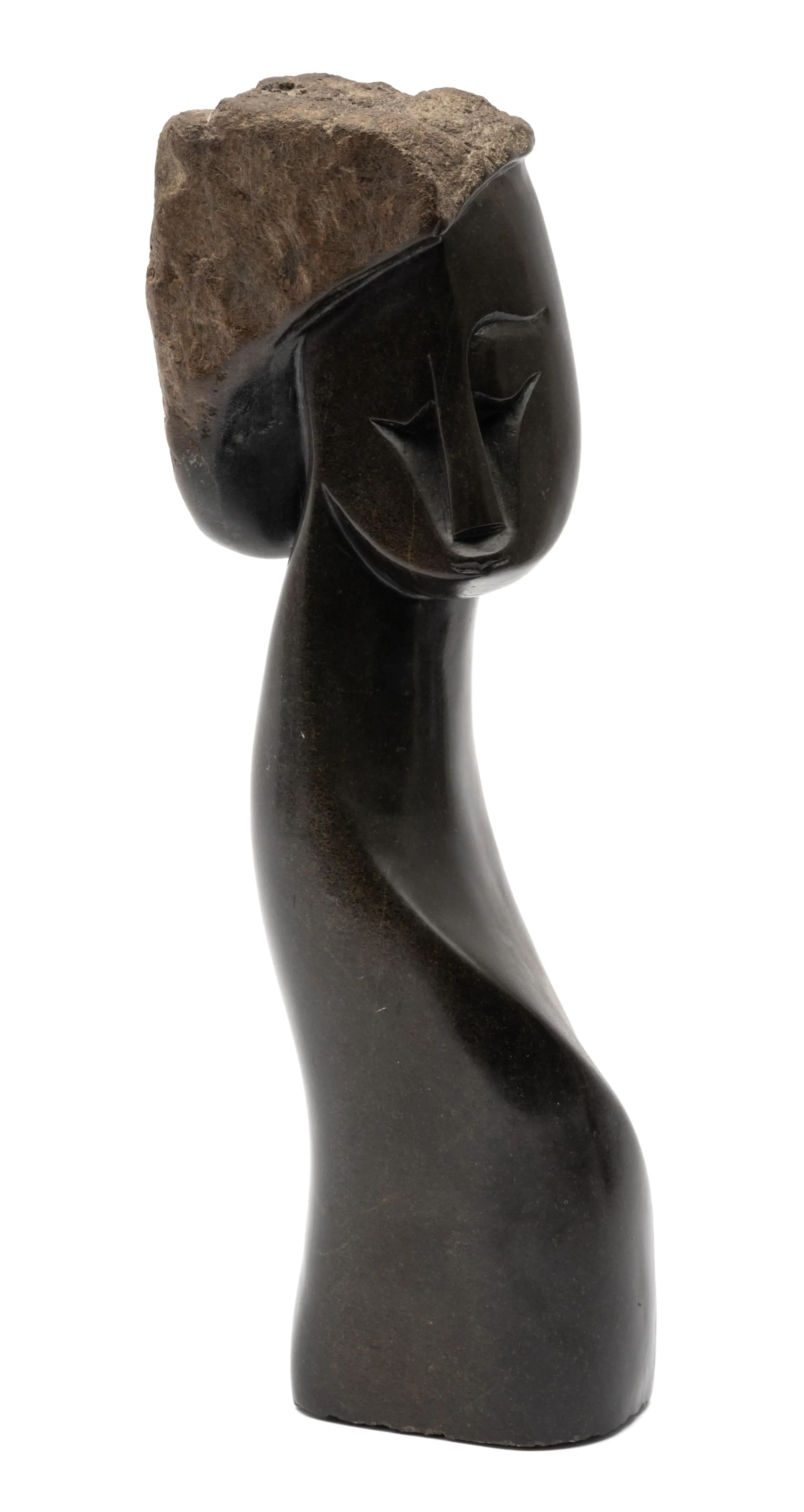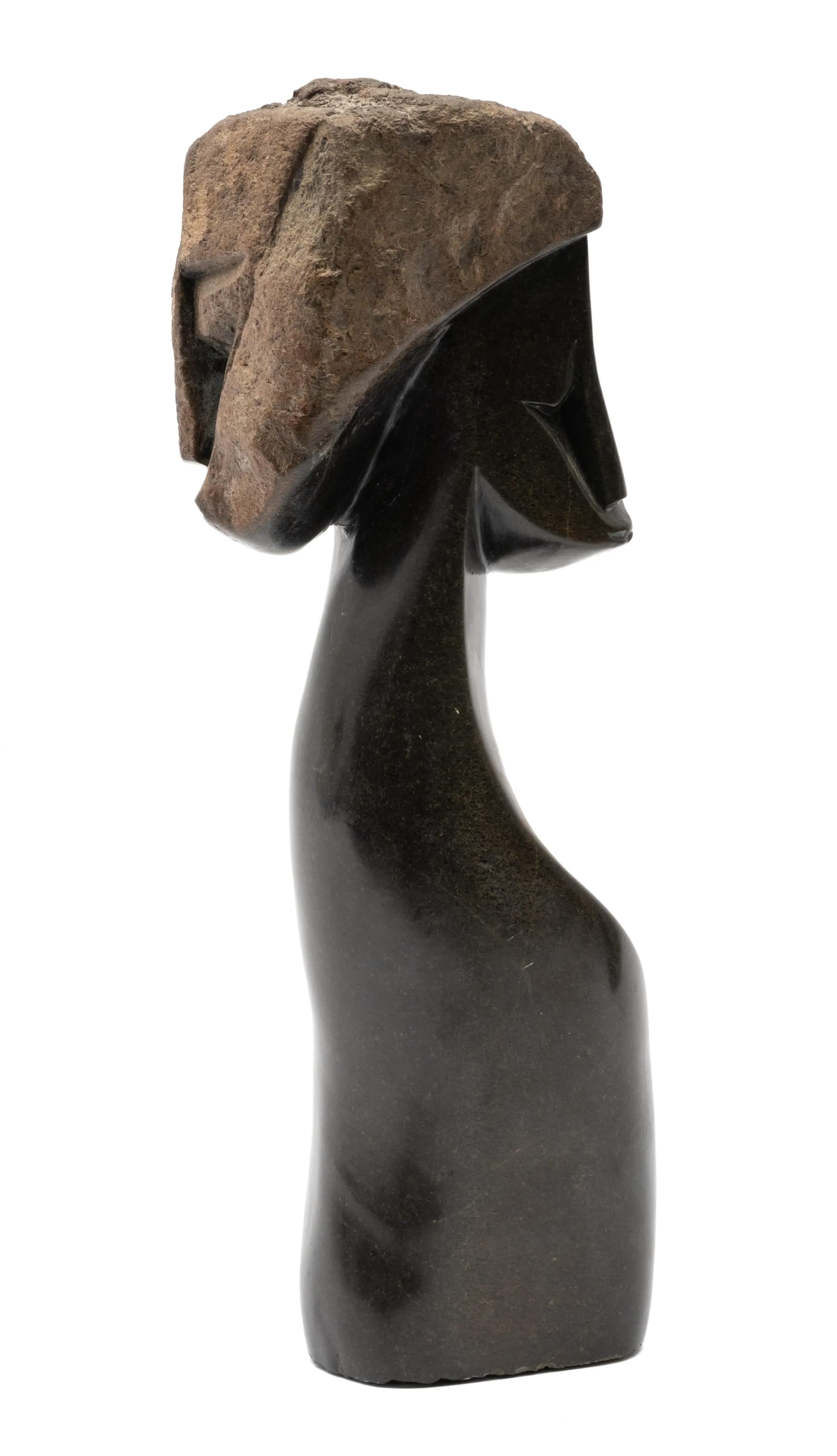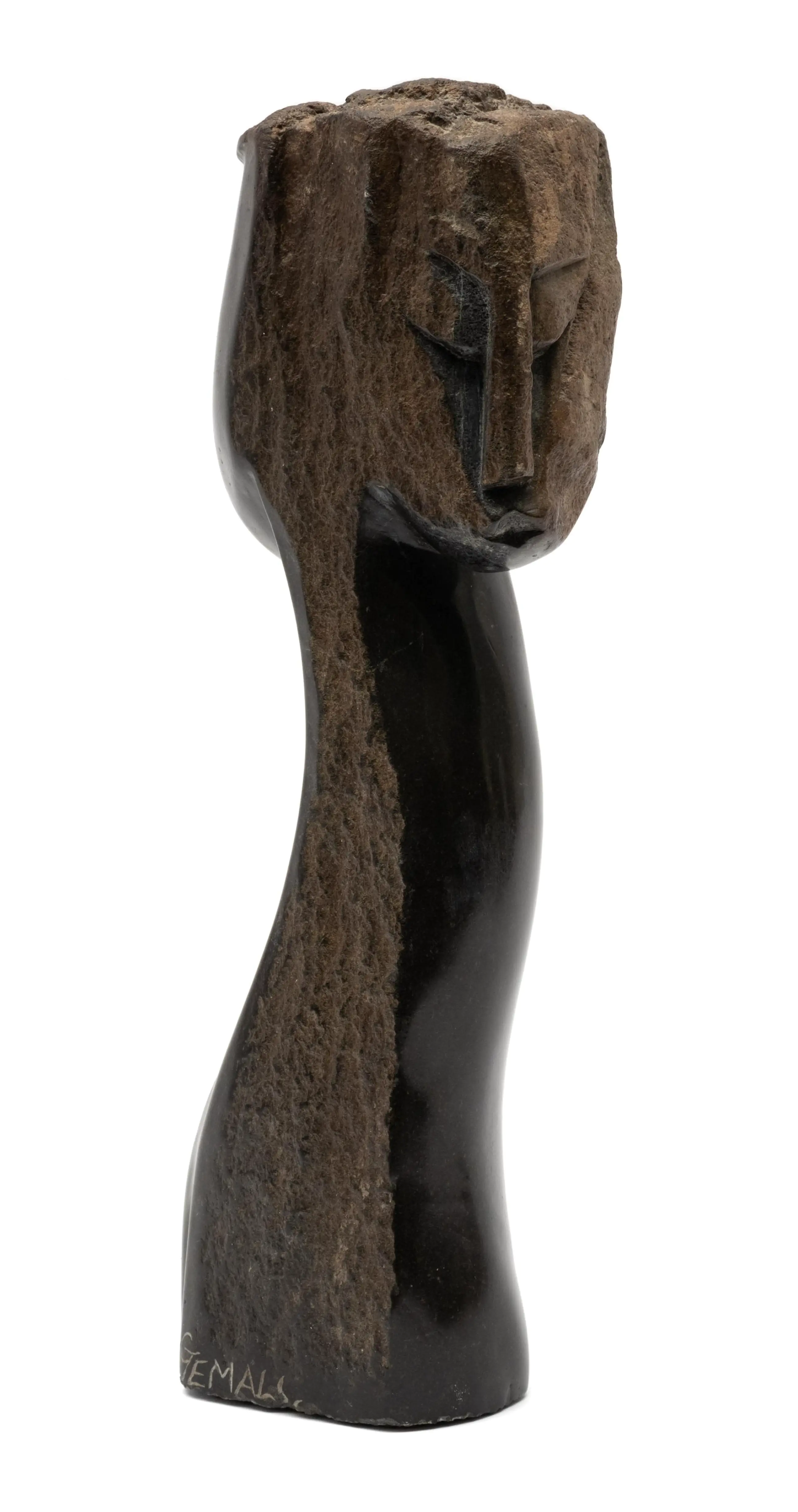Beeld van gesneden steen van Chitua Jemali. Titel: Januskop. Jaar: 1996. Afmetingen beeld: H45 x b10 x d8cm. Het beeld is onderaan gesigneerd door de kunstenaar. De authenticiteit van het aangeboden werk wordt volledig gegarandeerd. Een certificaat van echtheid kan, op aanvraag, worden gemaild.