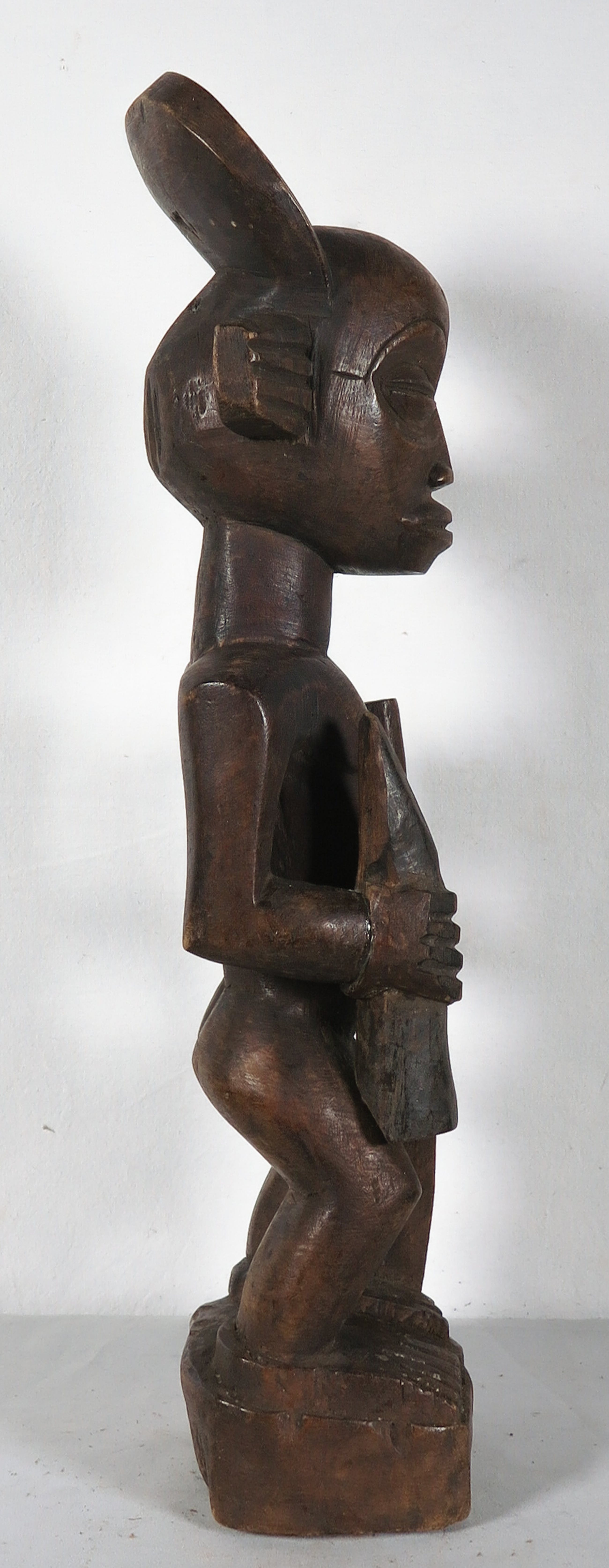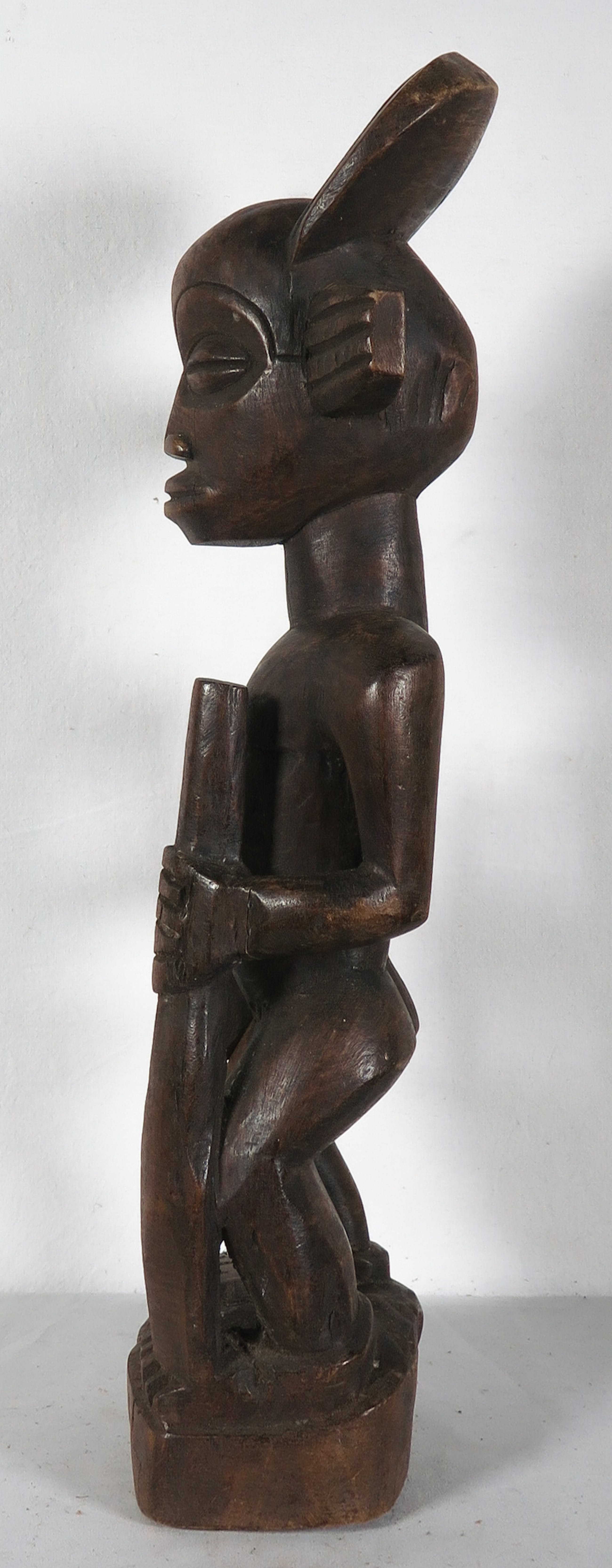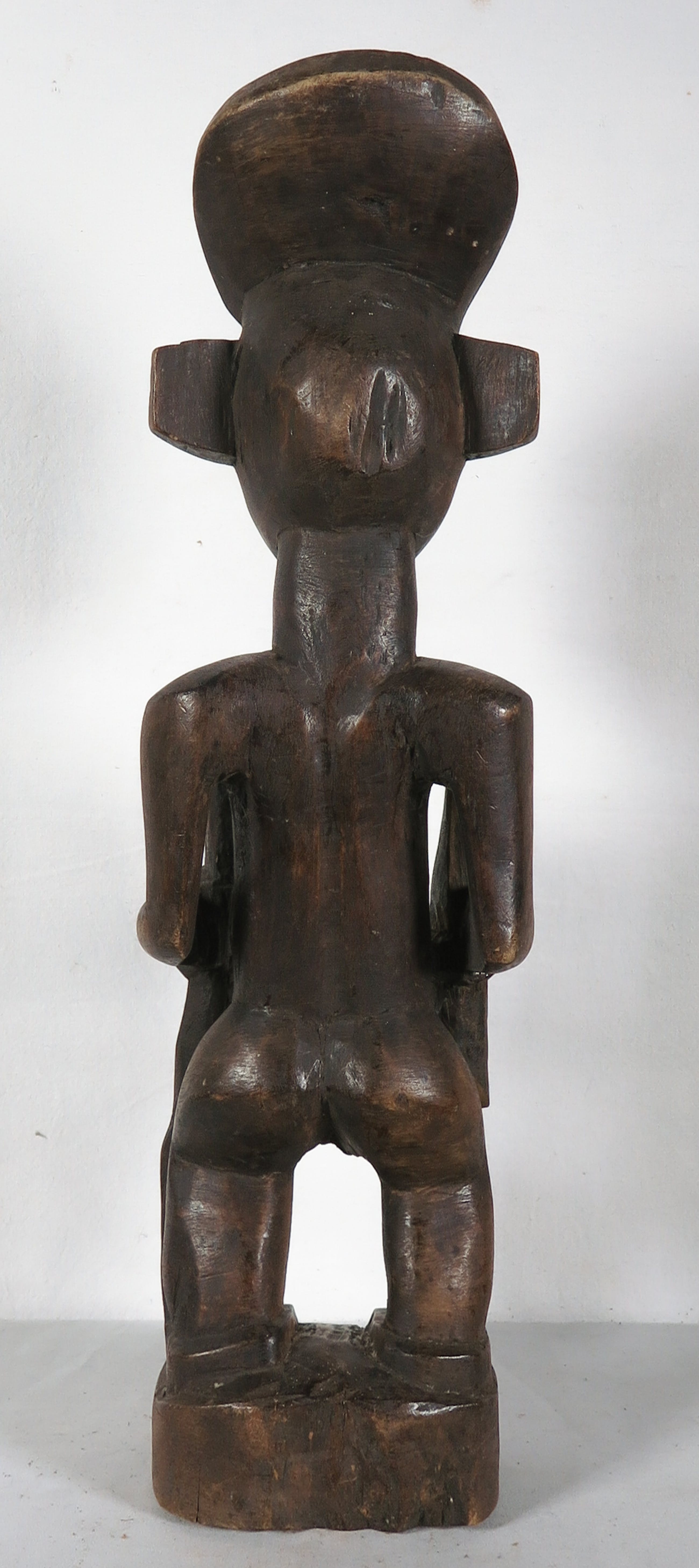 | Klein scheurtje aan de voorkant van het figuur in het hout. Verder lichte gebruikssporen. | |||||||||||