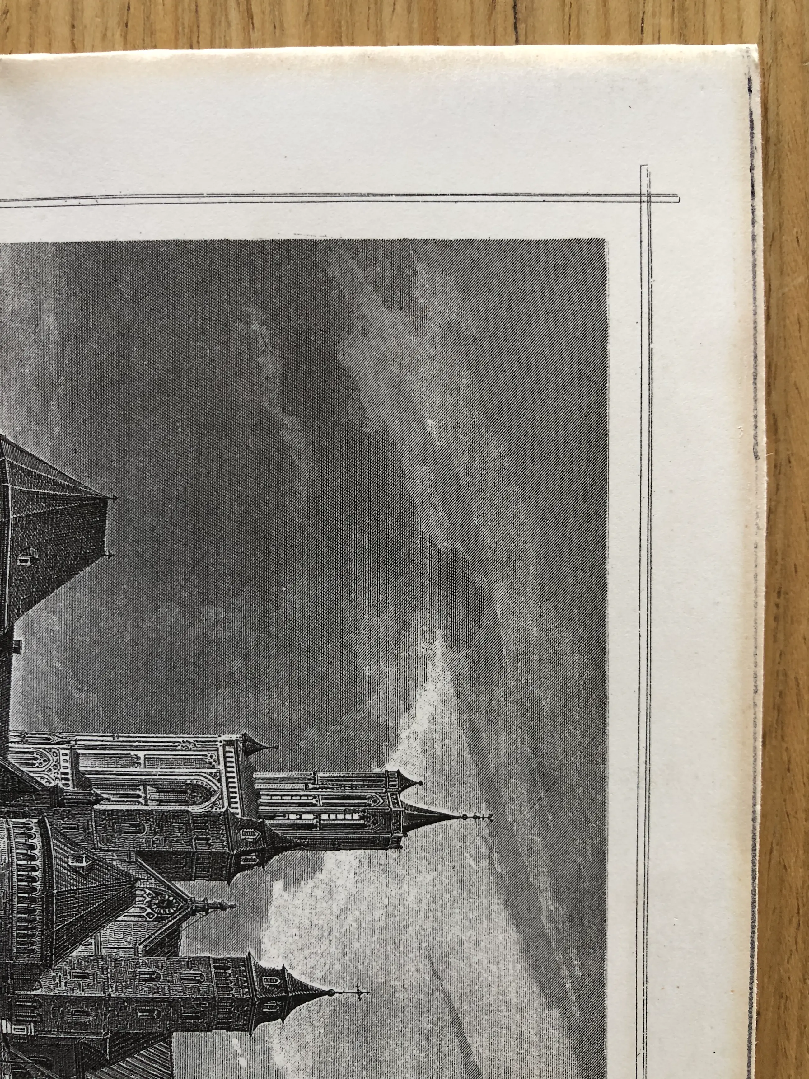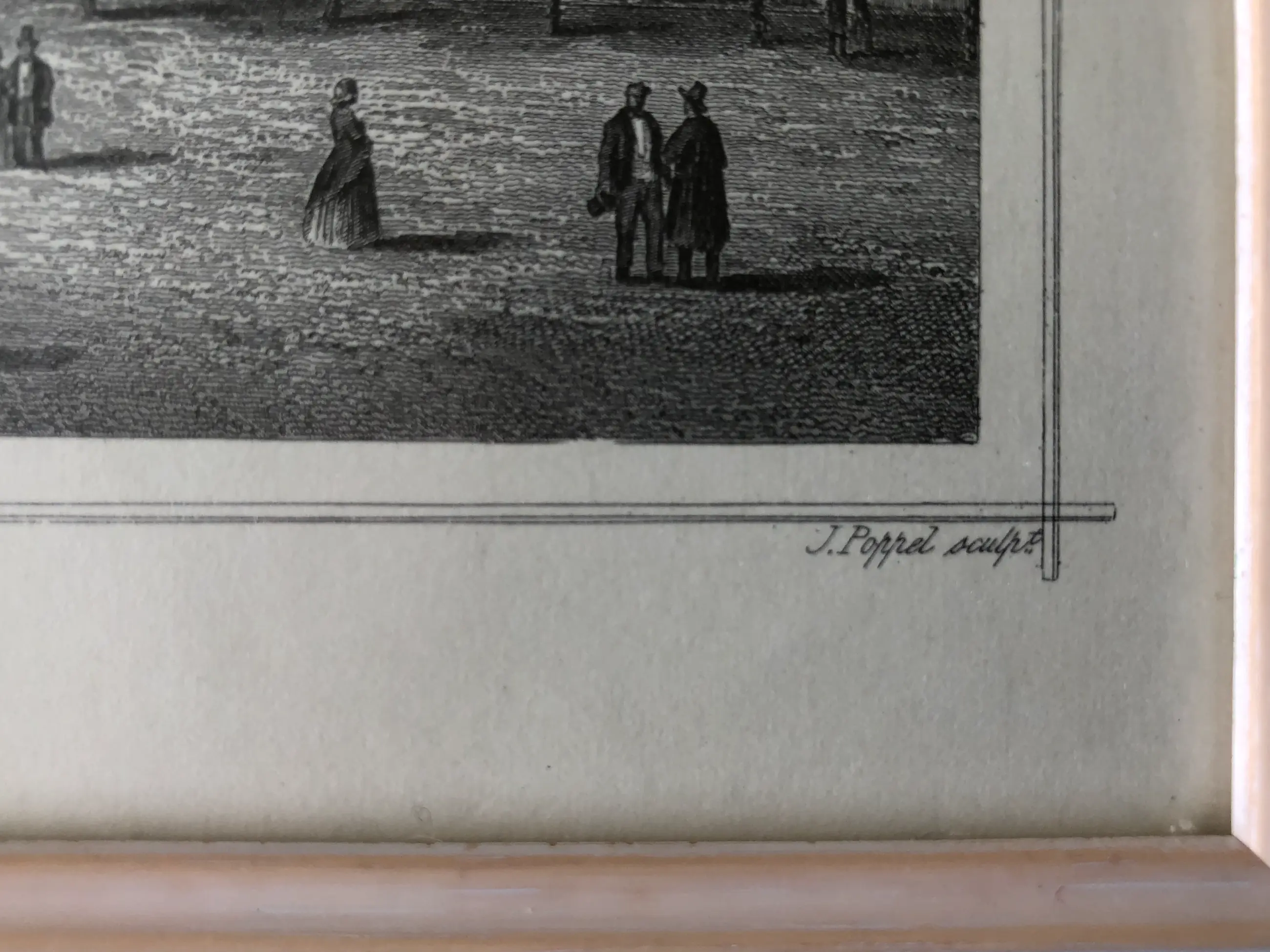 Formaat: papier ±15 x 20 (de lange zijdes zijn omgevouwen), beeld ± 12 x 17 cm. Inclusief lijst 18,5 x 23,5 cm. De gravure zit in een vrij 'modern' lijstje, vooral ter bescherming, achter glas, maar komt mogelijk beter tot zijn recht in een andere lijst.