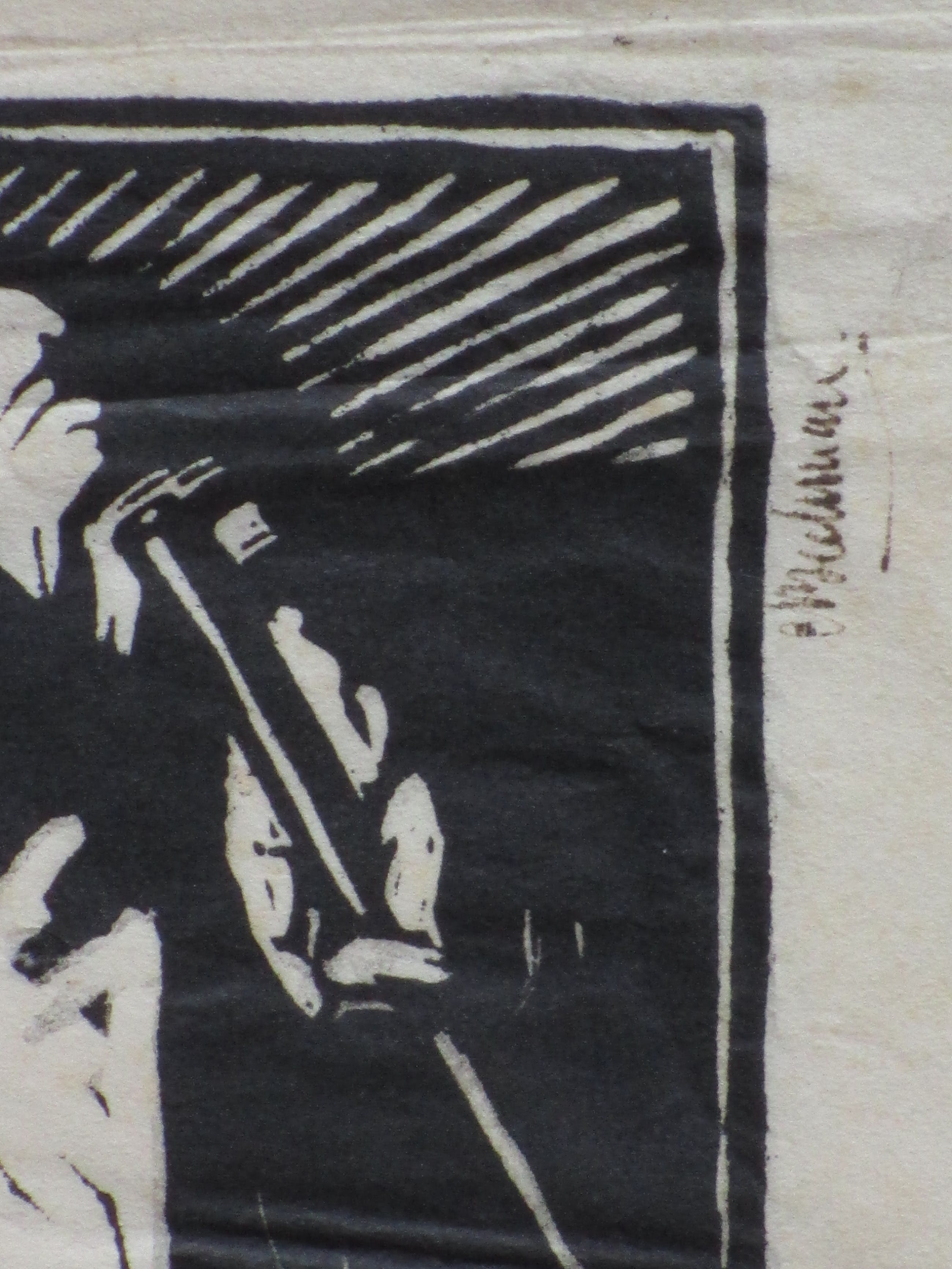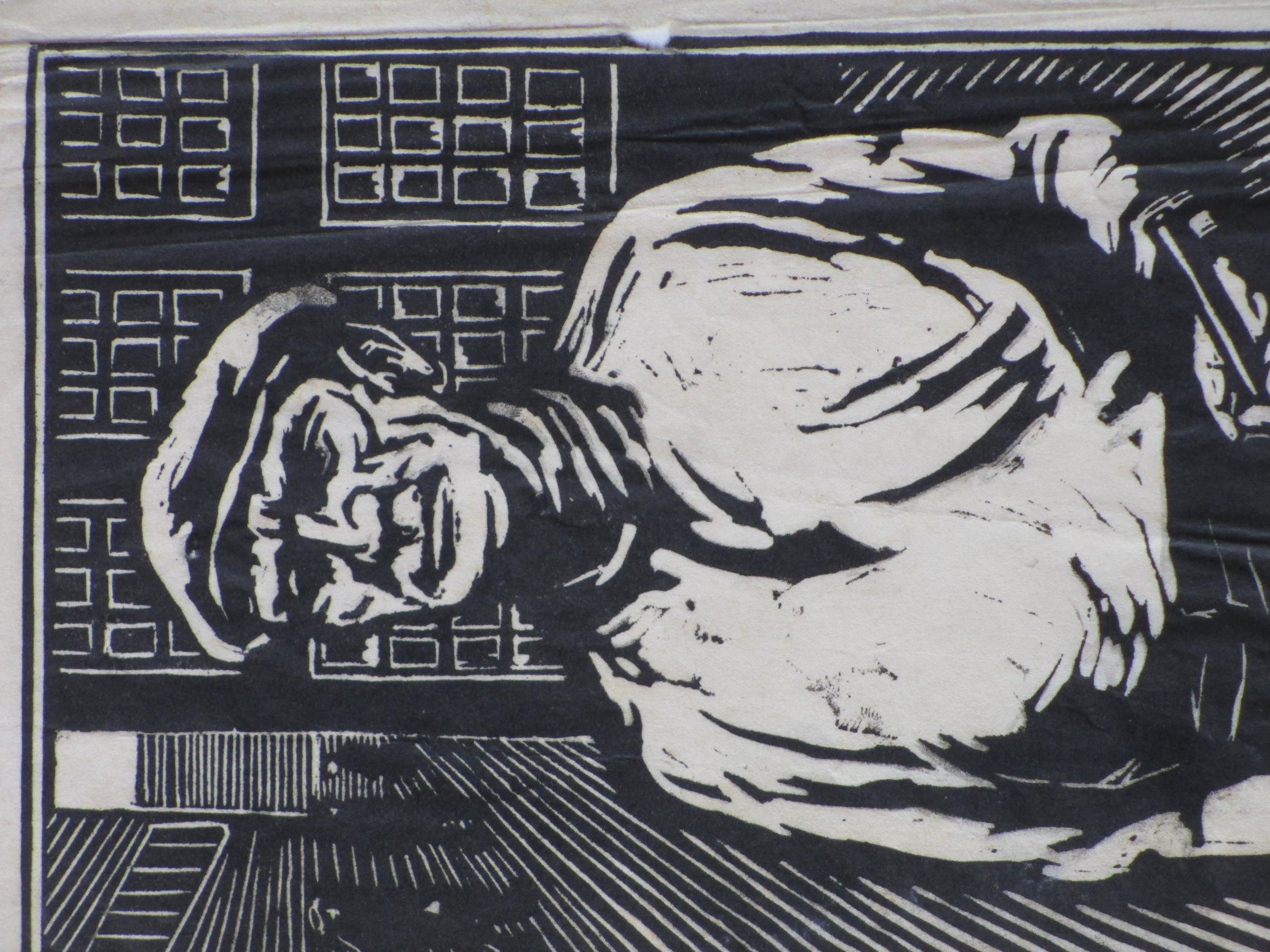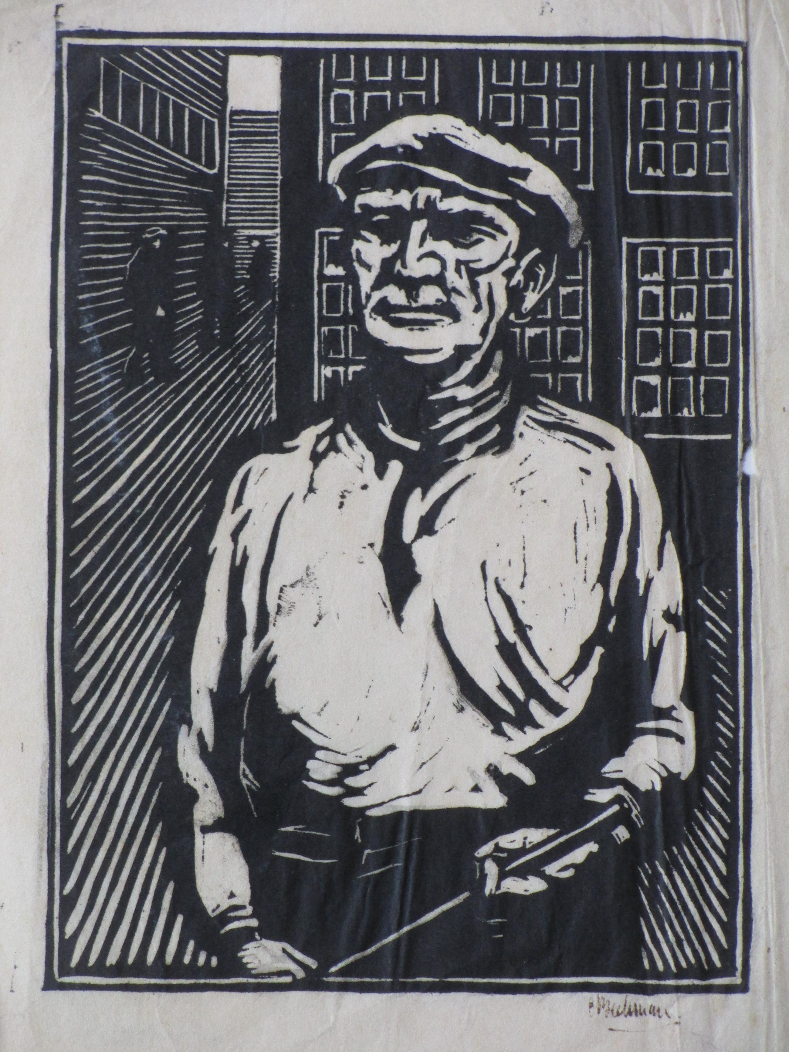 Houtsnede door Chris Beekman Voorstelling van een arbeider in de trant van de Nieuwe Zakelijkheid Losbladig, beeldmaat 24x17, bladmaat 34x23 Gesigneerd in pen r.o. 'C Beekman' Authenticiteit volledig gegarandeerd