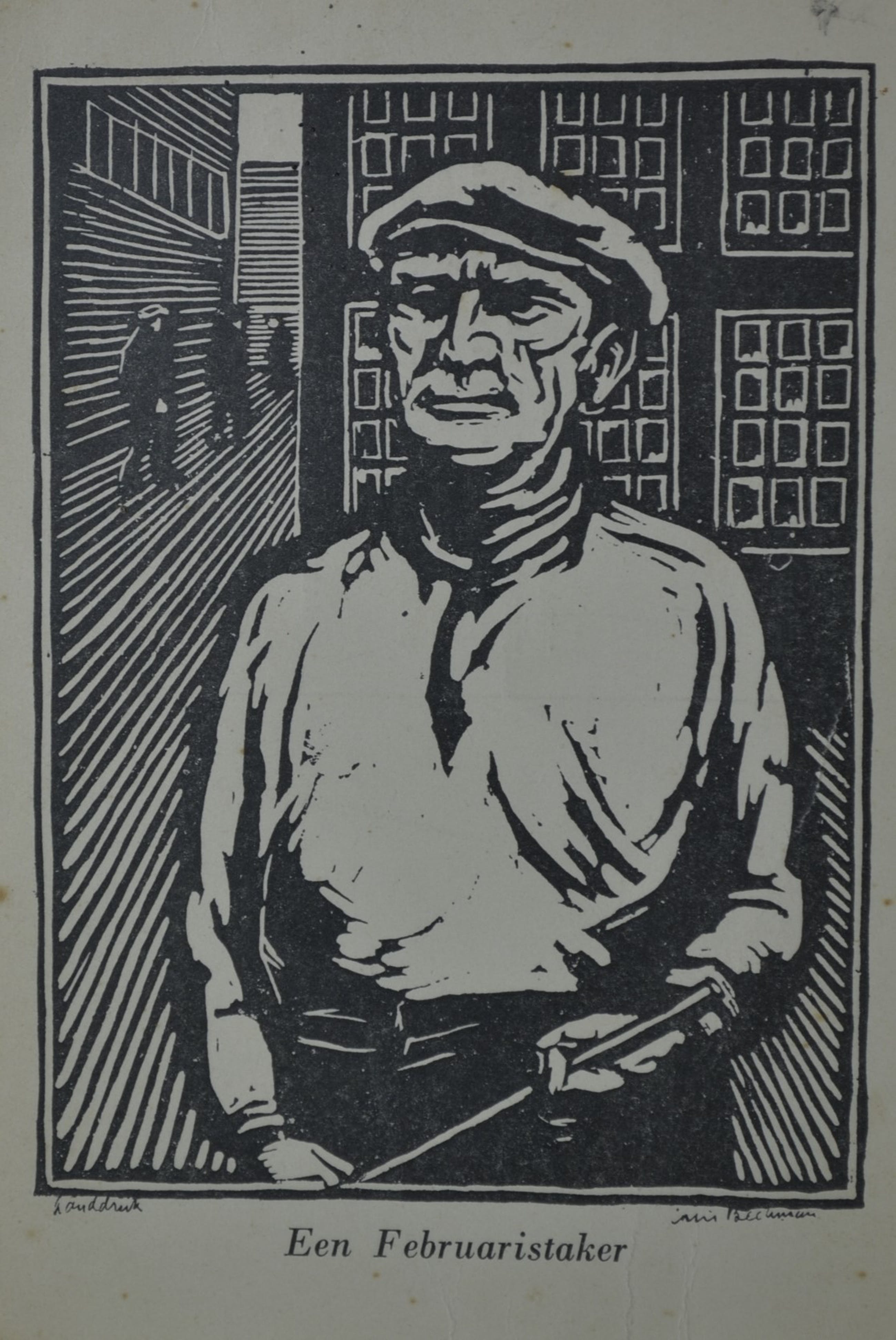 Een uitnodigingskaart door chris beekman gemaakt voor een tentoonstelling tijdens de Pinksterdagen welk een manifestatie zal zijn van het leven, de arbeid en de strijd voor de vrede van ons volk. Chris Beekman ook wel een De stijl kunstenaar genoemd was politiek geëngageerd. Hij was communist en maakte ooit een portret van Hannie Schaft. De afbeelding zelf is 9 bij 12,5 cm.