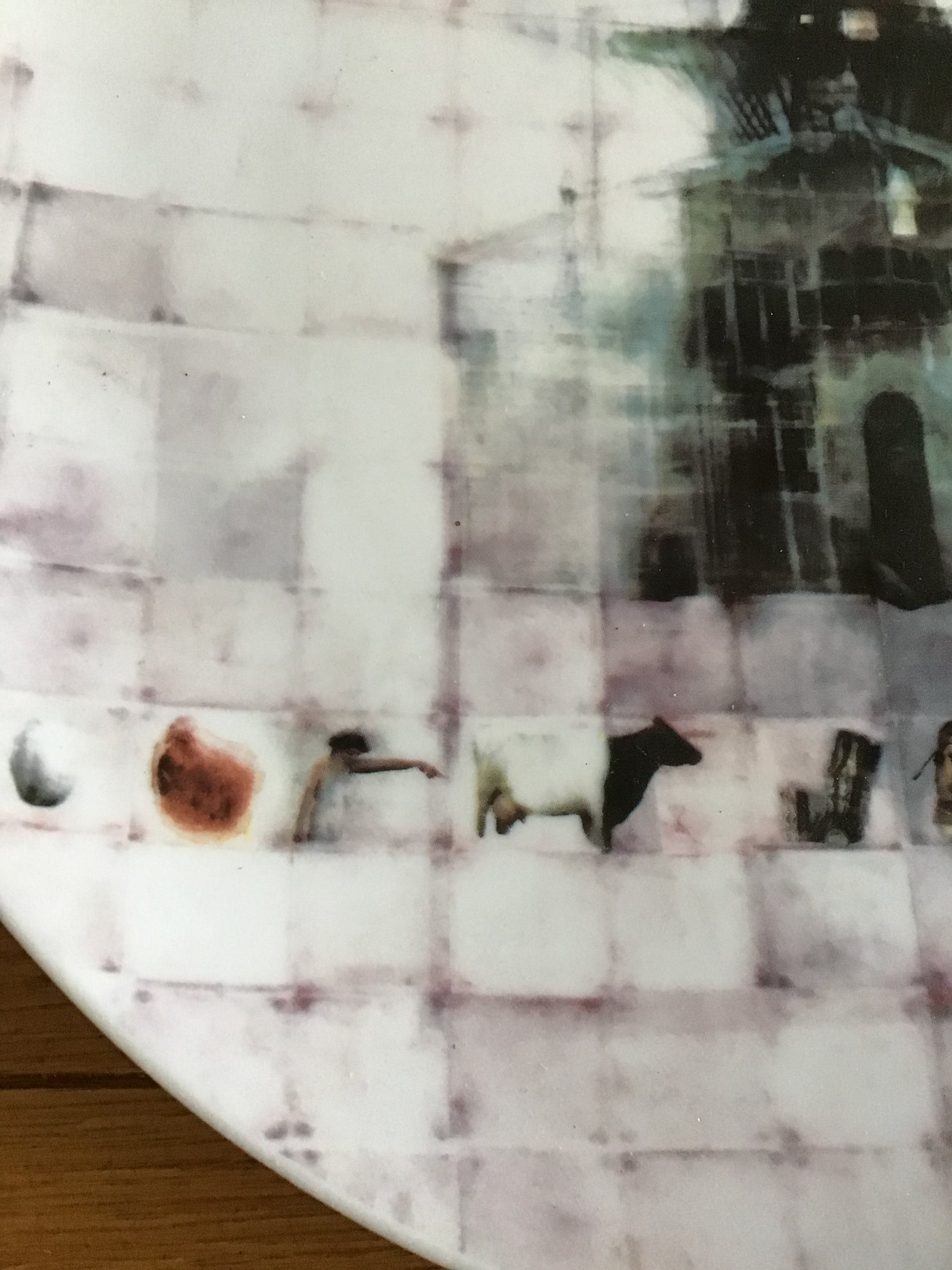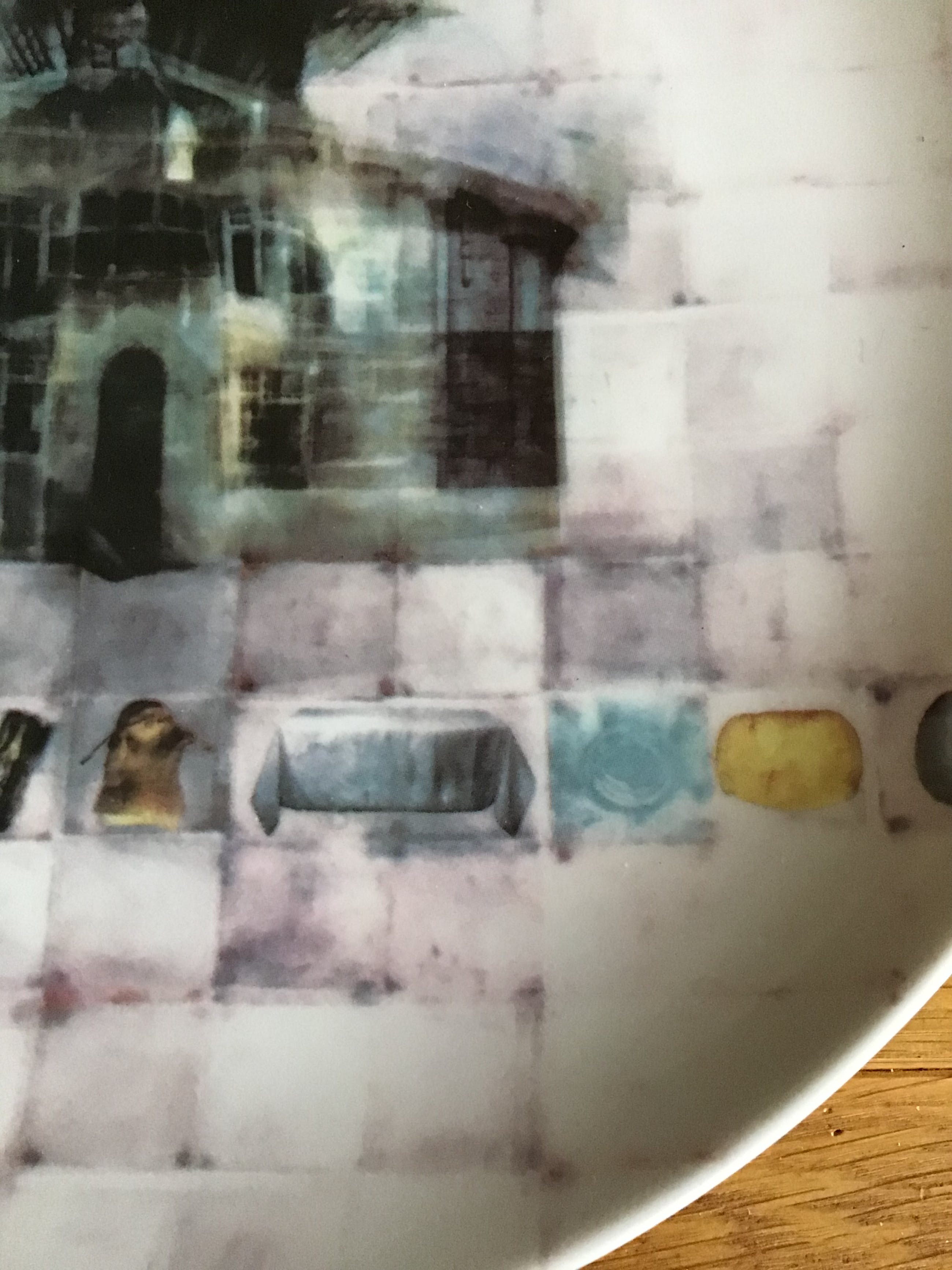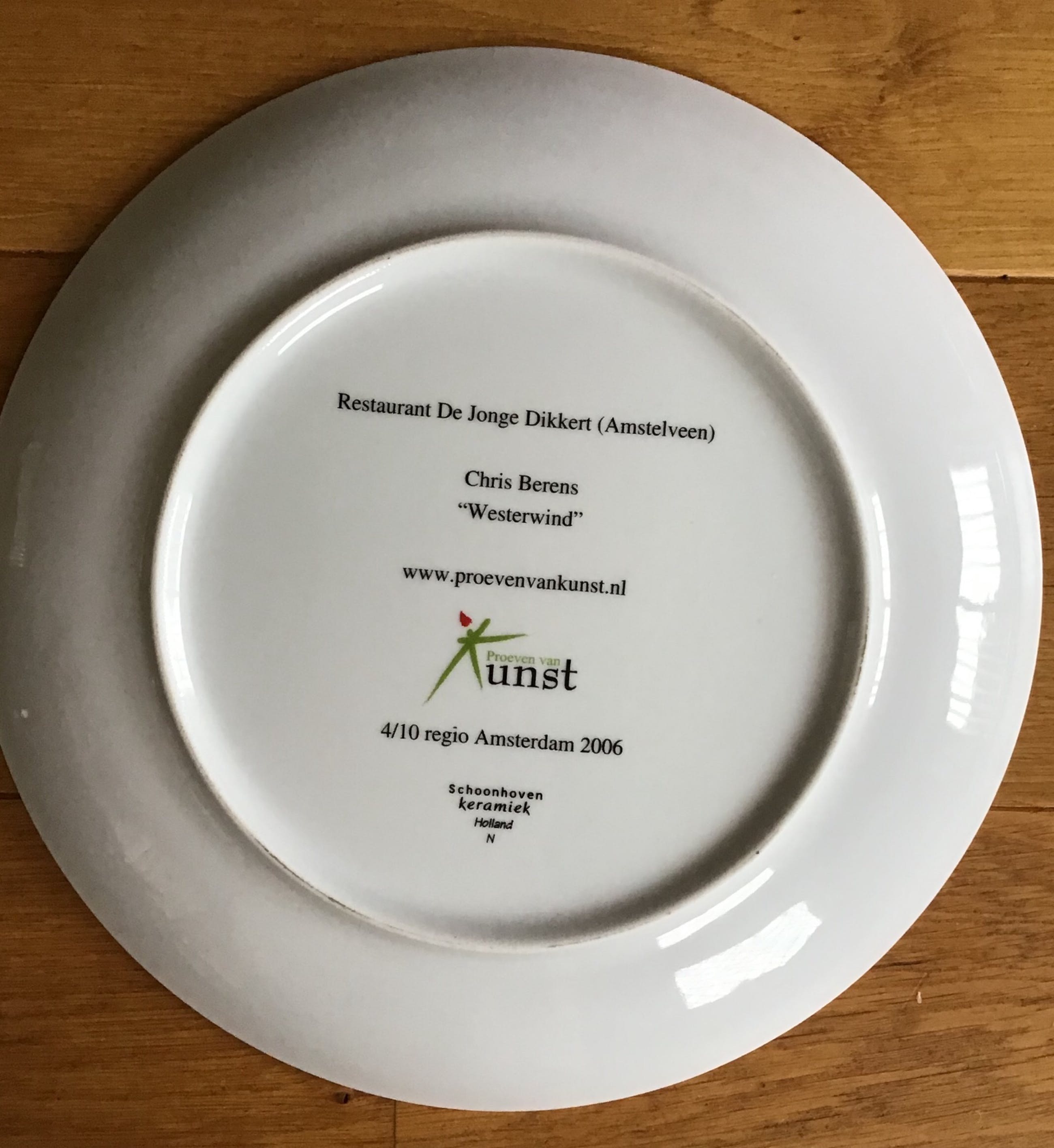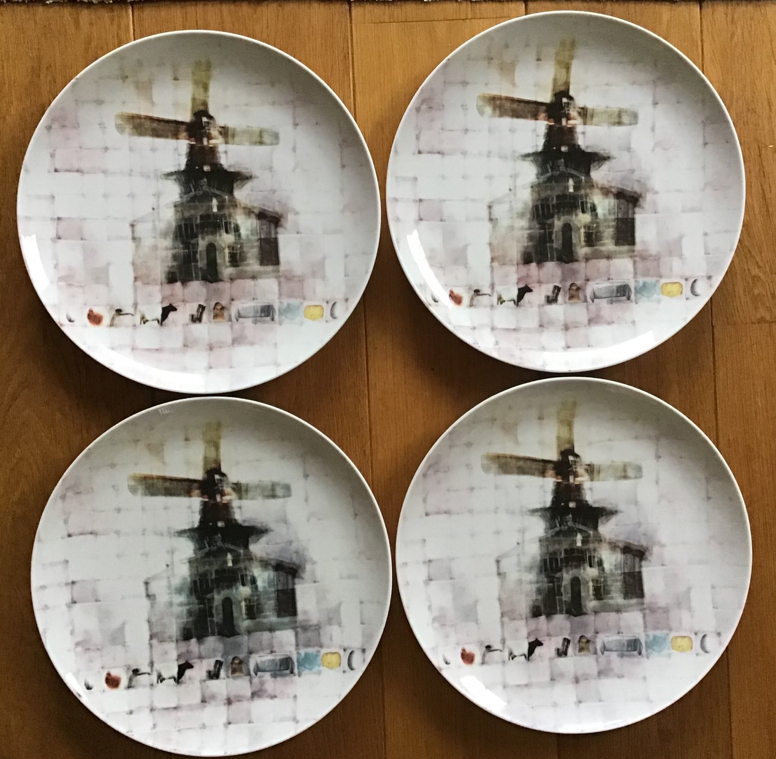 4 unieke porselein kunstborden van Chris Berens Titel Westenwind Kunnen als wandbord of onderbord Schoonhoven keramiek Doorsnee 30cm Ontwerp van Molen de Dikkert in Amstelveen Gesigneerd aan de onderkant Conditie nieuw