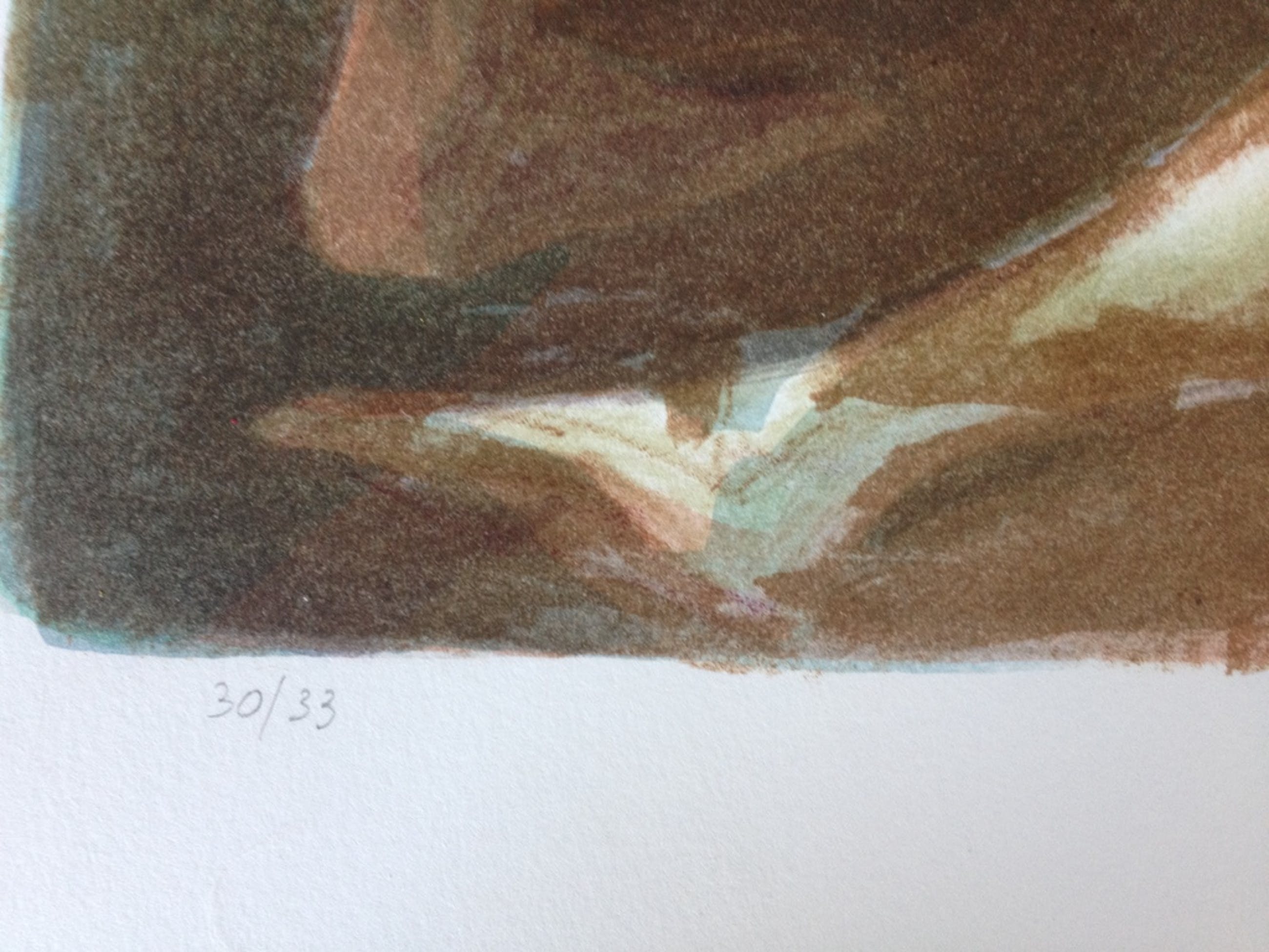 Grote kleurenlitho op handgeschept papier van Chris Buursen uit 1992.