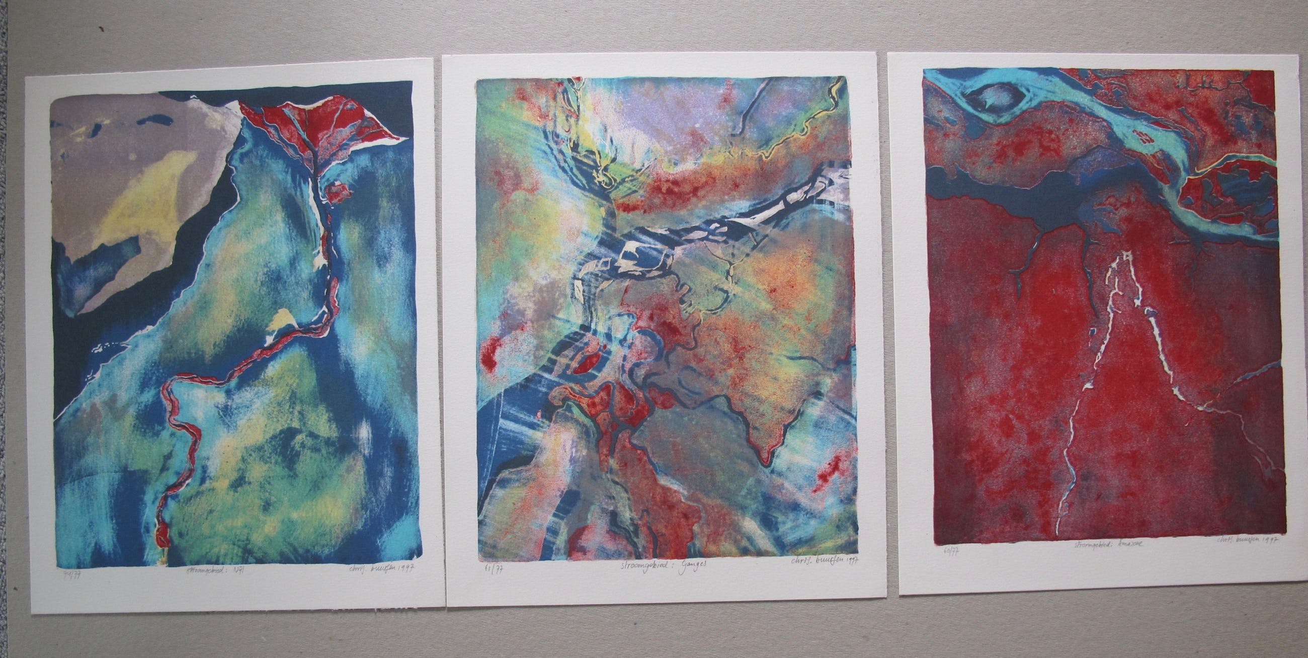 deze drie werken zijn weliswaar apart maar horen een beetje bij elkaar. Het zijn stroomgebieden van resp. Nijl, Ganges en Amazone. Kunnen in een koker worden verzonden.