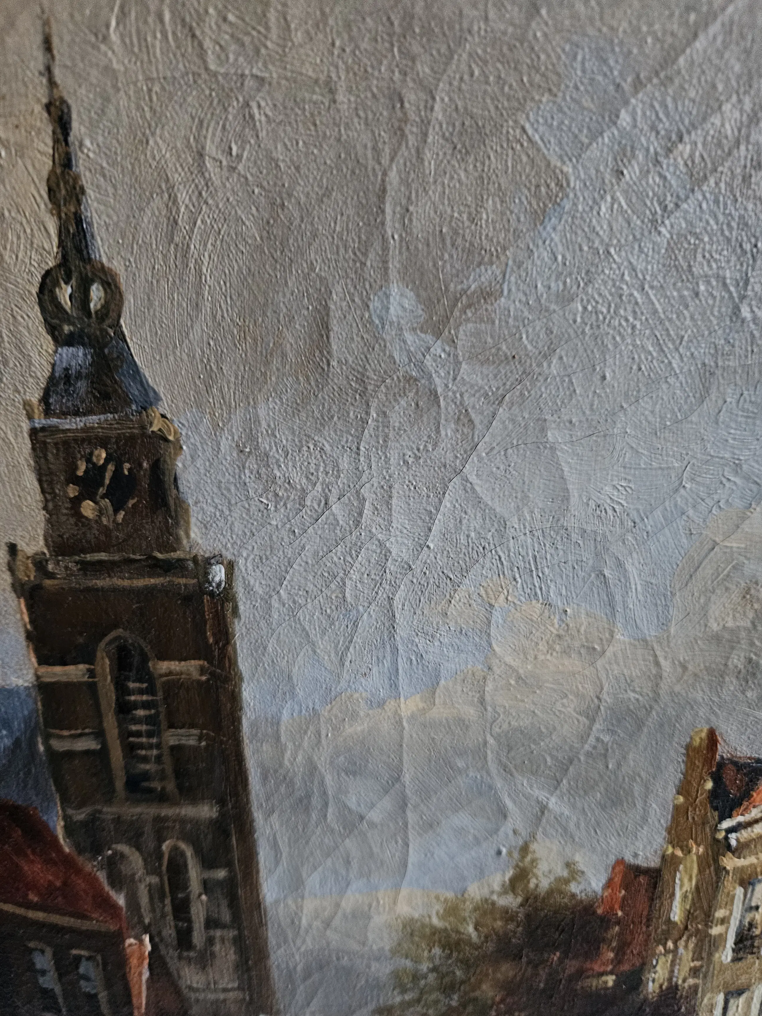 Schilderij staat ook op de website Christoffel Dijkman. In de Periode 1910-1925 signeerde Dijkman zijn werk meestal met C.H. Dijkman of C. Dijkman. Schilderij bevat aardig wat Krakelee, ondanks dat toch een mooi levendig stadsgezicht.