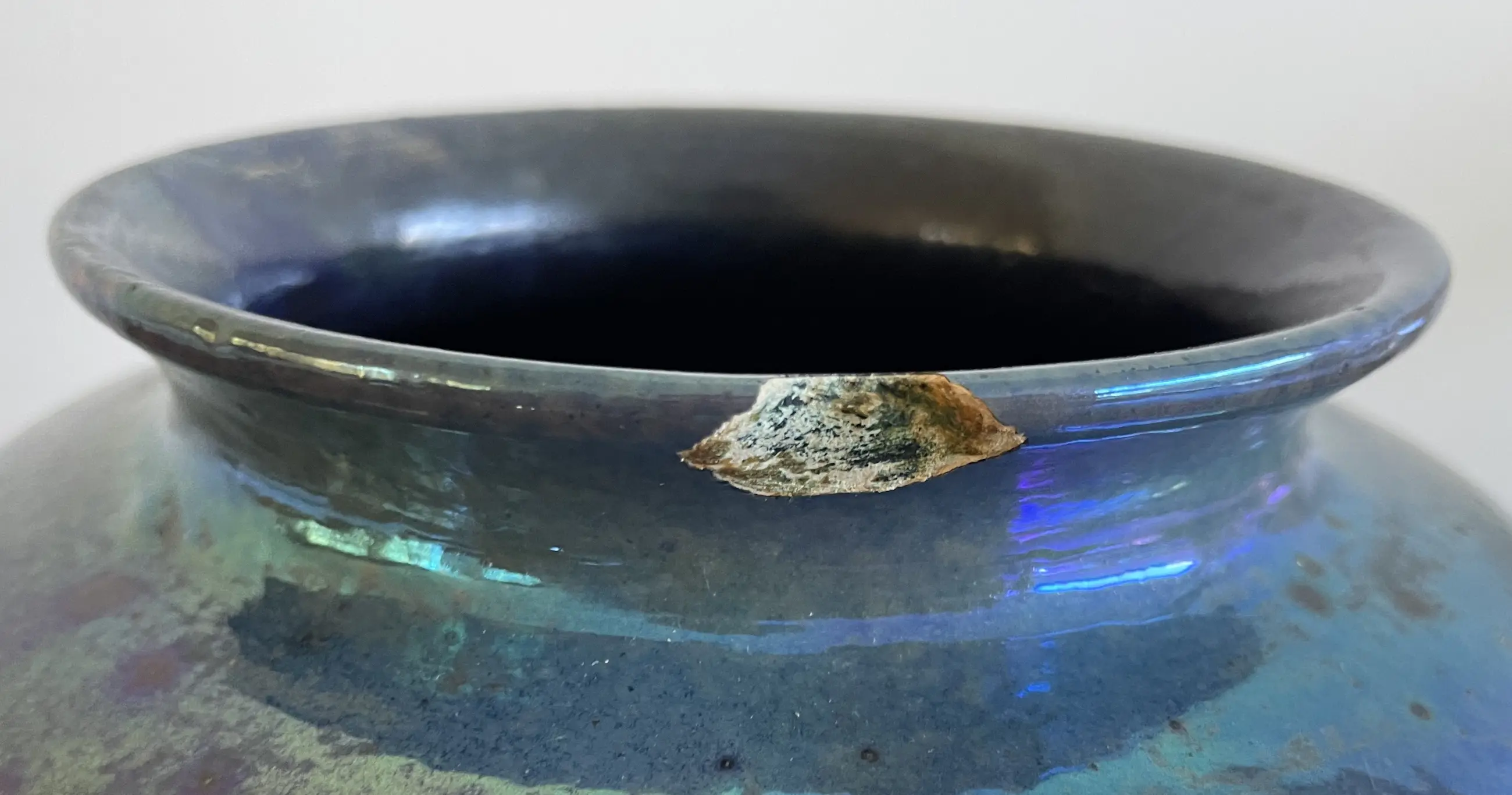 De vaas heeft een chip op de bovenrand