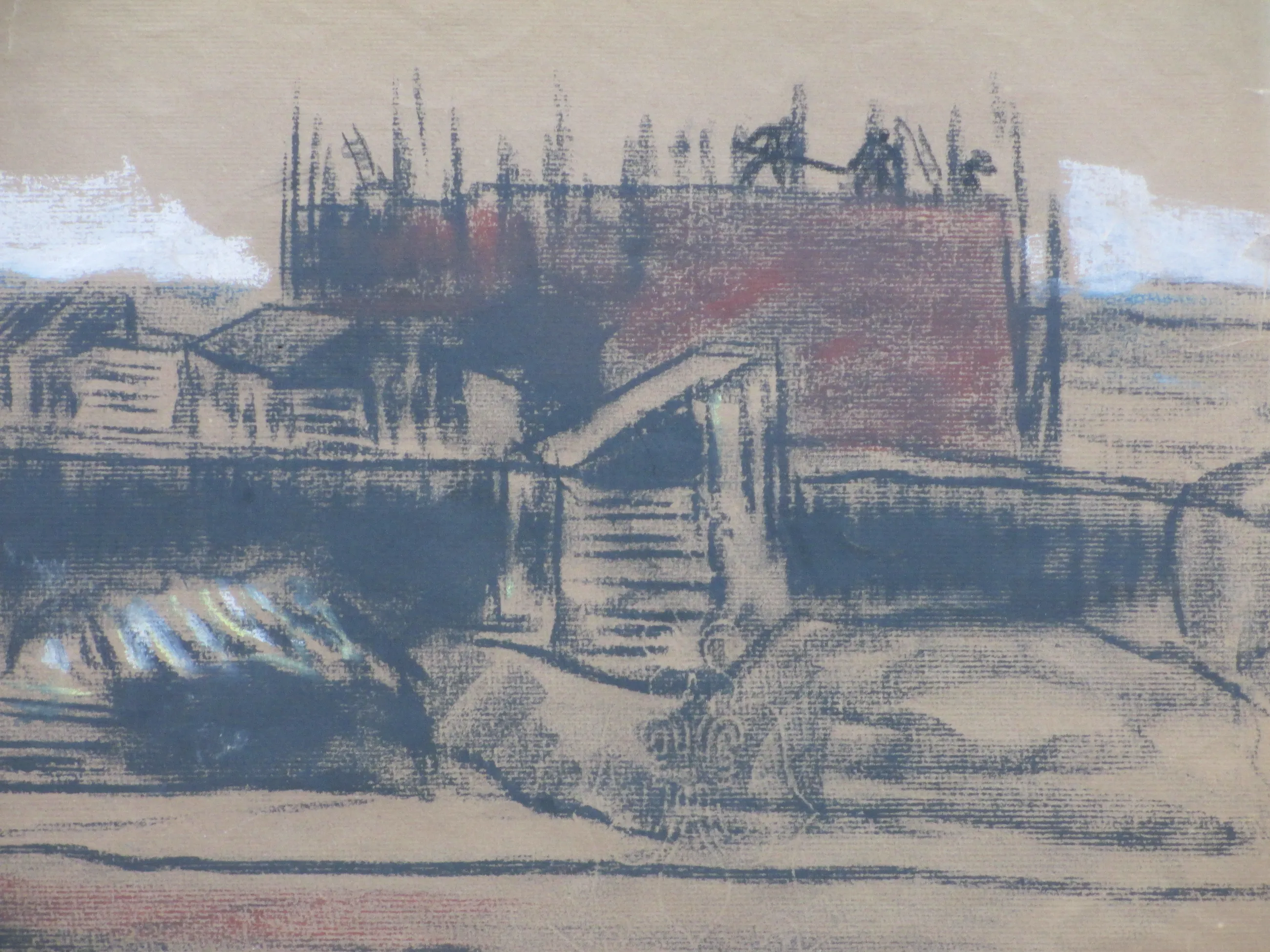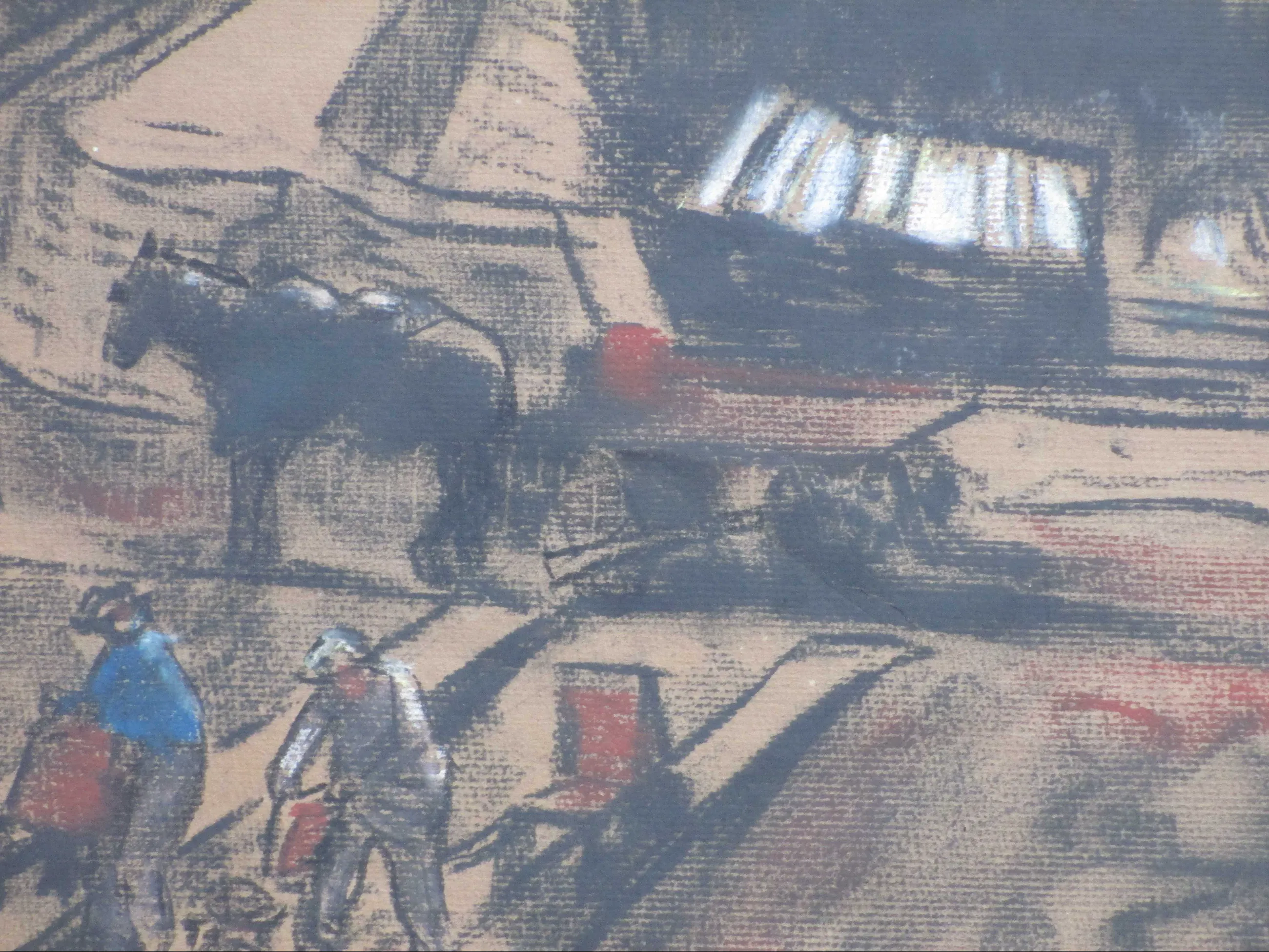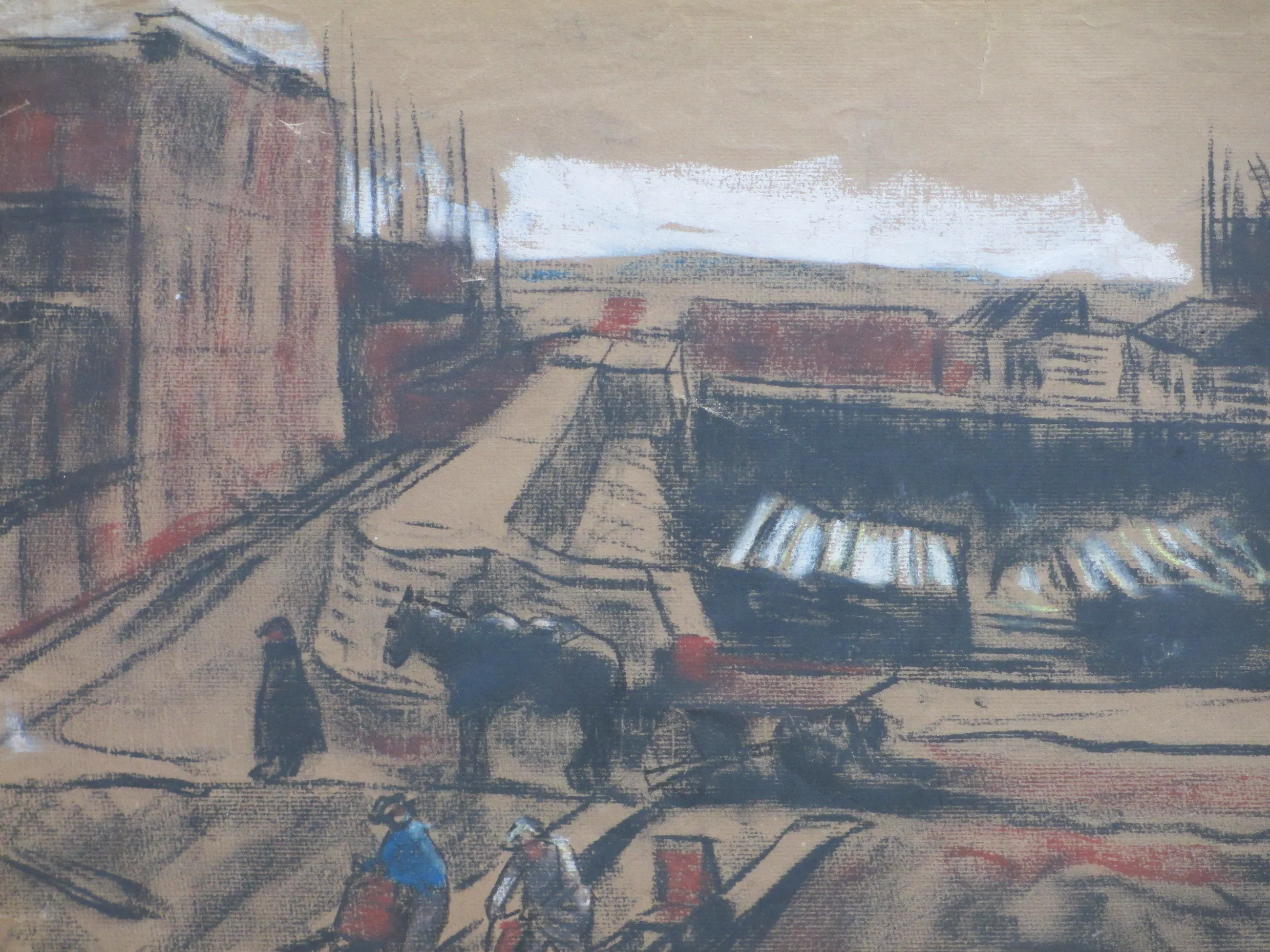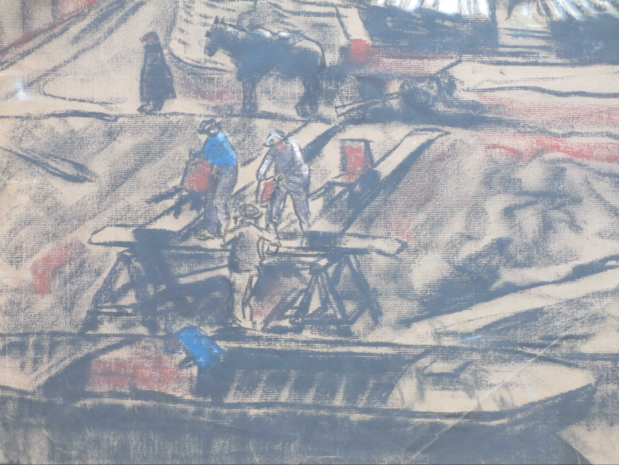 Gemengde techniek met opgehoogd wit door Chris Le Roy Voorstelling van de Valkenboskade in Den Haag in aanbouw Mooi tijdsdocument met arbeiders, paard en wagen en bouwmaterialen Gesigneerd en gedateerd r.o.: 'Dec 1914 C leRoy' Getiteld op achterzijde: '63 Valkenboschkade in aanbouw' Authenticiteit volledig gegarandeerd