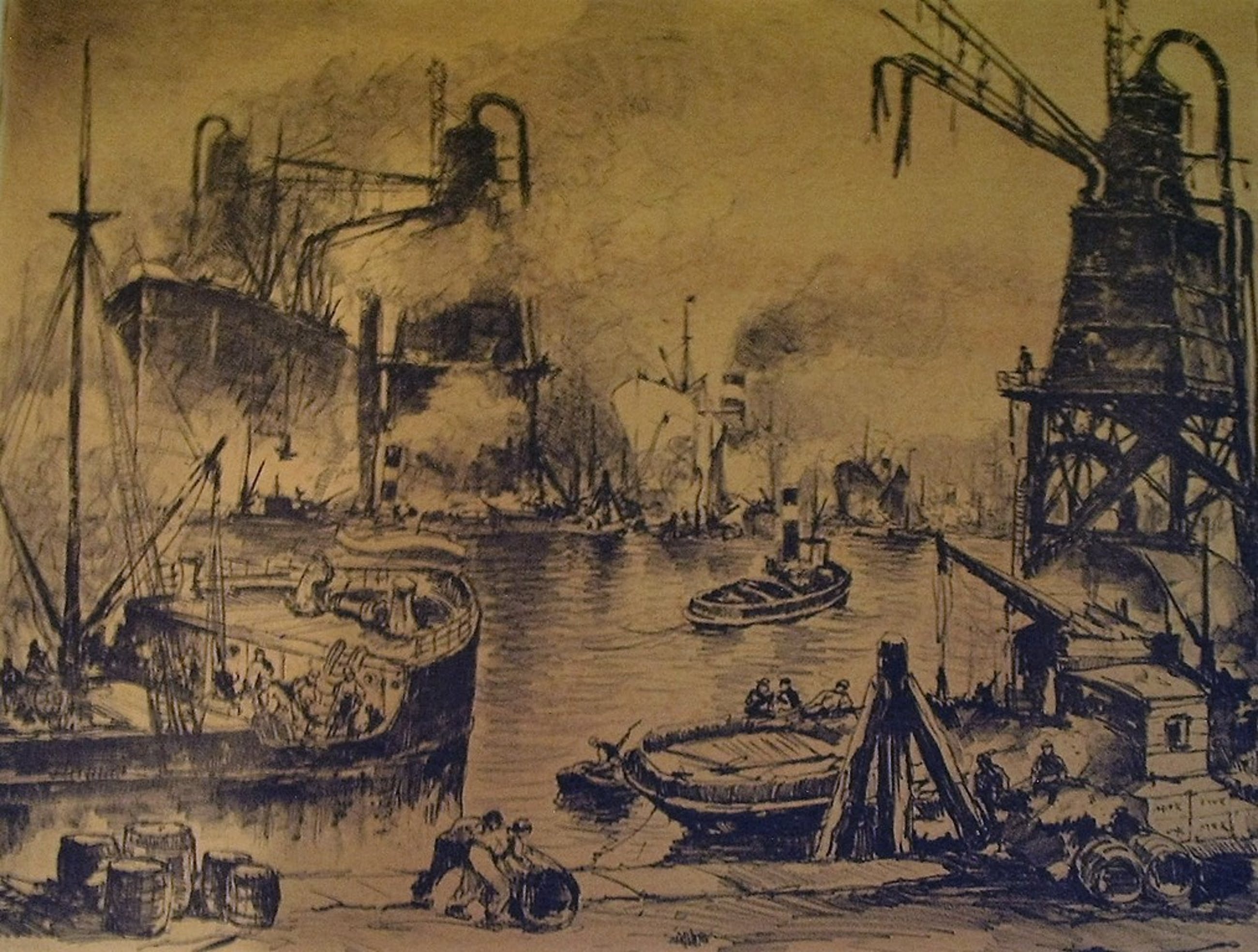 Voor nadere informatie over deze Rotterdamse kunstenaar ( 1881 - 1943 ) zie Scheen. ( Havens en Zeegezichten )